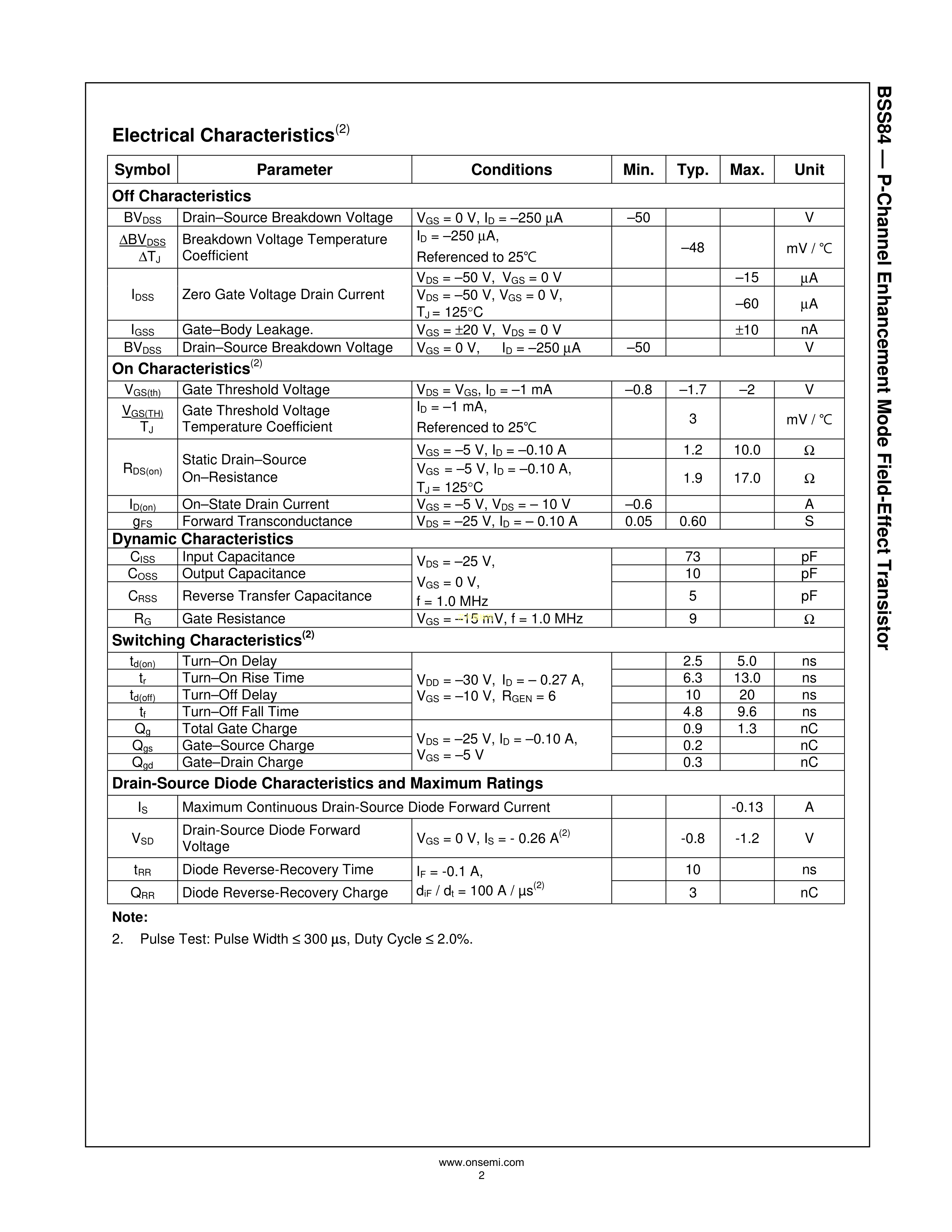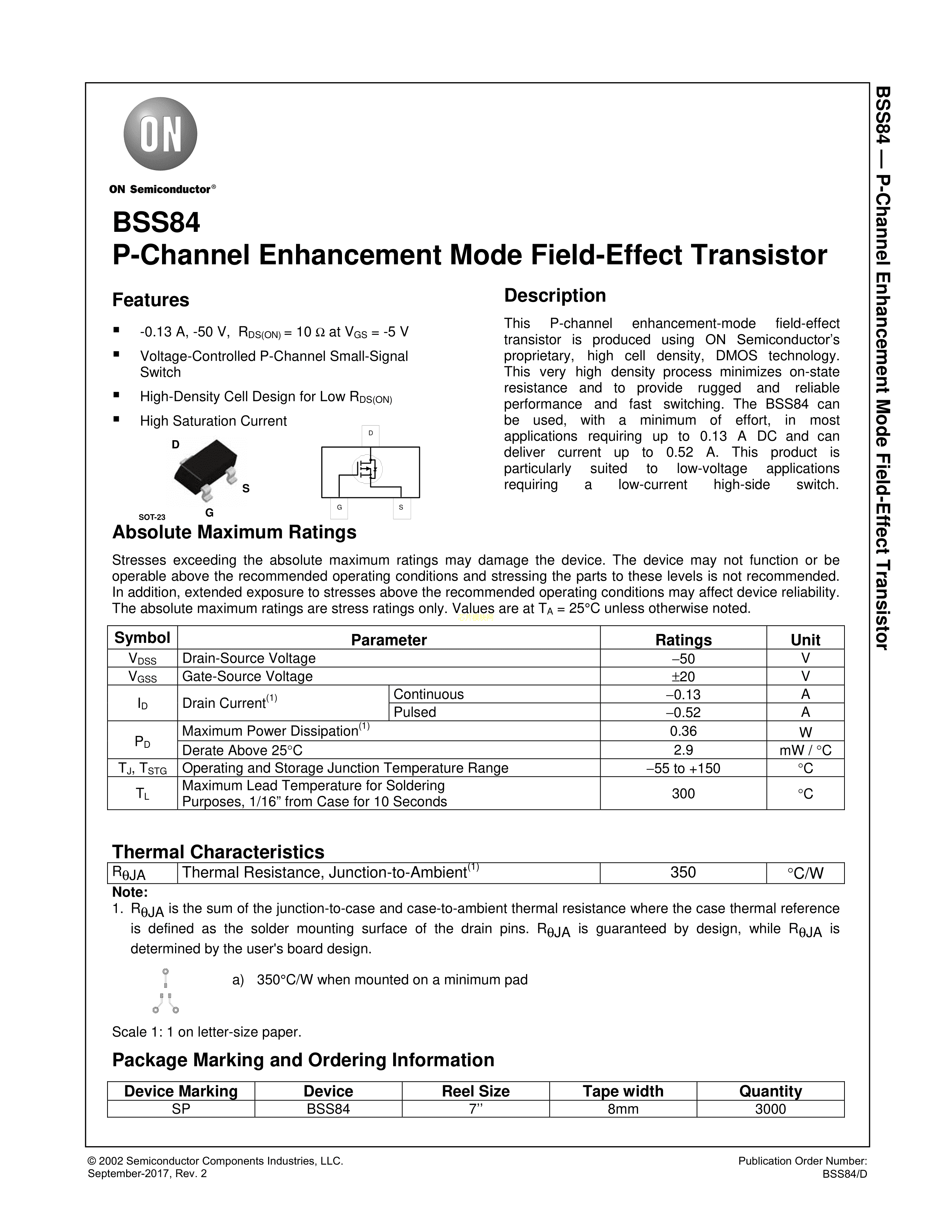 BSS84数据手册SOT-23-3封装onsemi(安森美)PDF规格书,中英文下载