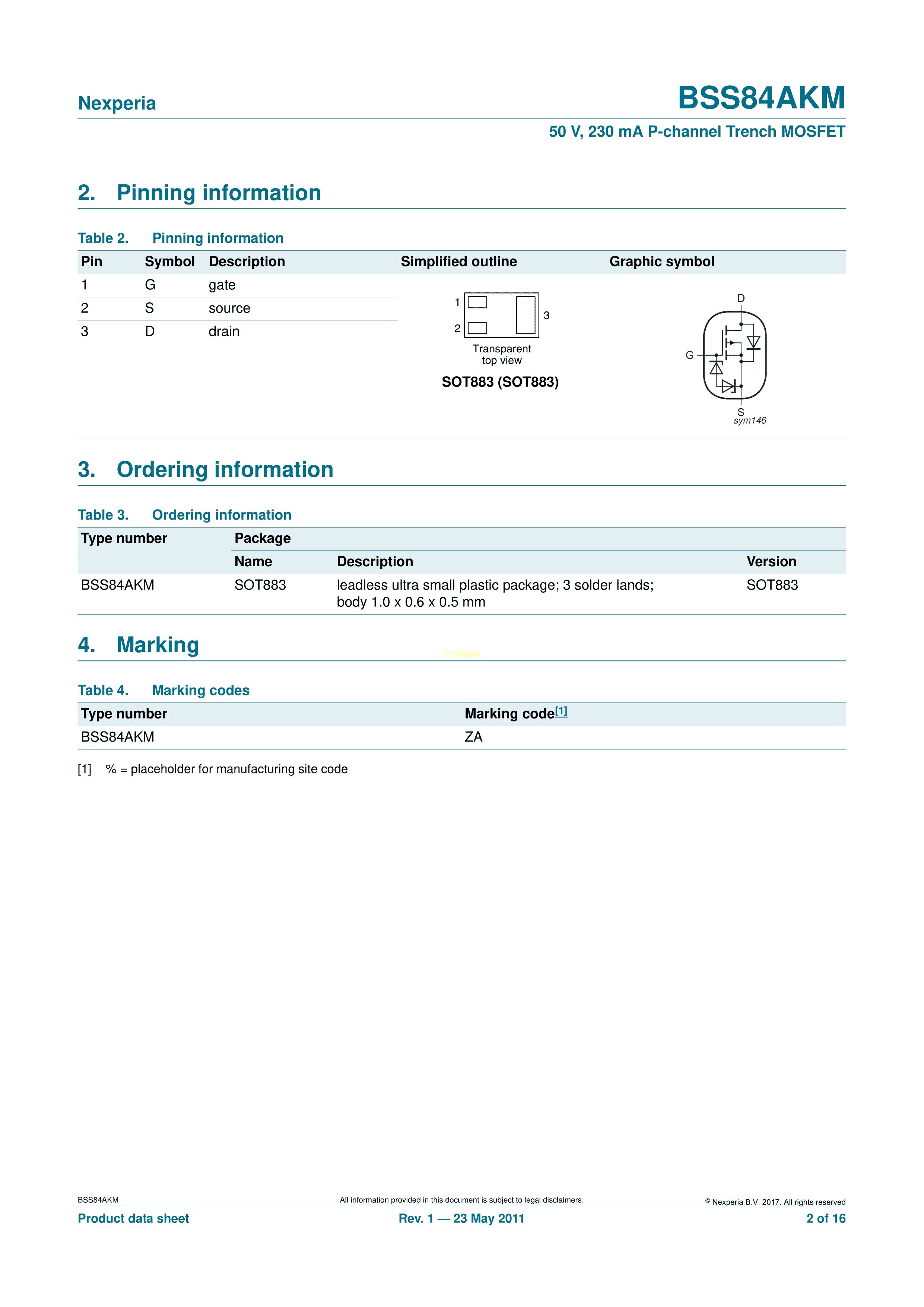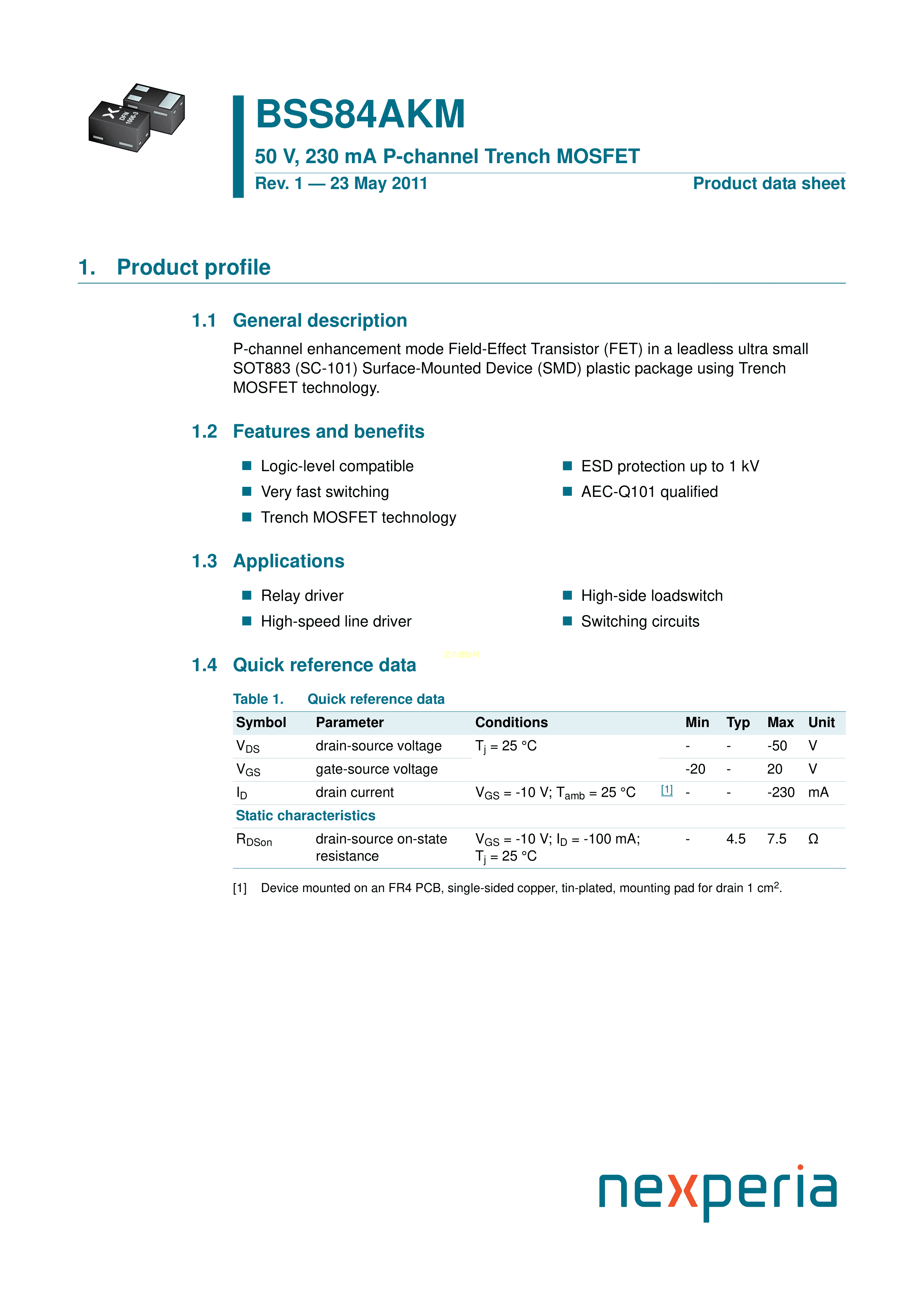 BSS84AKM315数据手册DFN1006-3封装Nexperia(安世)PDF规格书,中英文下载
