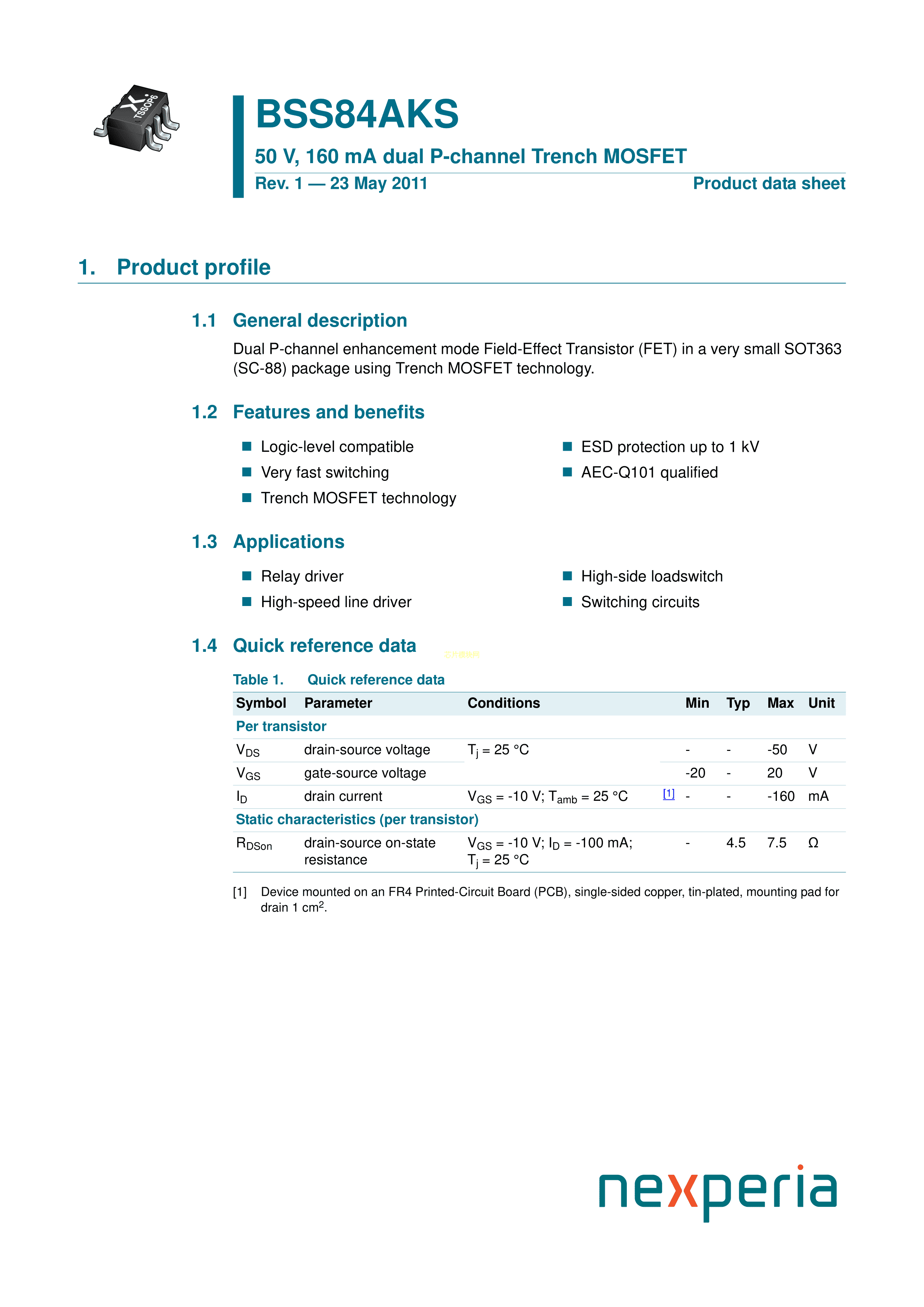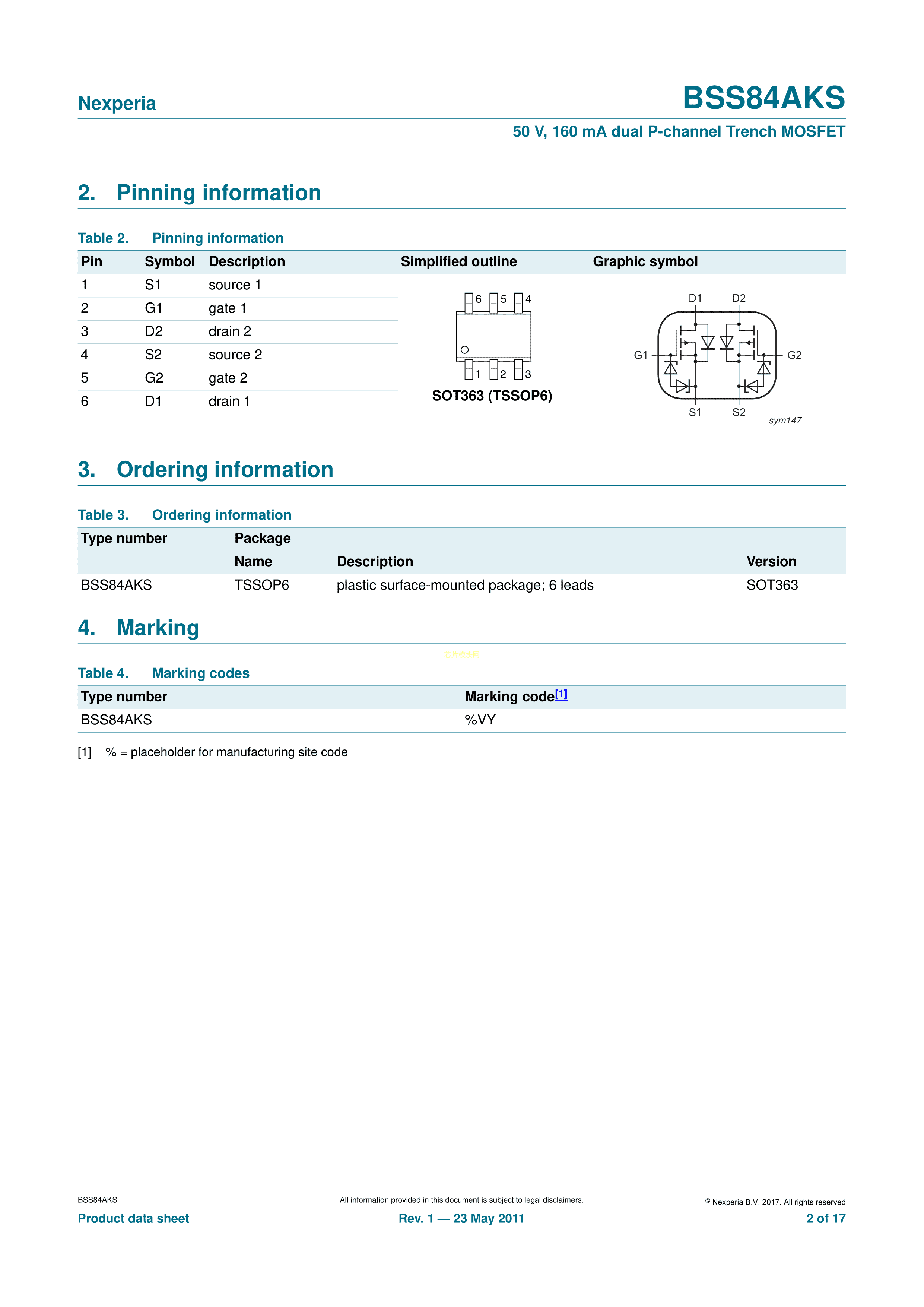 BSS84AKS115数据手册SC-70-6(SOT-363)封装Nexperia(安世)PDF规格