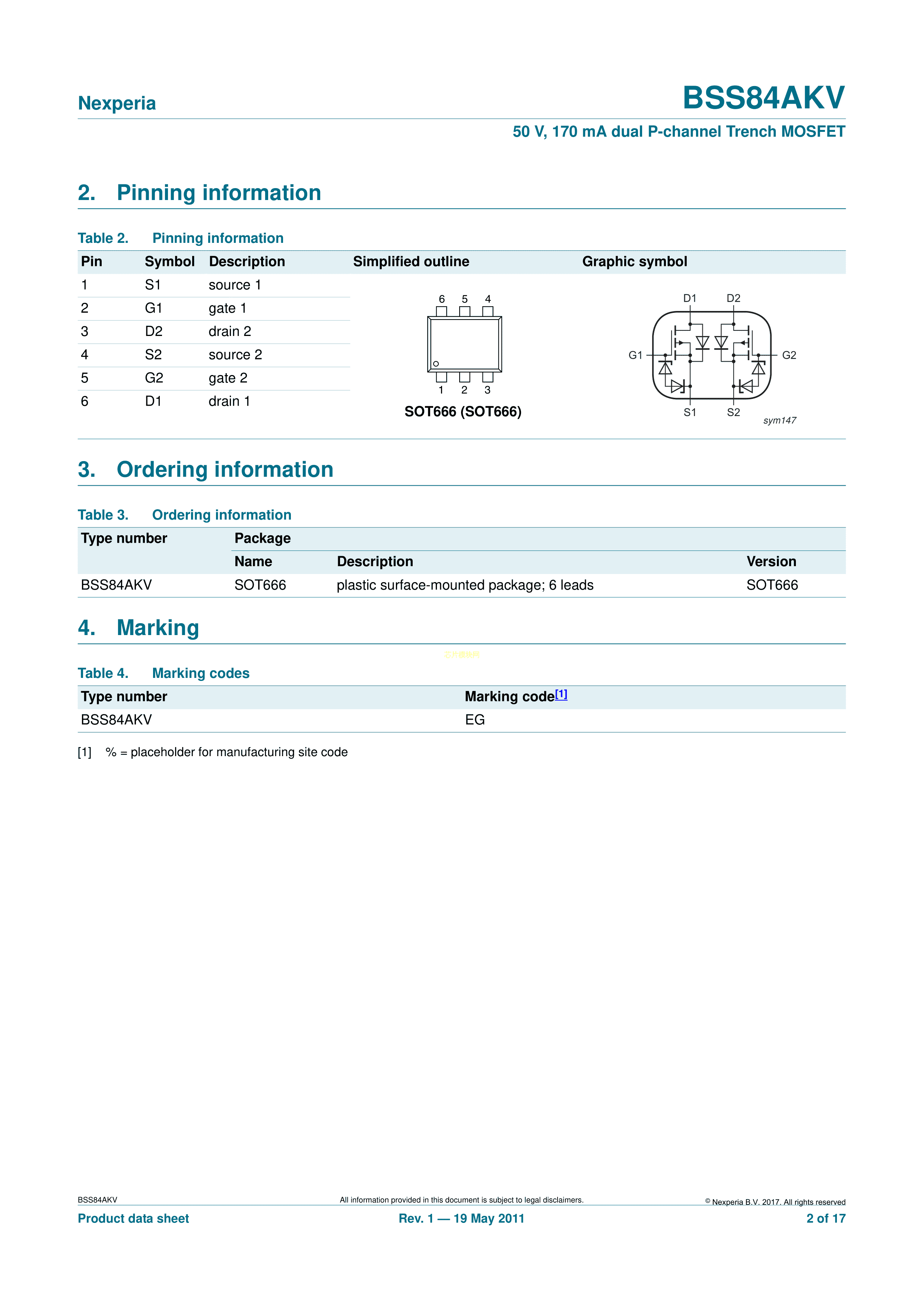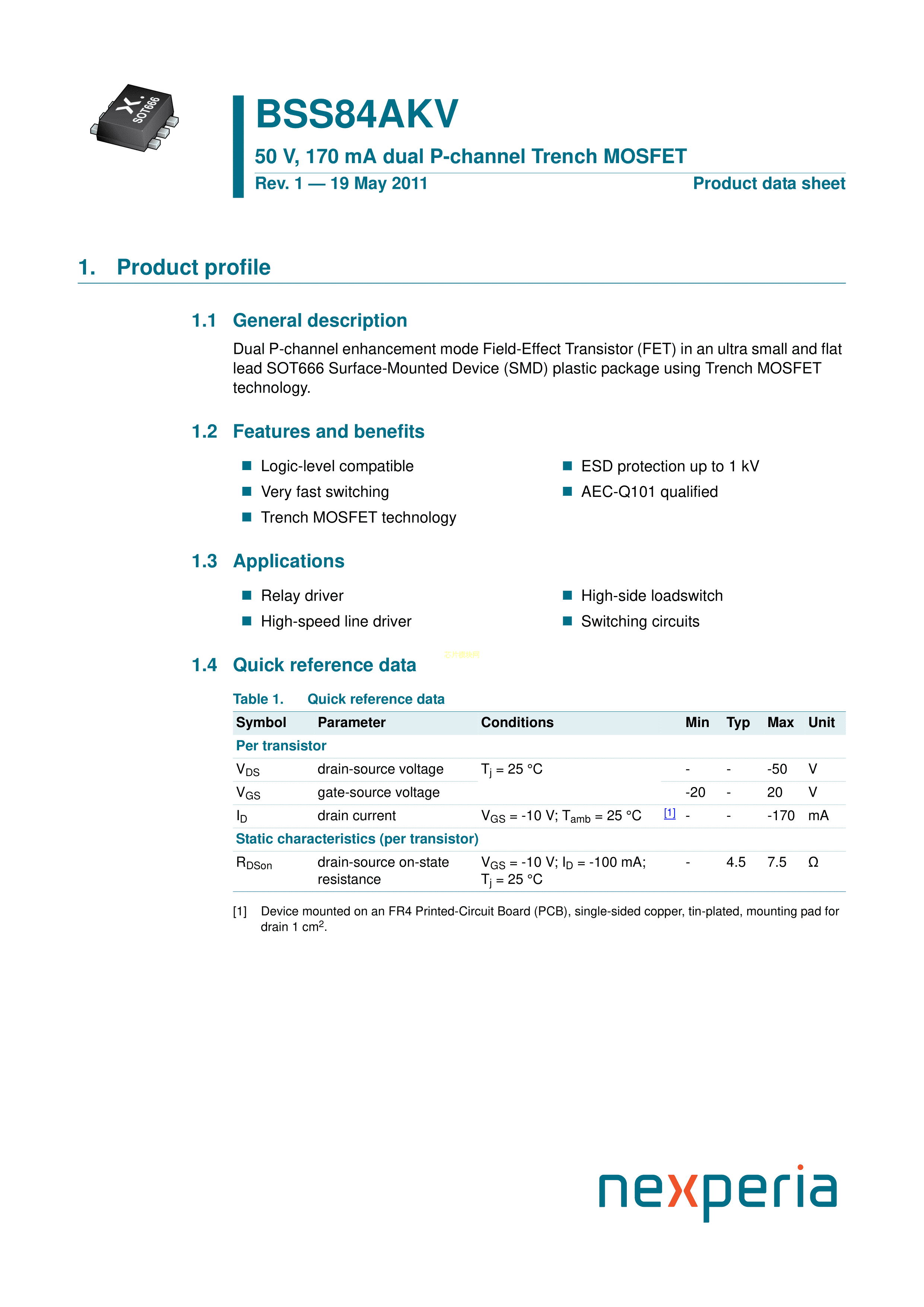 BSS84AKV115数据手册SOT-666封装Nexperia(安世)PDF规格书,中英文下载