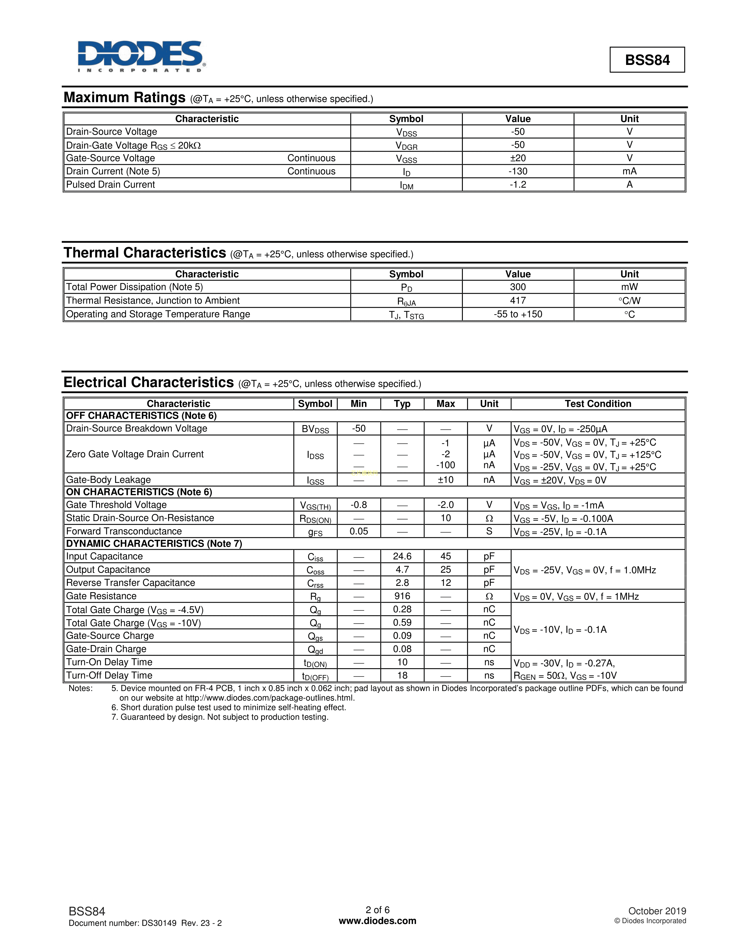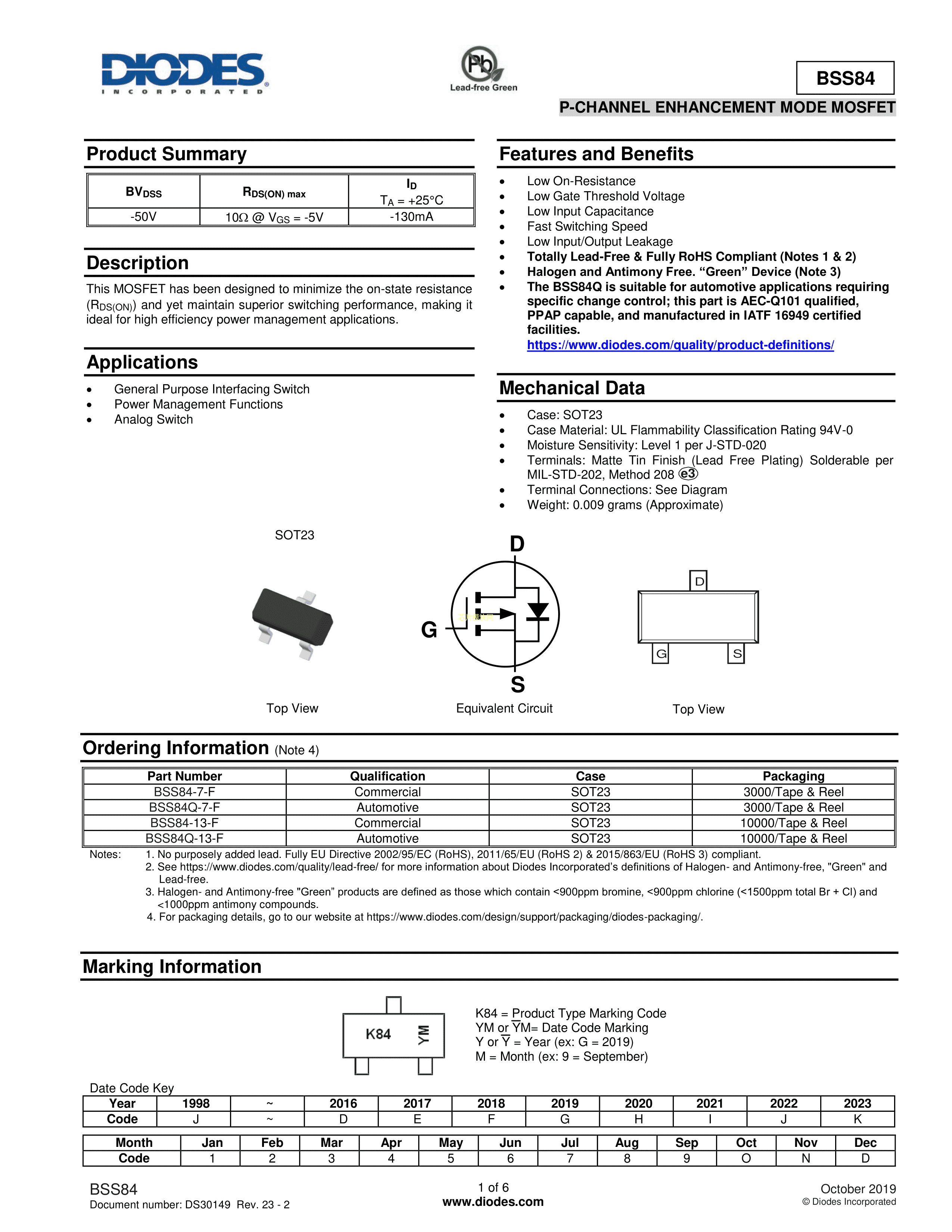 BSS84Q-7-F数据手册SOT-23封装DIODES(美台)PDF规格书,中英文下载