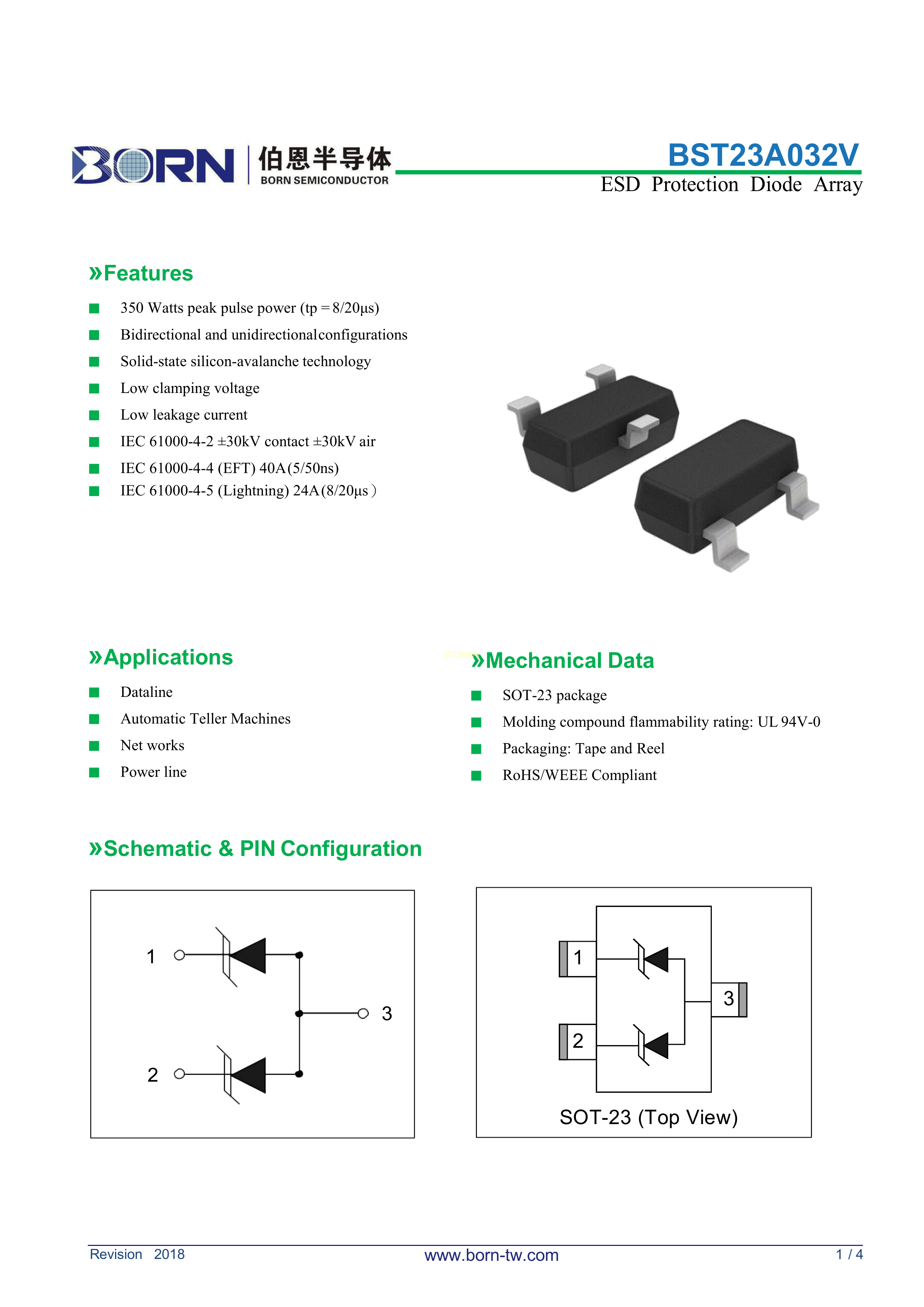 BST23A032V数据手册SOT-23封装BORN(伯恩半导体)PDF规格书,中英文下载