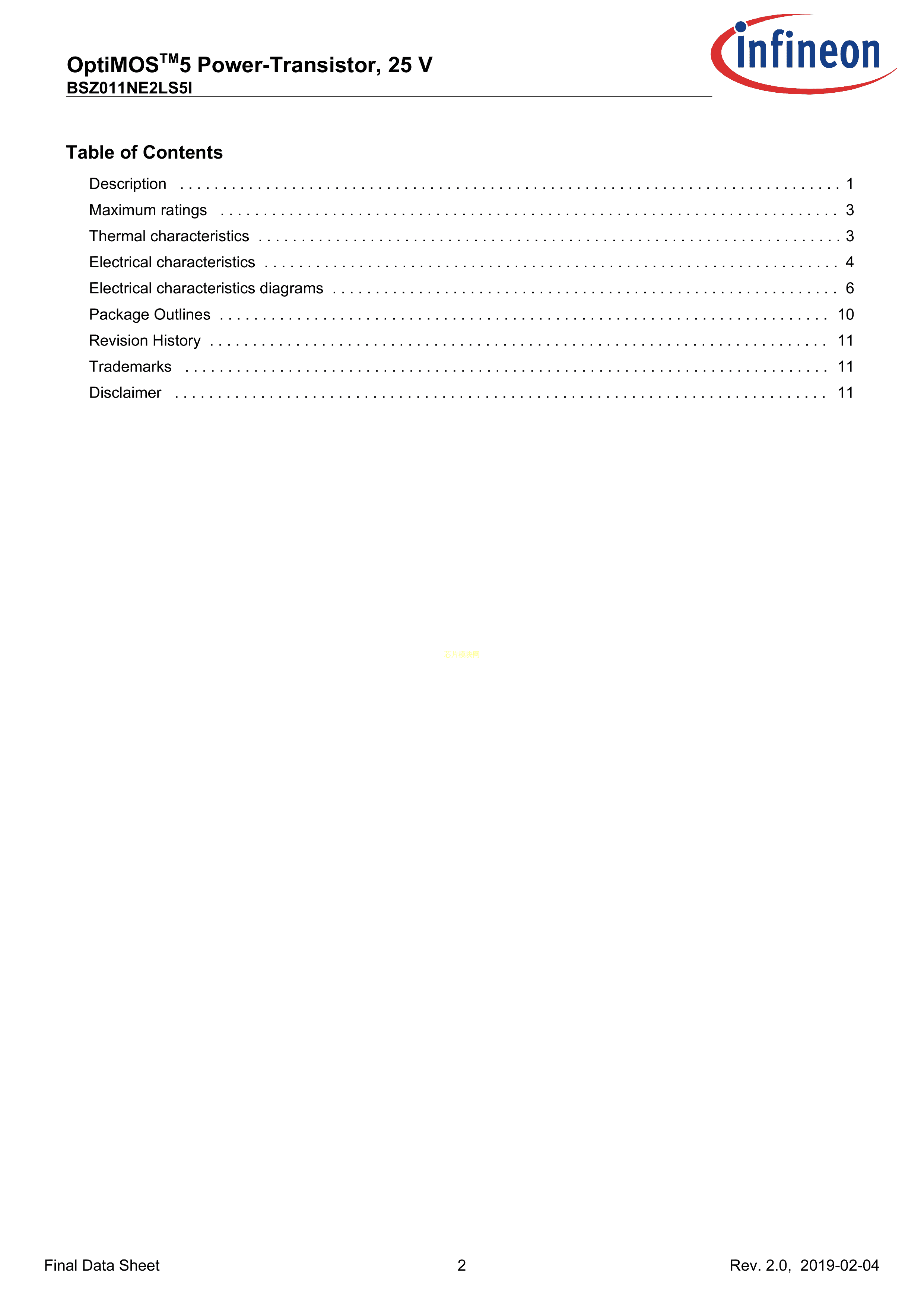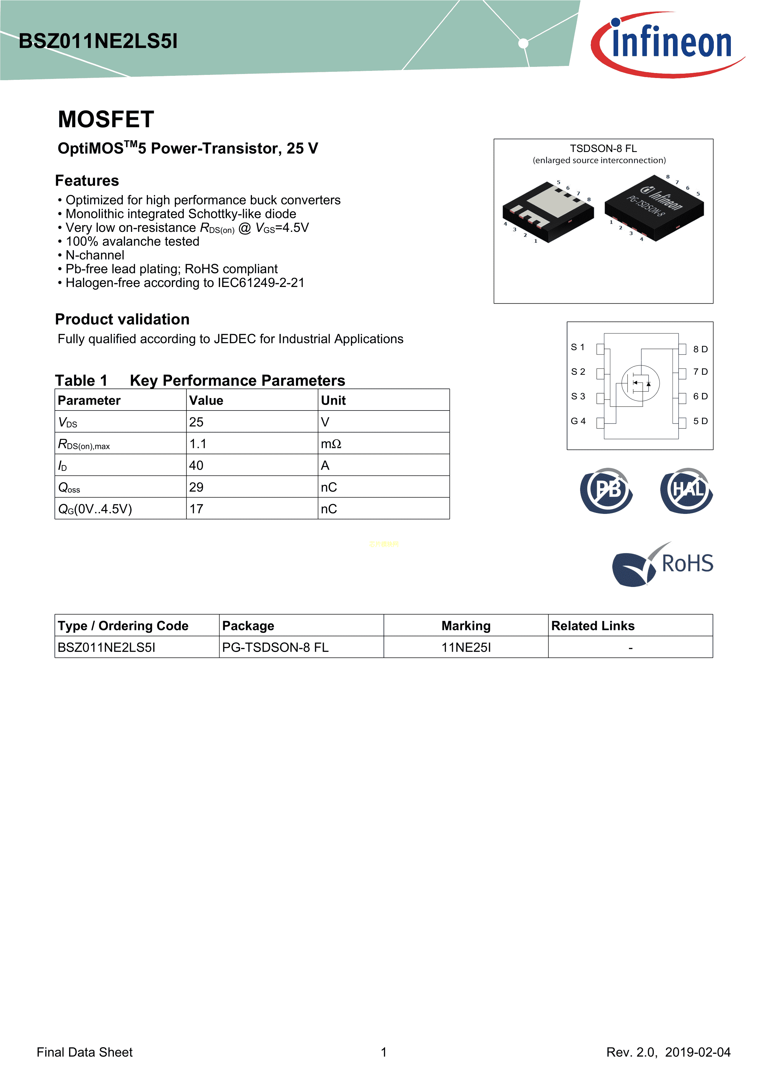BSZ011NE2LS5I数据手册PG-TSDSON-8封装Infineon(英飞凌)PDF规格书,