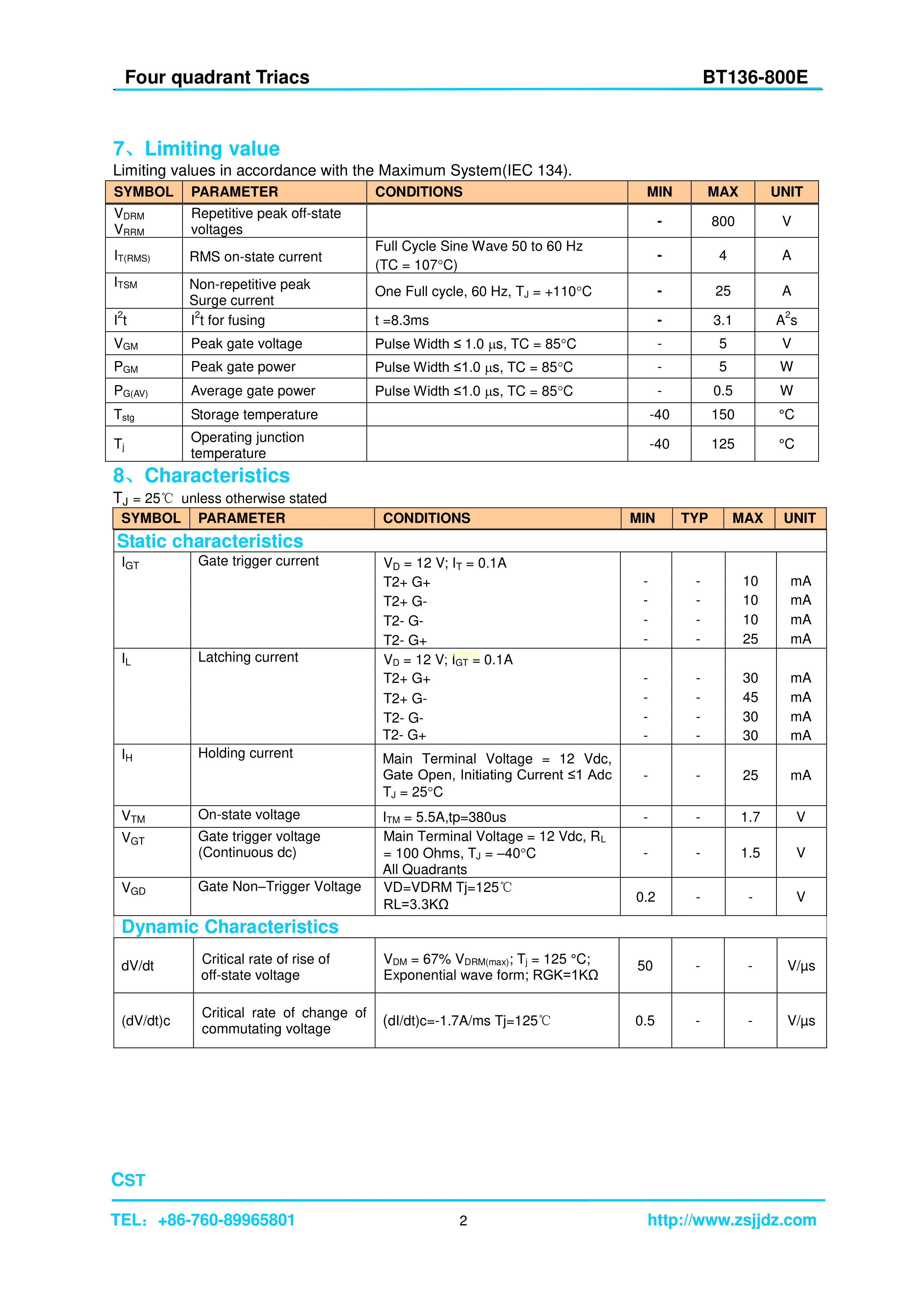 BT136-800E数据手册TO-252封装集晶电子PDF规格书,中英文下载