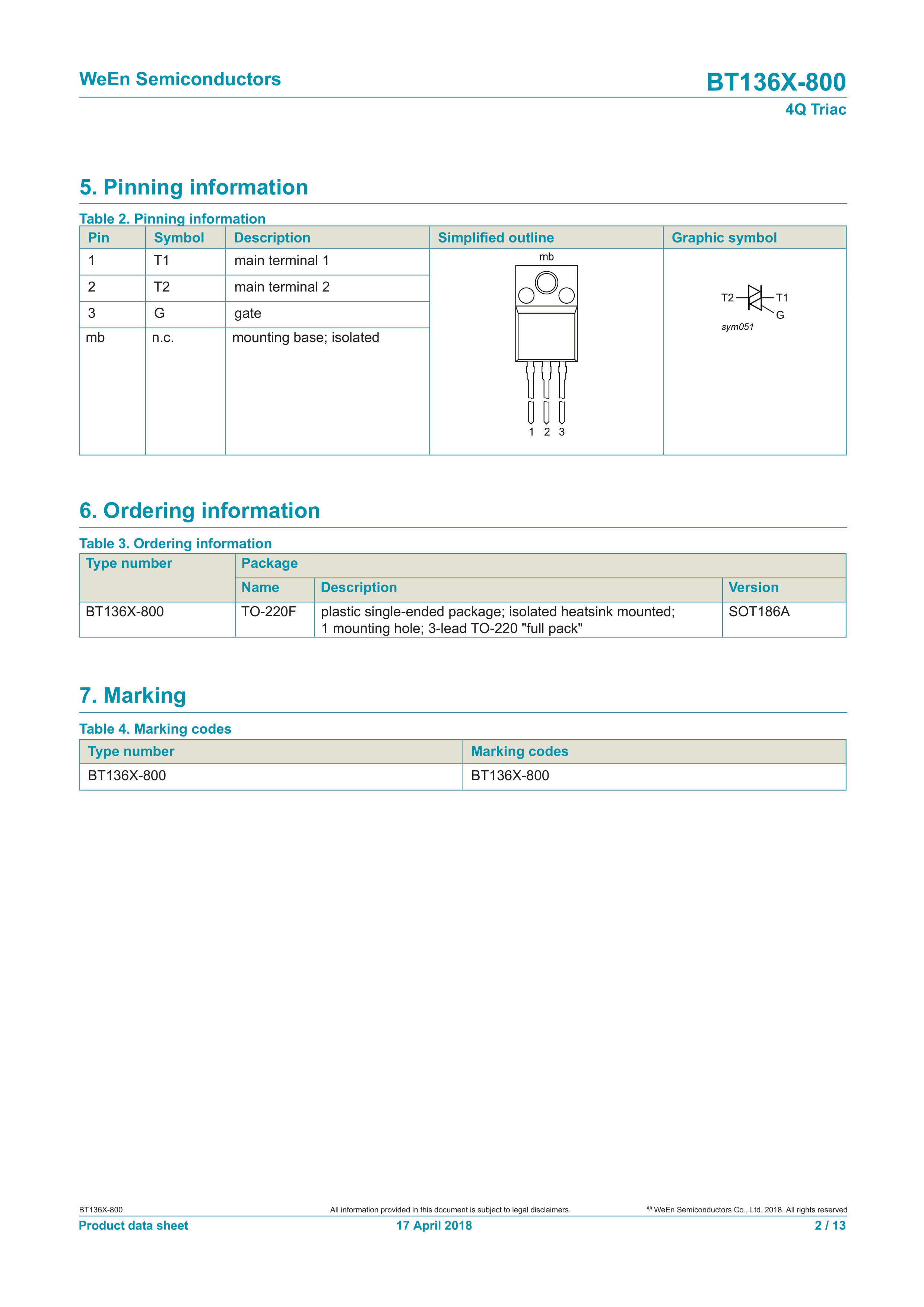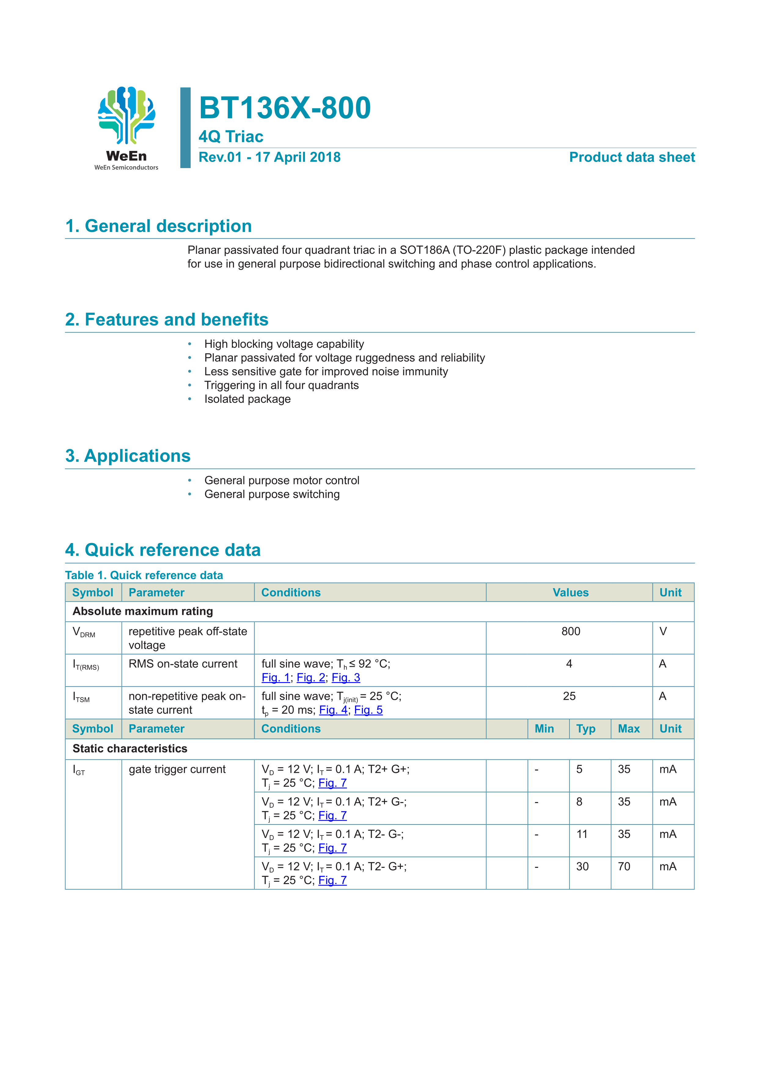 BT136X-800127数据手册SOT-186A封装WeEn(瑞能)PDF规格书,中英文下载