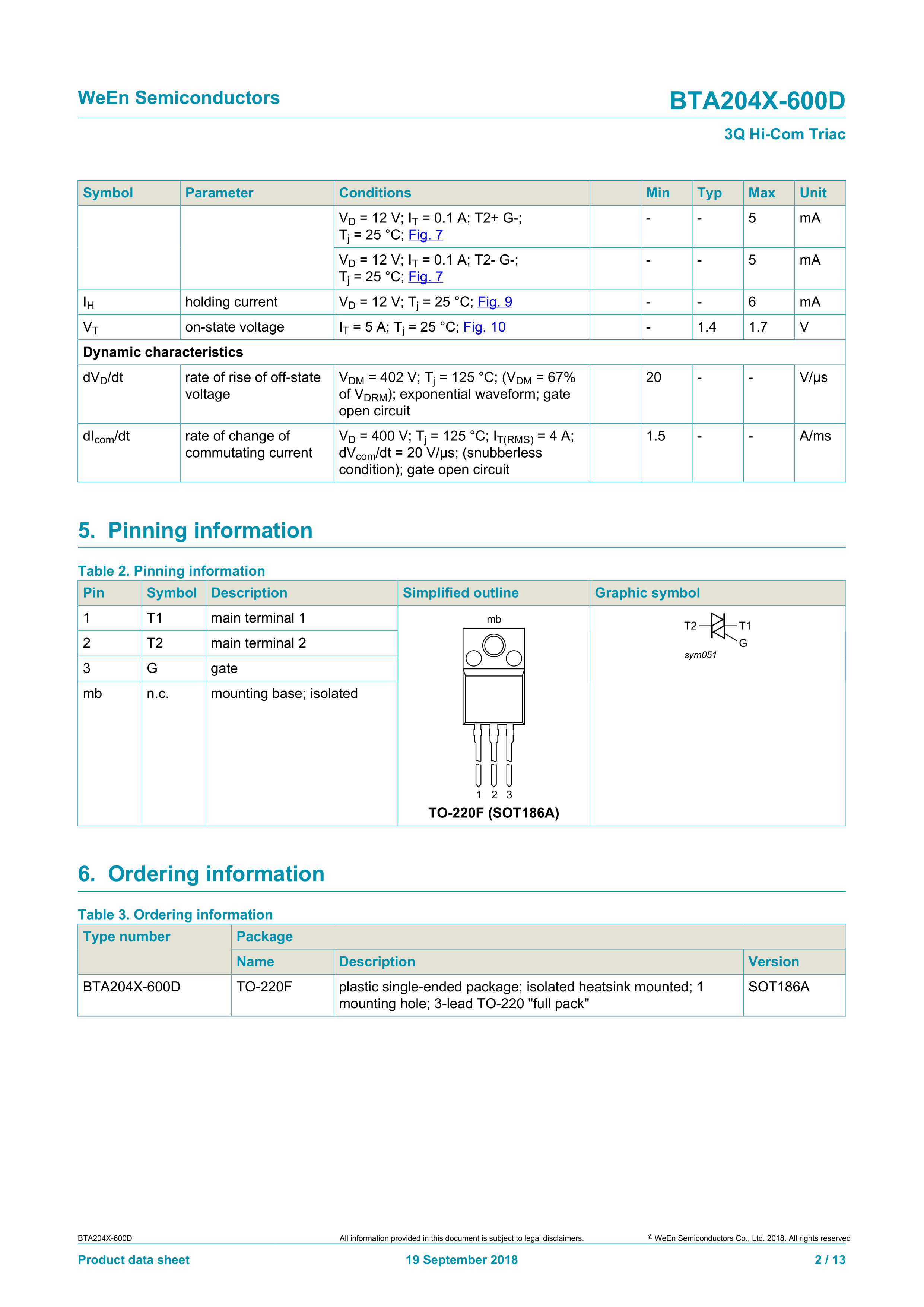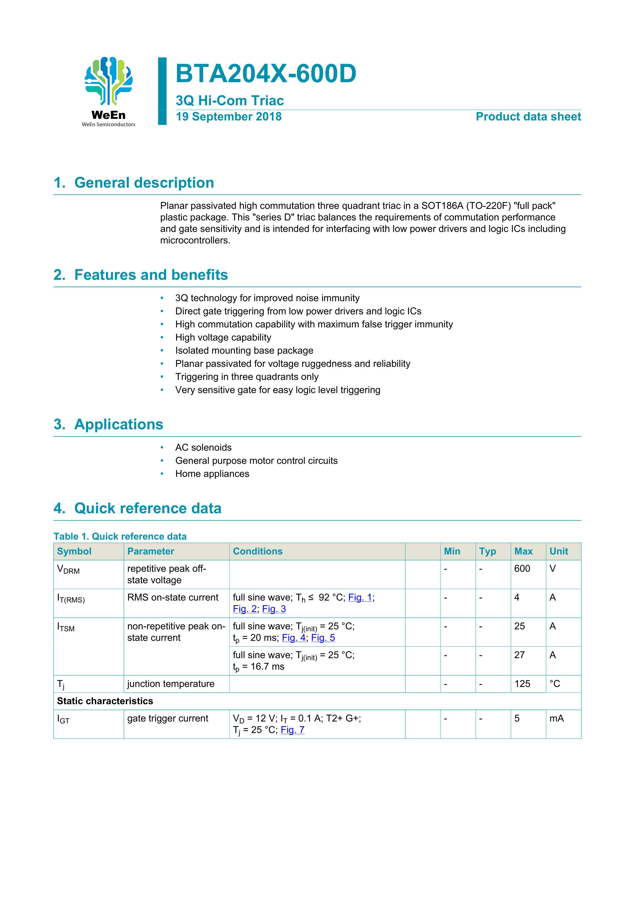 BTA204X-600D127数据手册SOT-186A封装WeEn(瑞能)PDF规格书,中英文下载