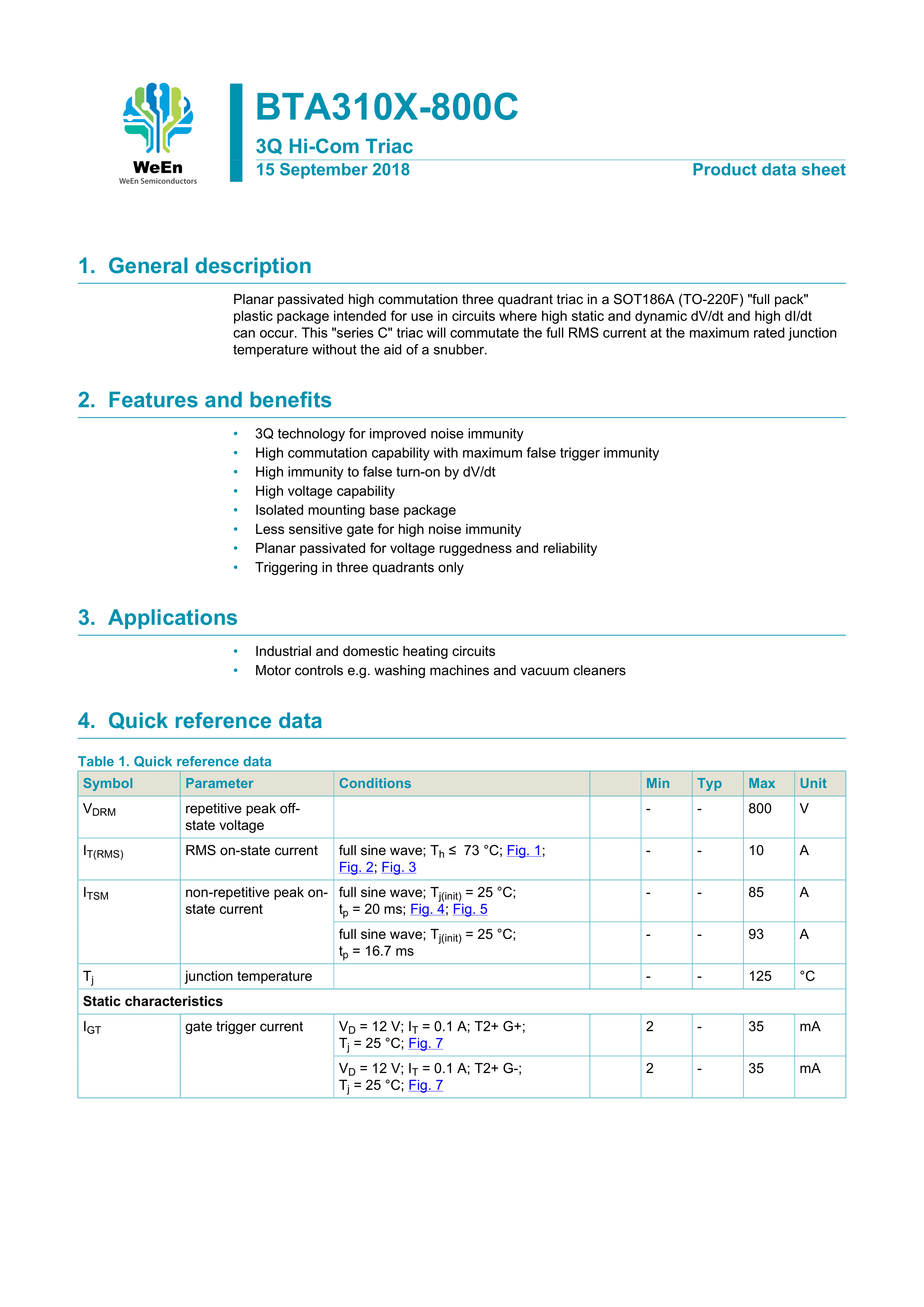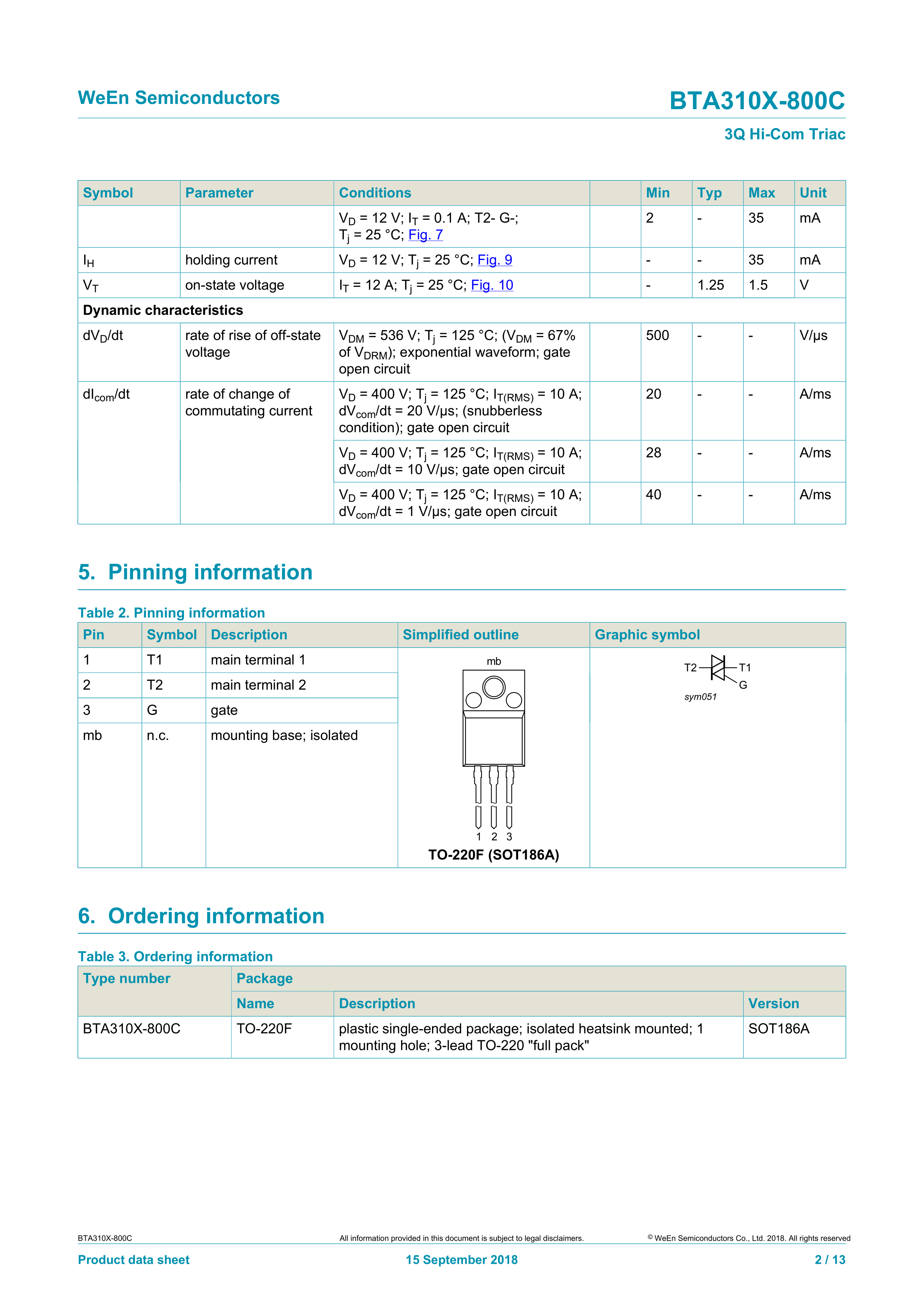 BTA310X-800C127数据手册SOT-186A封装WeEn(瑞能)PDF规格书,中英文下载