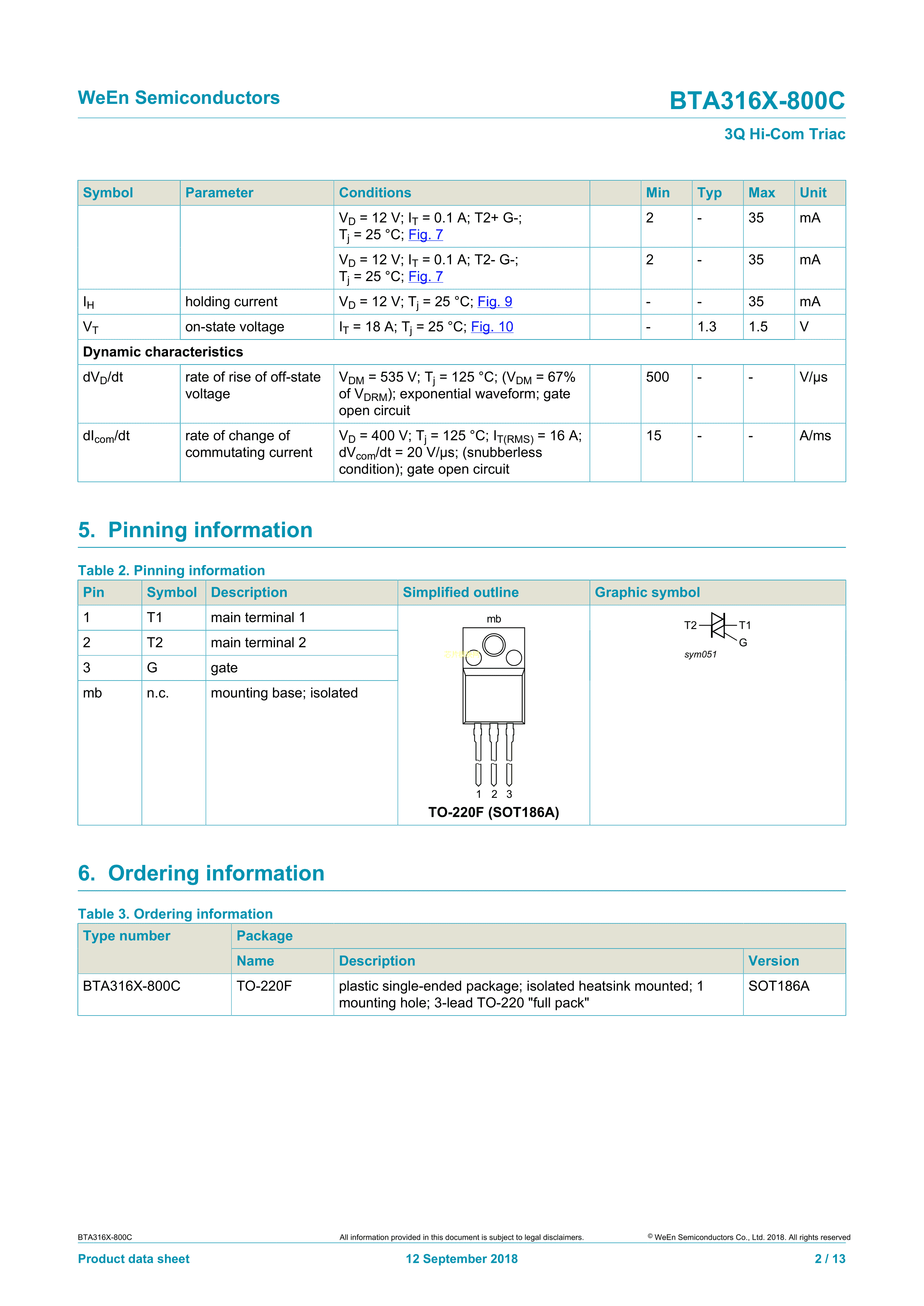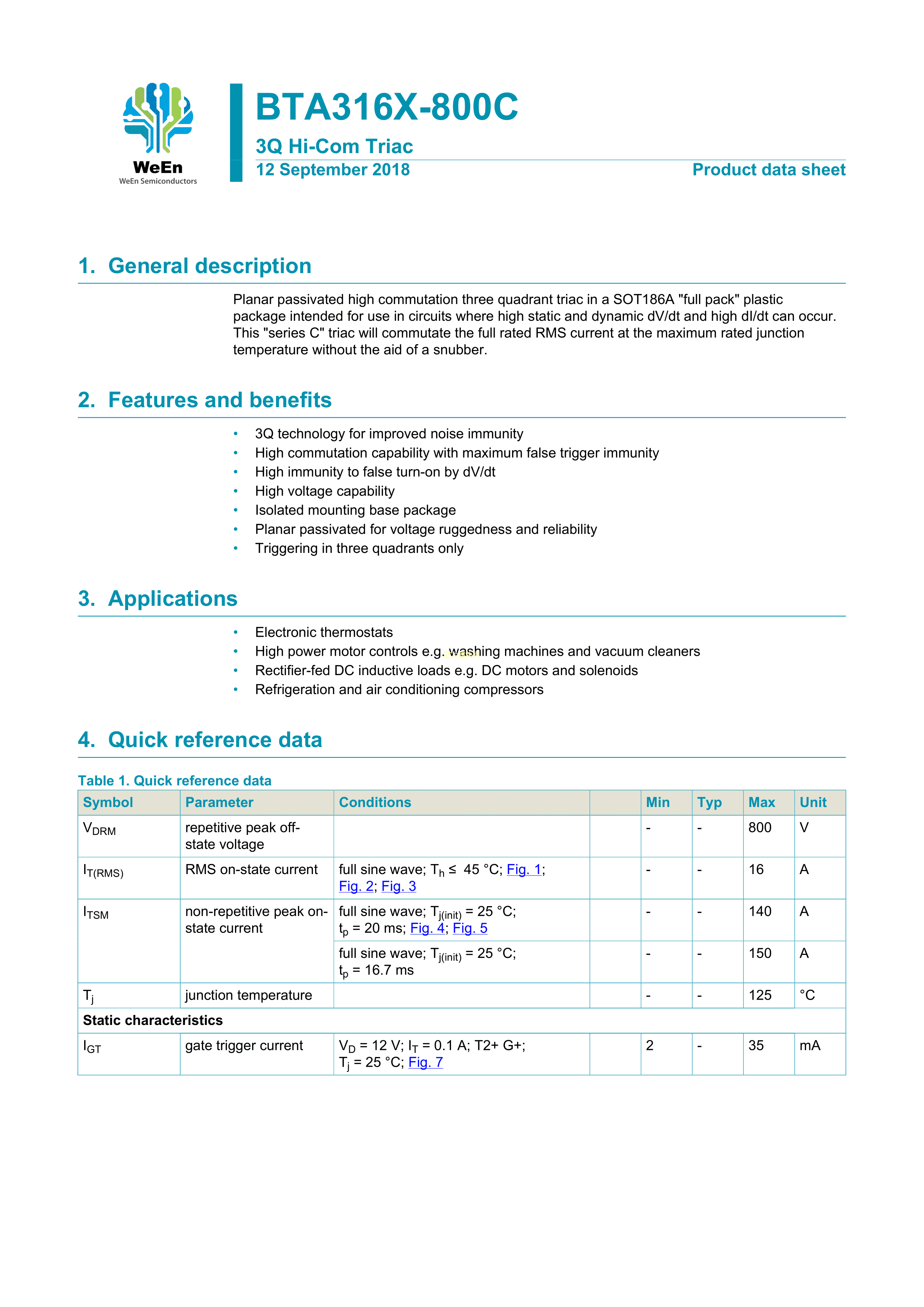 BTA316X-800C-L01Q数据手册SOT-186A封装WeEn(瑞能)PDF规格书,中英文下