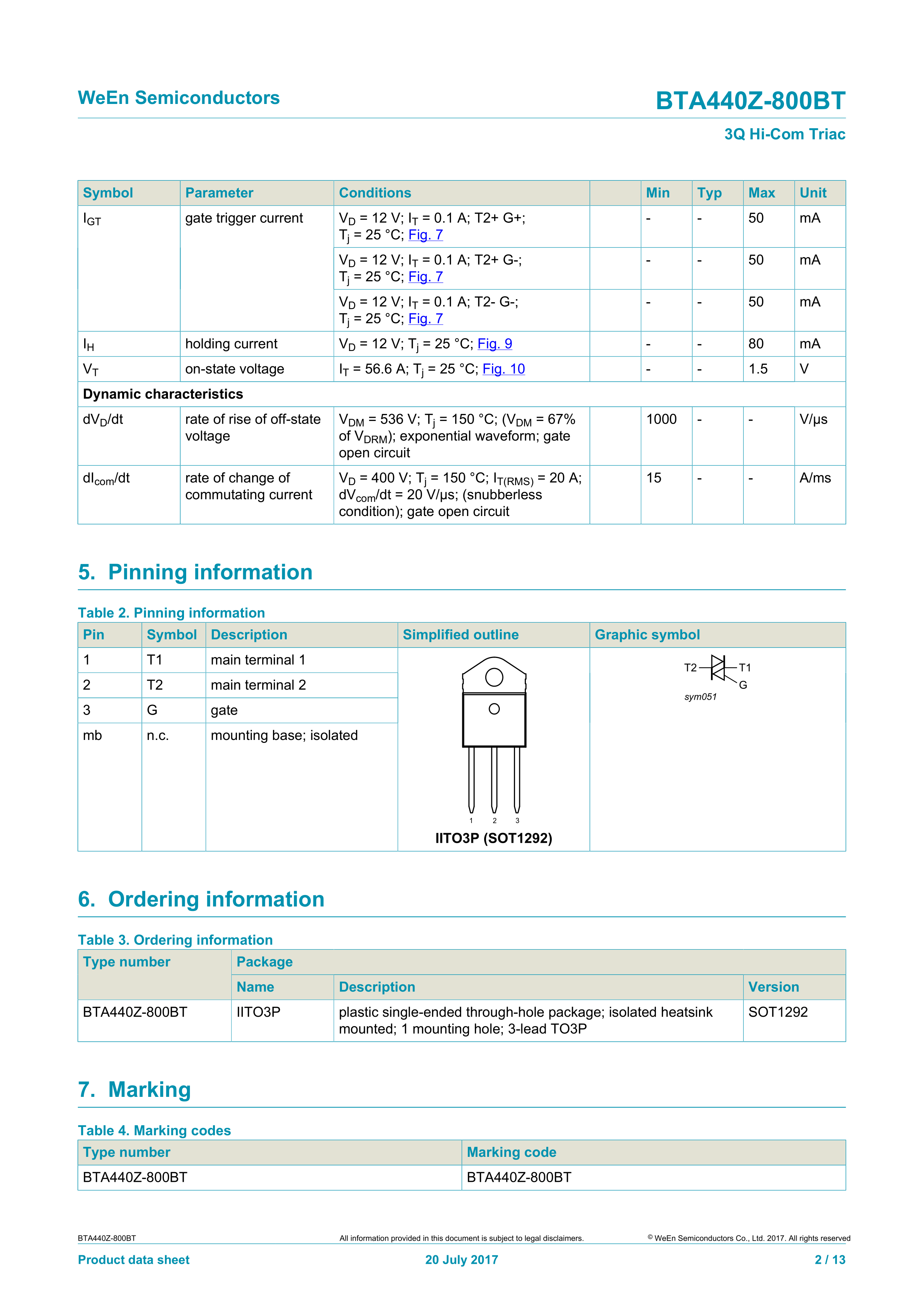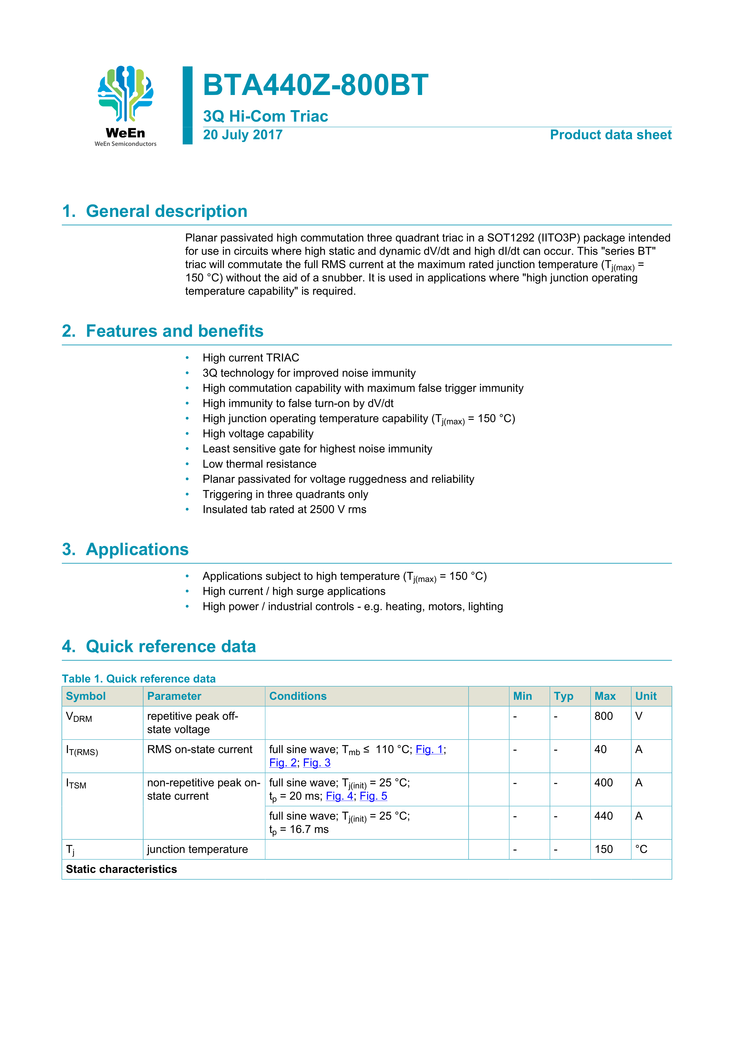 BTA440Z-800BTQ数据手册IITO3P封装WeEn(瑞能)PDF规格书,中英文下载