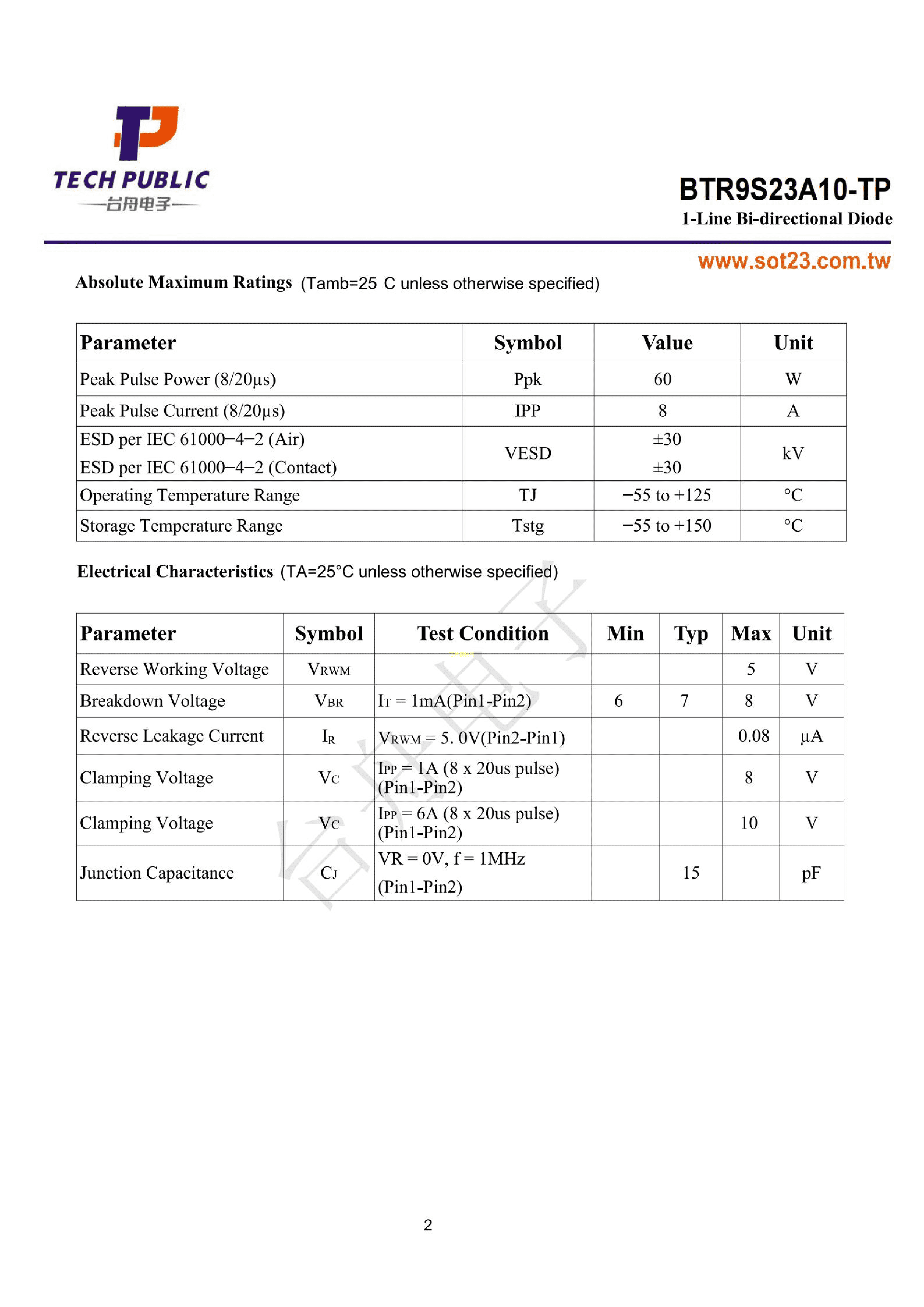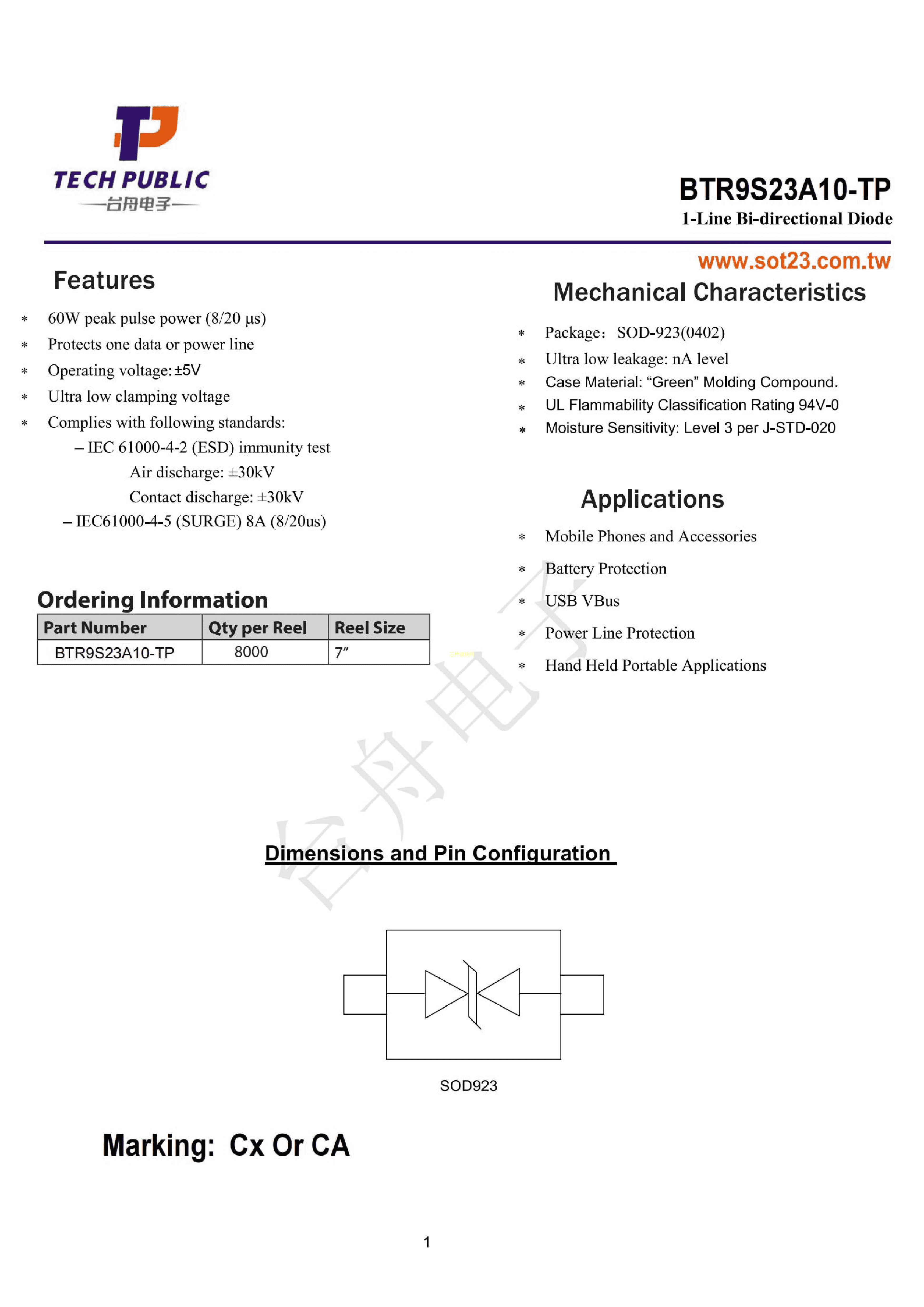 BTR9S23A10-TP数据手册SOD-923封装TECHPUBLIC(台舟)PDF规格书,中英文下载