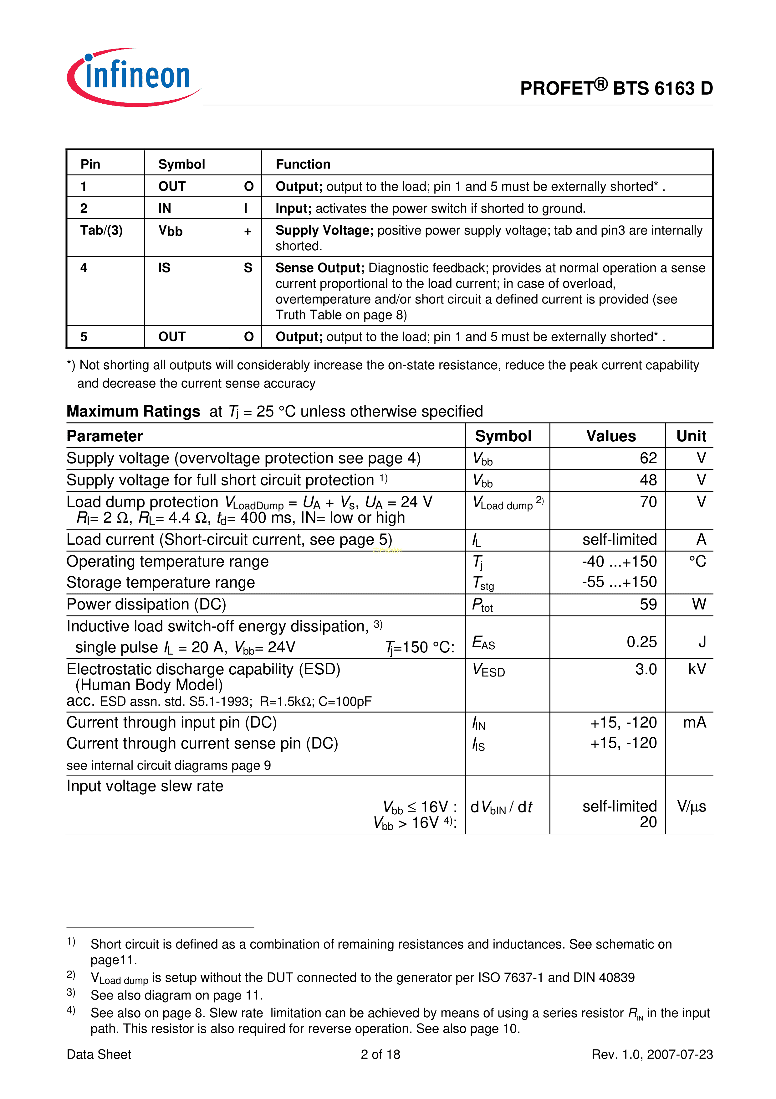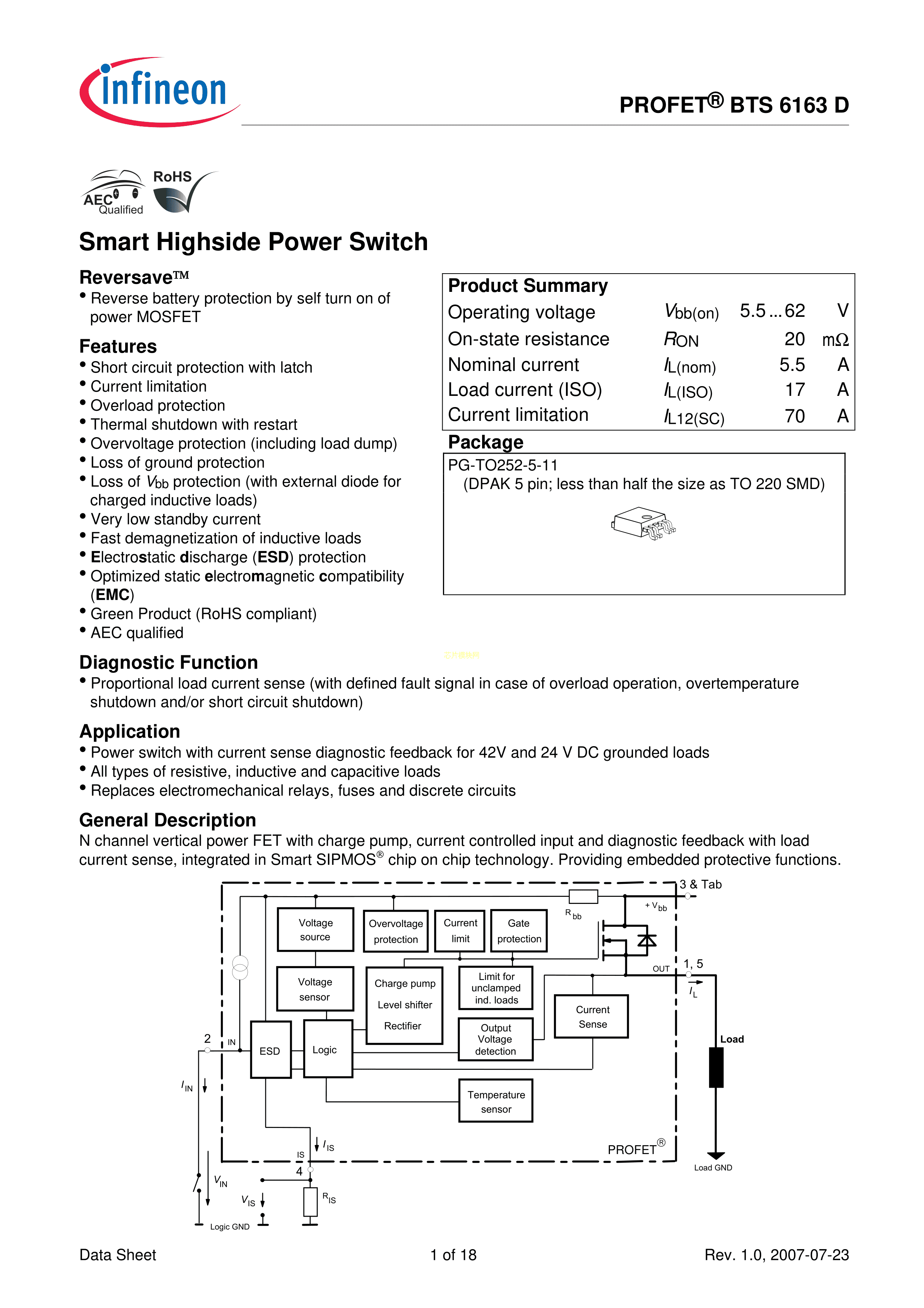 BTS6163D数据手册PG-TO252-5封装Infineon(英飞凌)PDF规格书,中英文下载