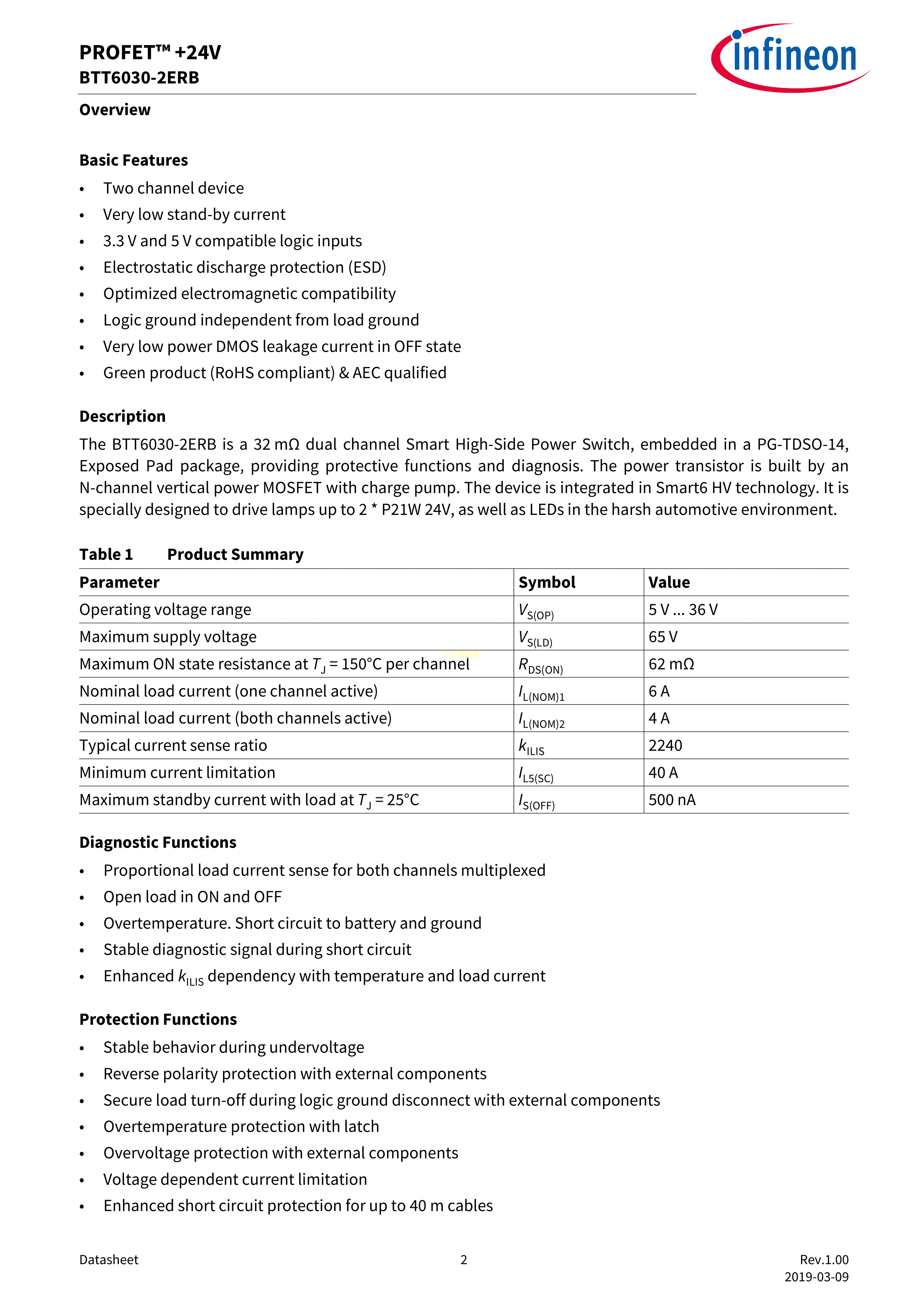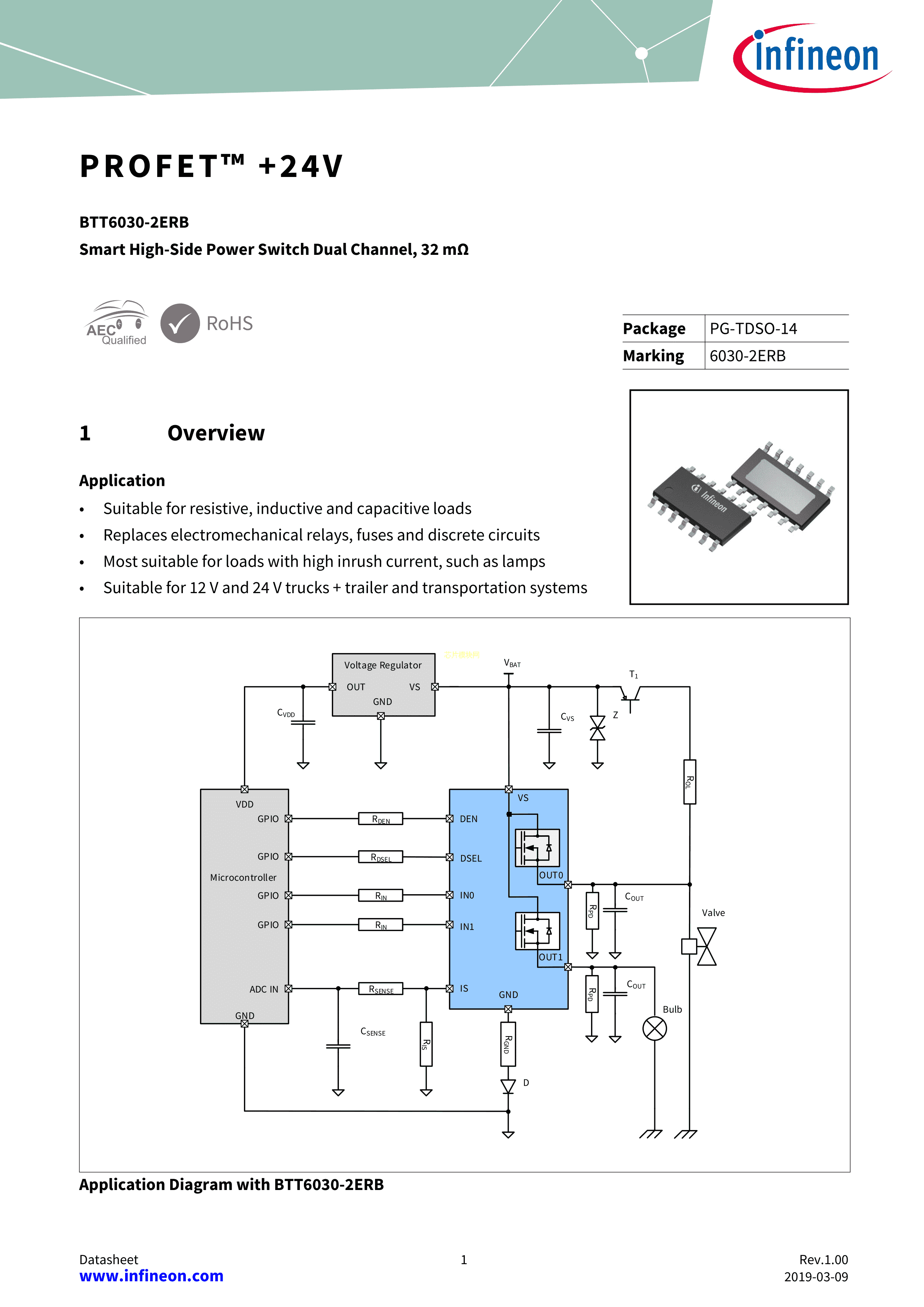 BTT6030-2ERB数据手册PG-TDSO-14封装Infineon(英飞凌)PDF规格书,中英
