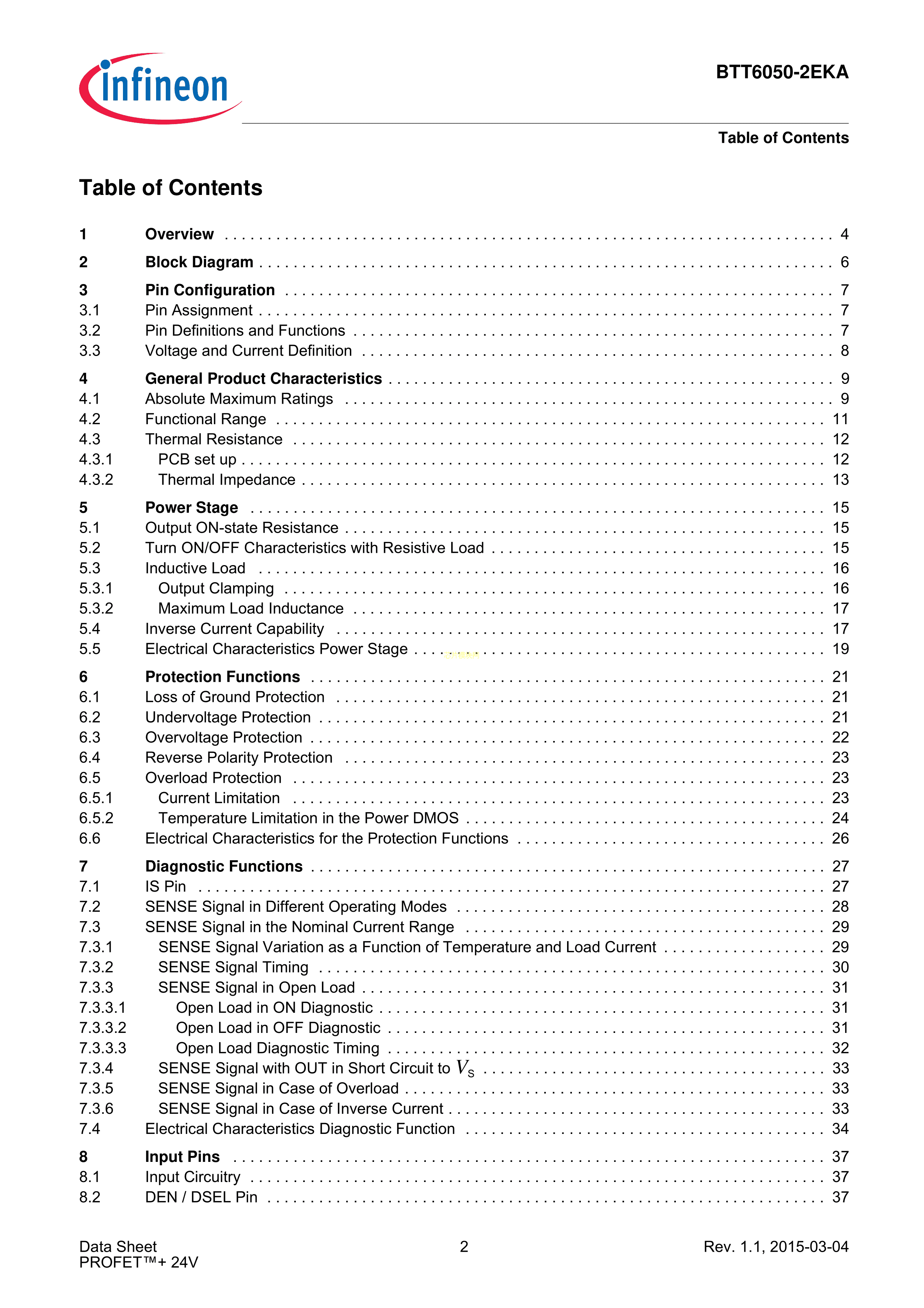 BTT6050-2EKA数据手册PG-DSO-14EP封装Infineon(英飞凌)PDF规格书,中