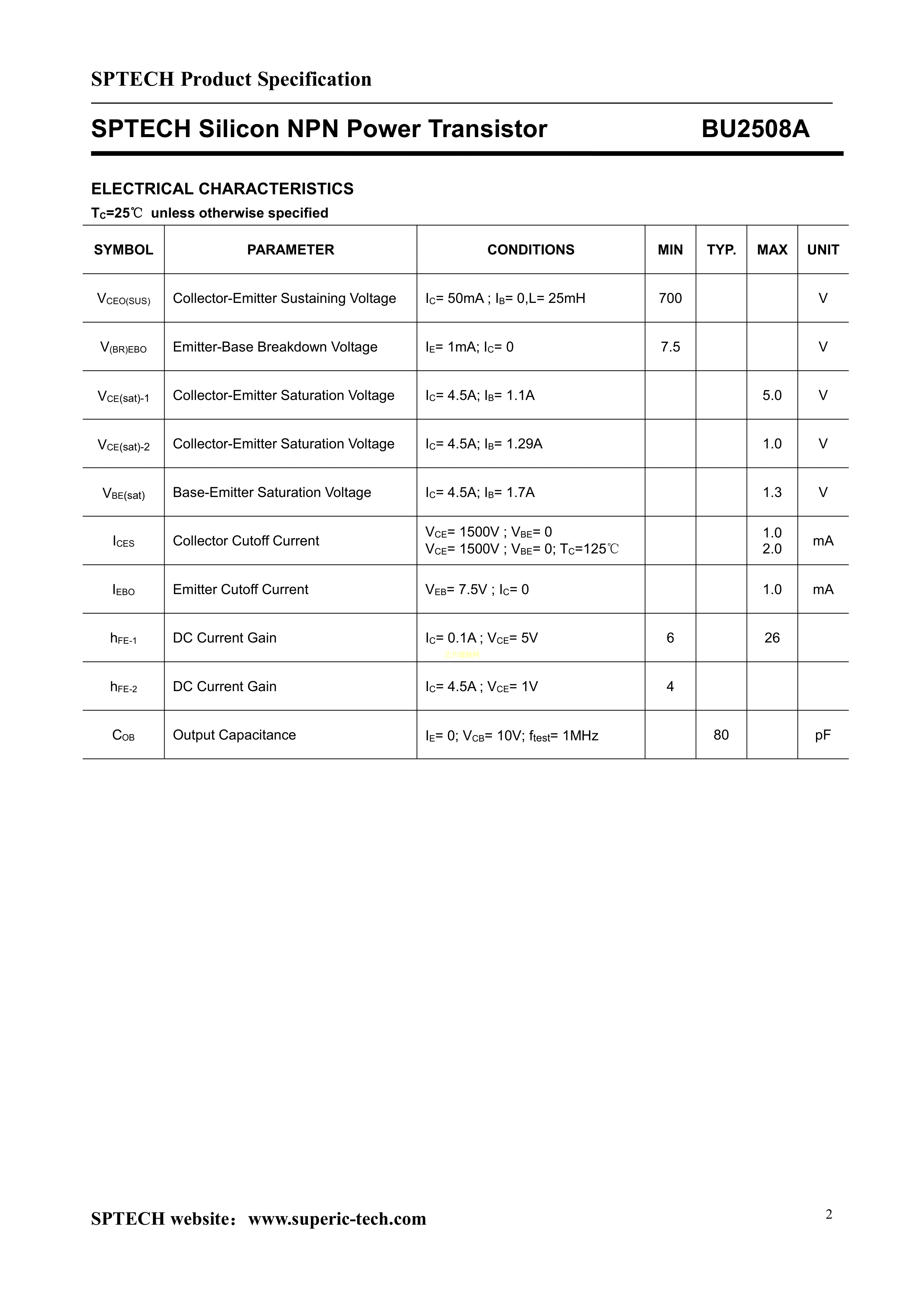 BU2508A数据手册TO-3PN封装SPTECH(深圳质超)PDF规格书,中英文下载