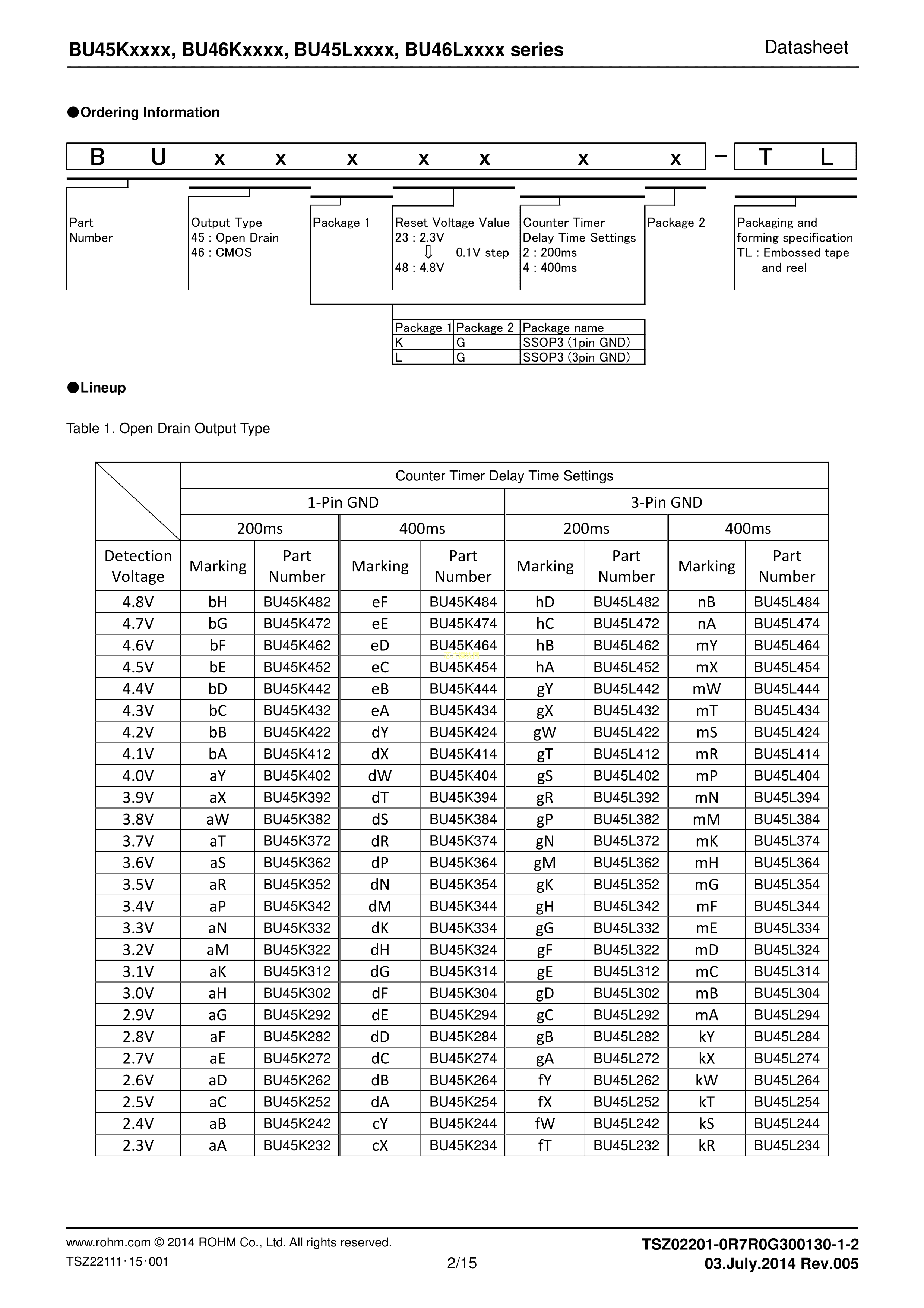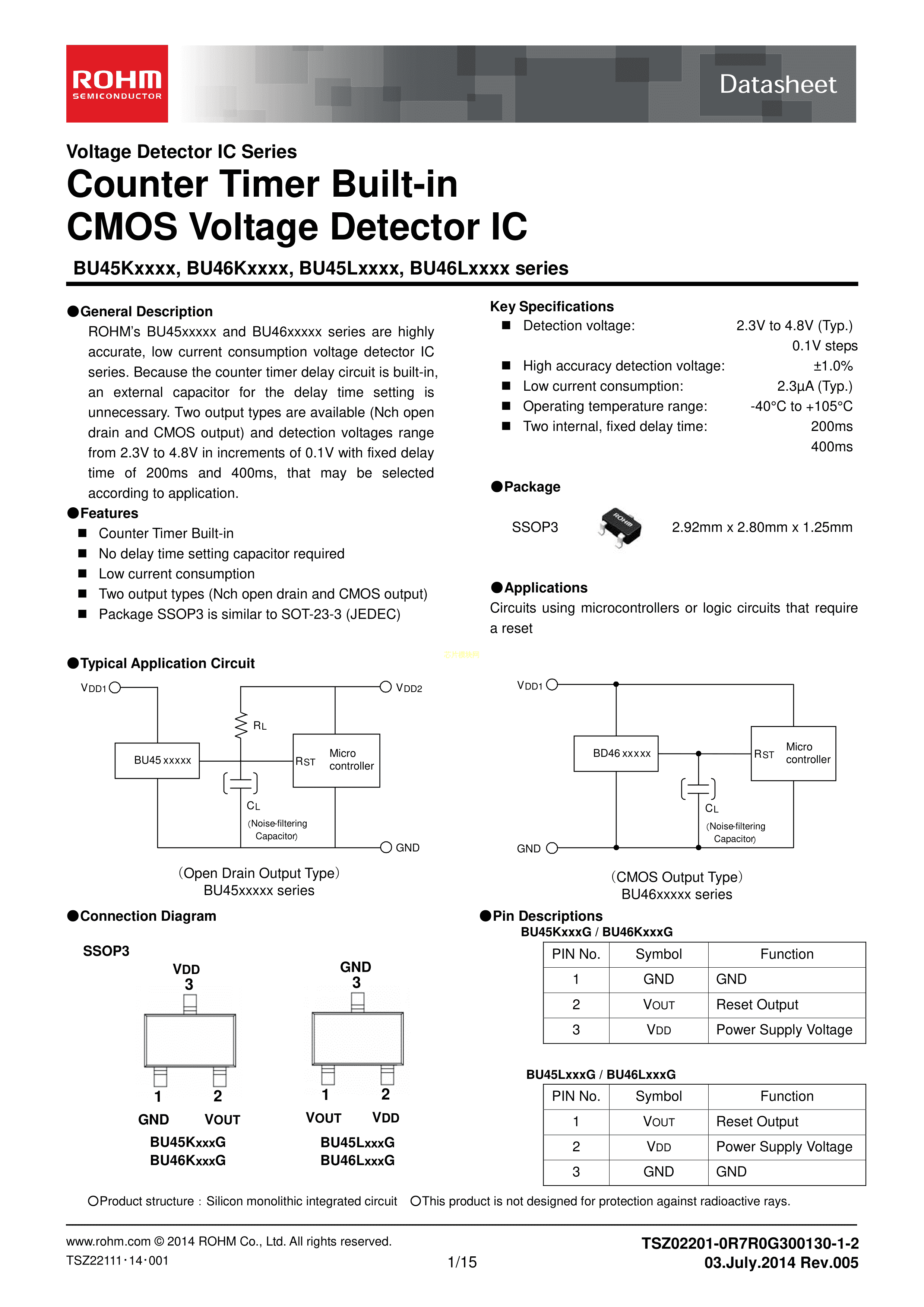 BU45L274G-TL数据手册SSOP-3封装ROHM(罗姆)PDF规格书,中英文下载