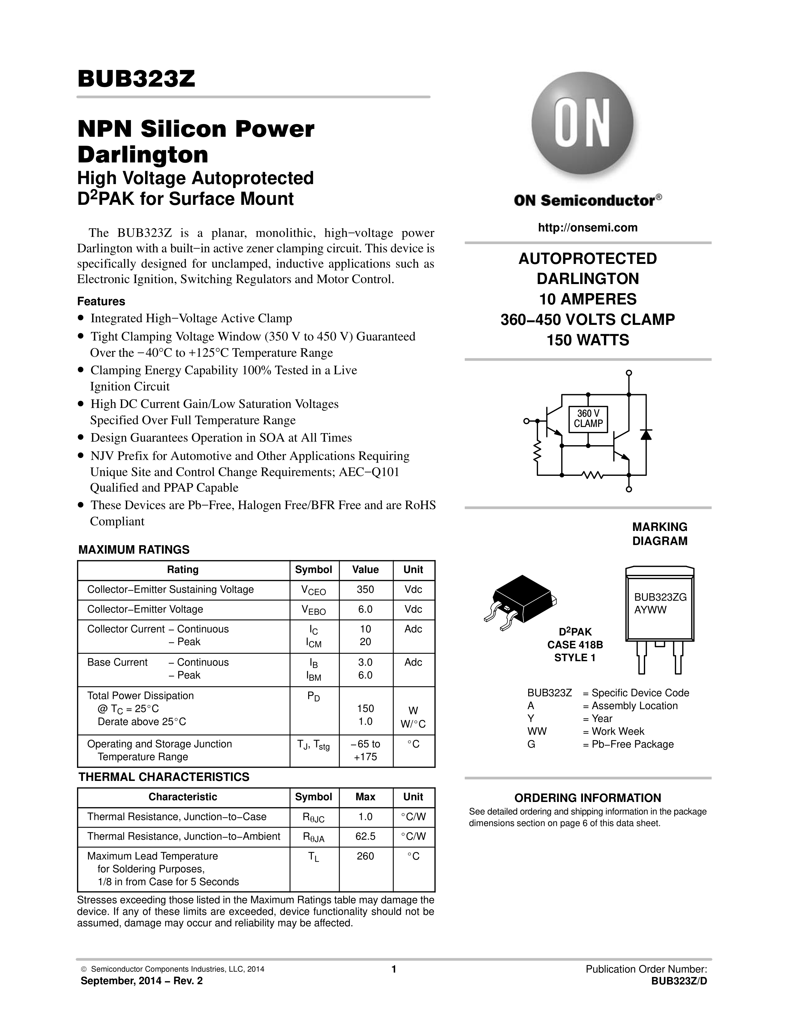BUB323ZT4G数据手册D2PAK封装onsemi(安森美)PDF规格书,中英文下载