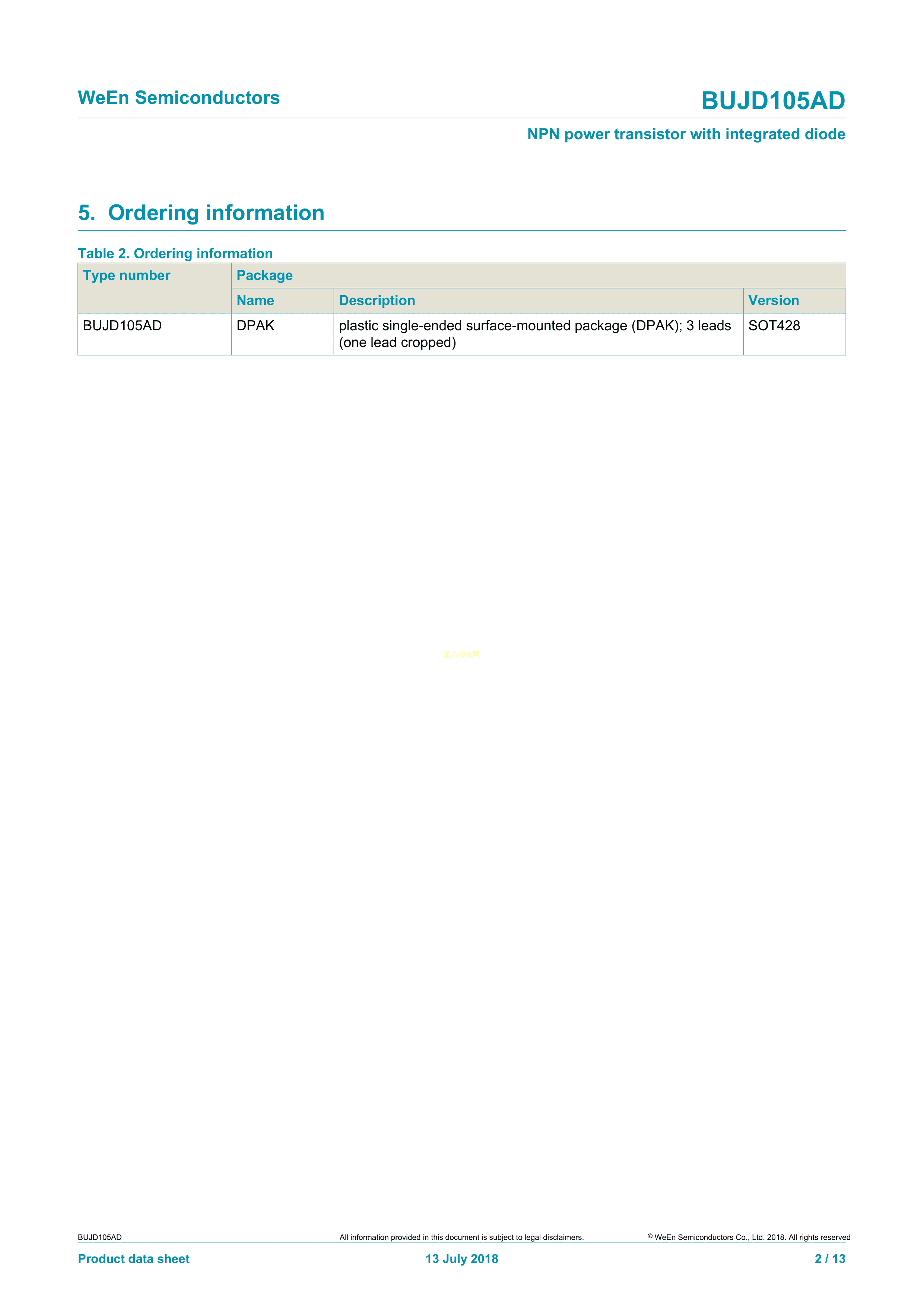 BUJD105AD118数据手册SOT-428封装WeEn(瑞能)PDF规格书,中英文下载