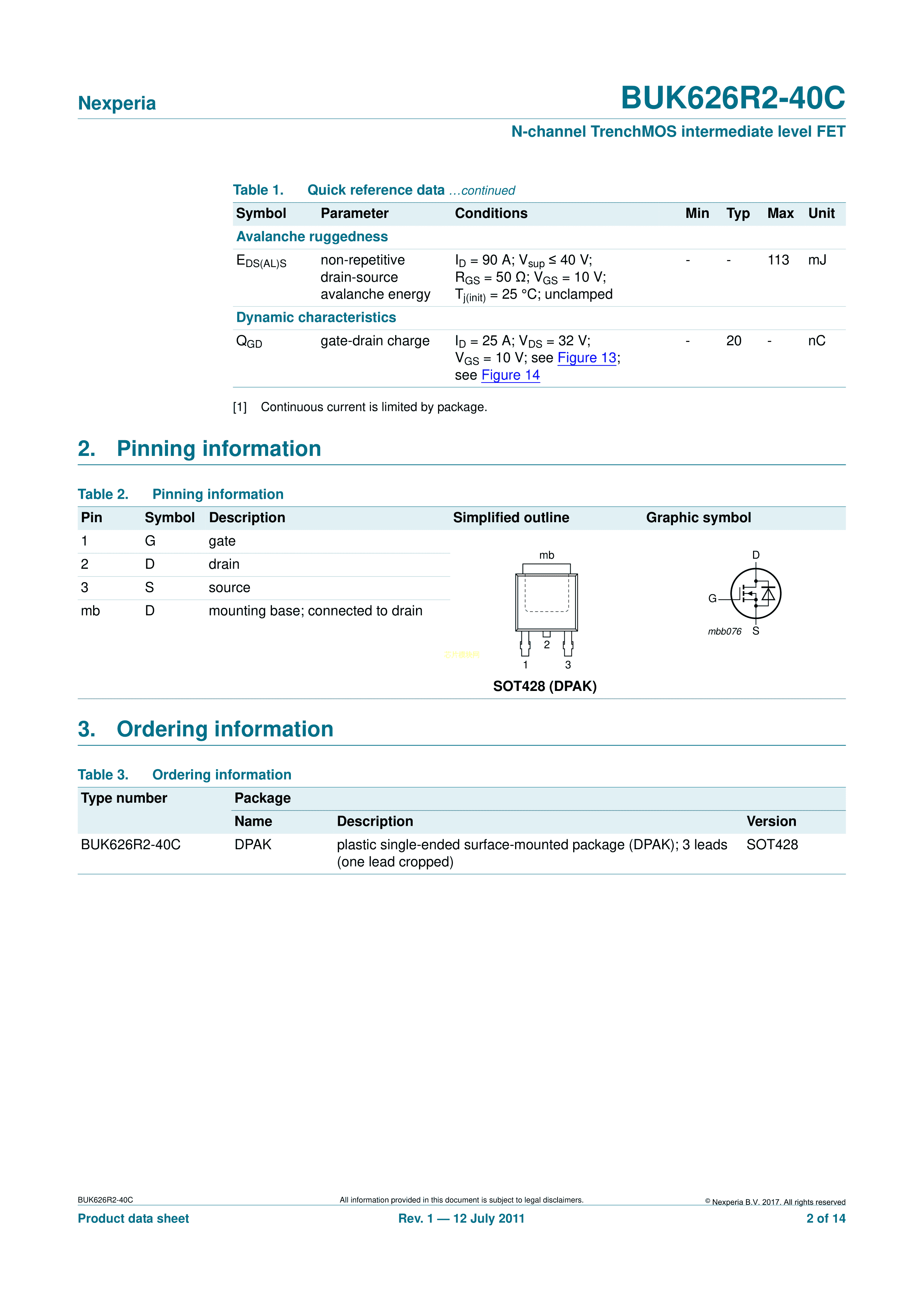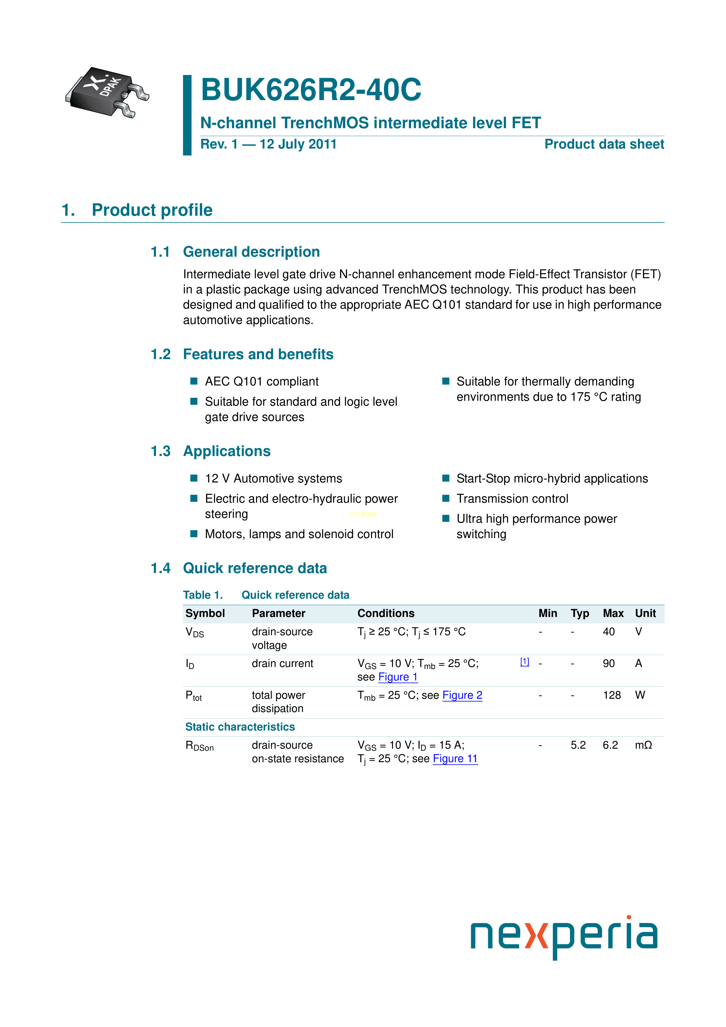 BUK626R2-40C118数据手册SOT-428封装Nexperia(安世)PDF规格书,中英文