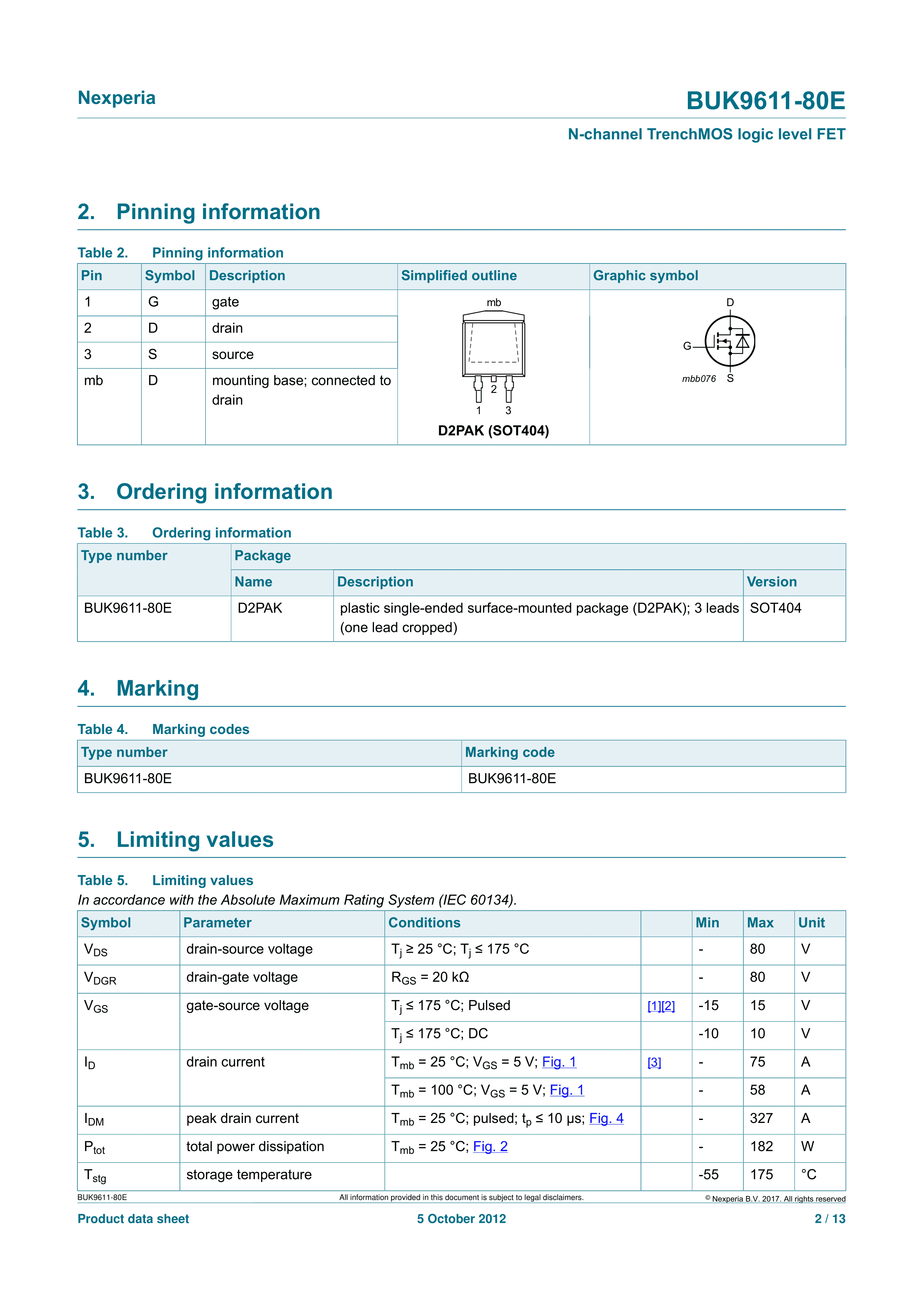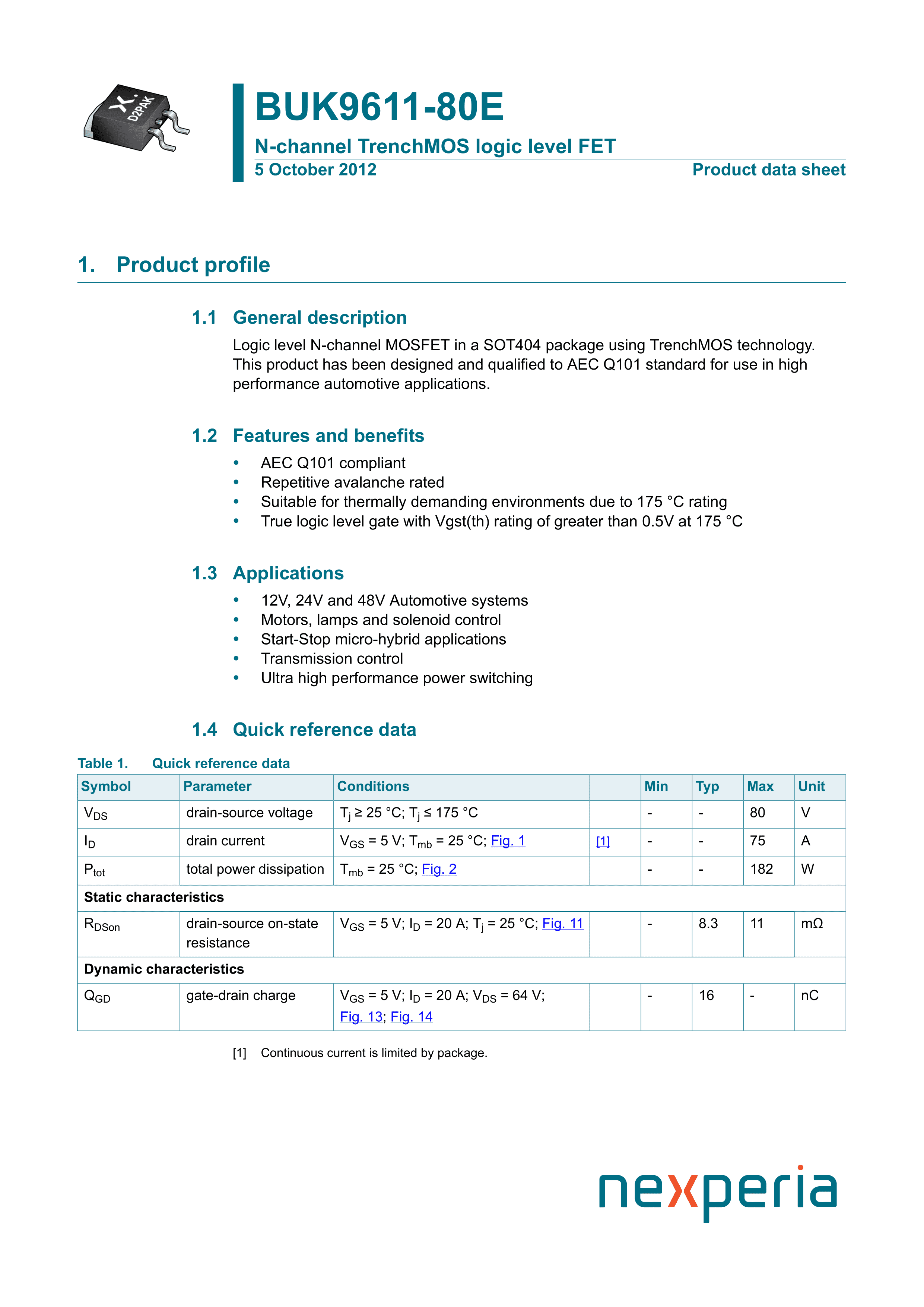 BUK9611-80E118数据手册D2PAK封装Nexperia(安世)PDF规格书,中英文下载