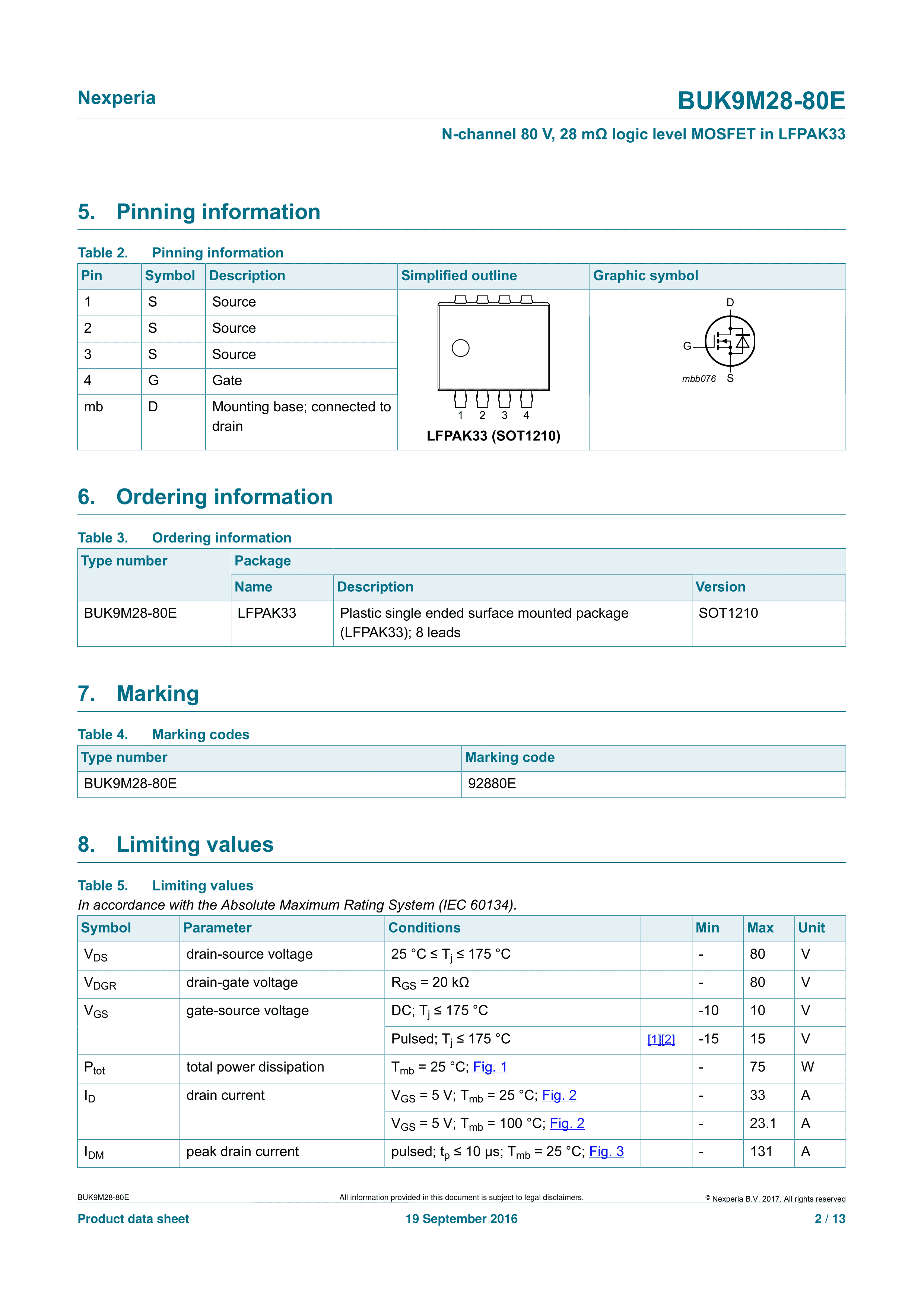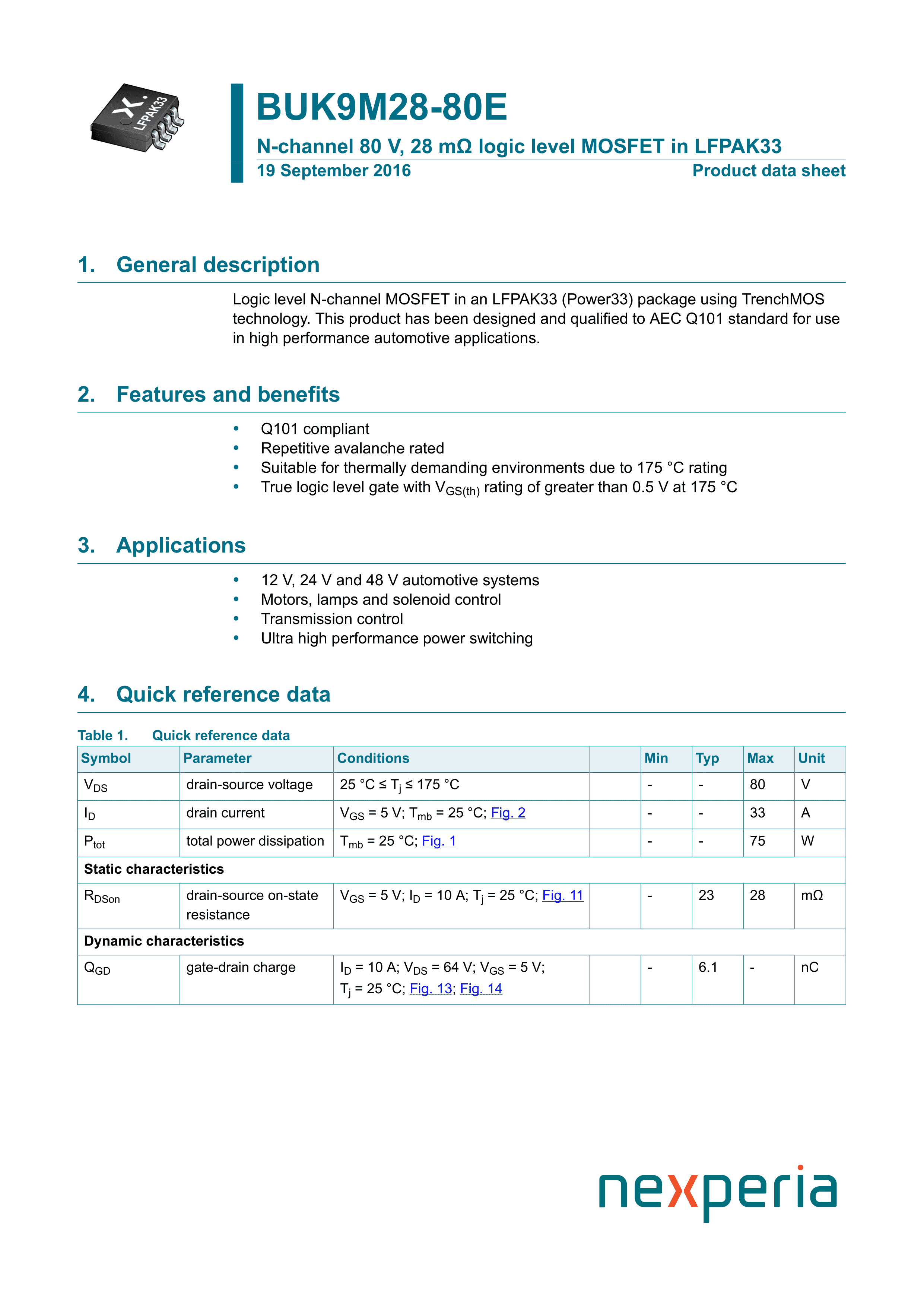BUK9M28-80EX数据手册LFPAK33封装Nexperia(安世)PDF规格书,中英文下载