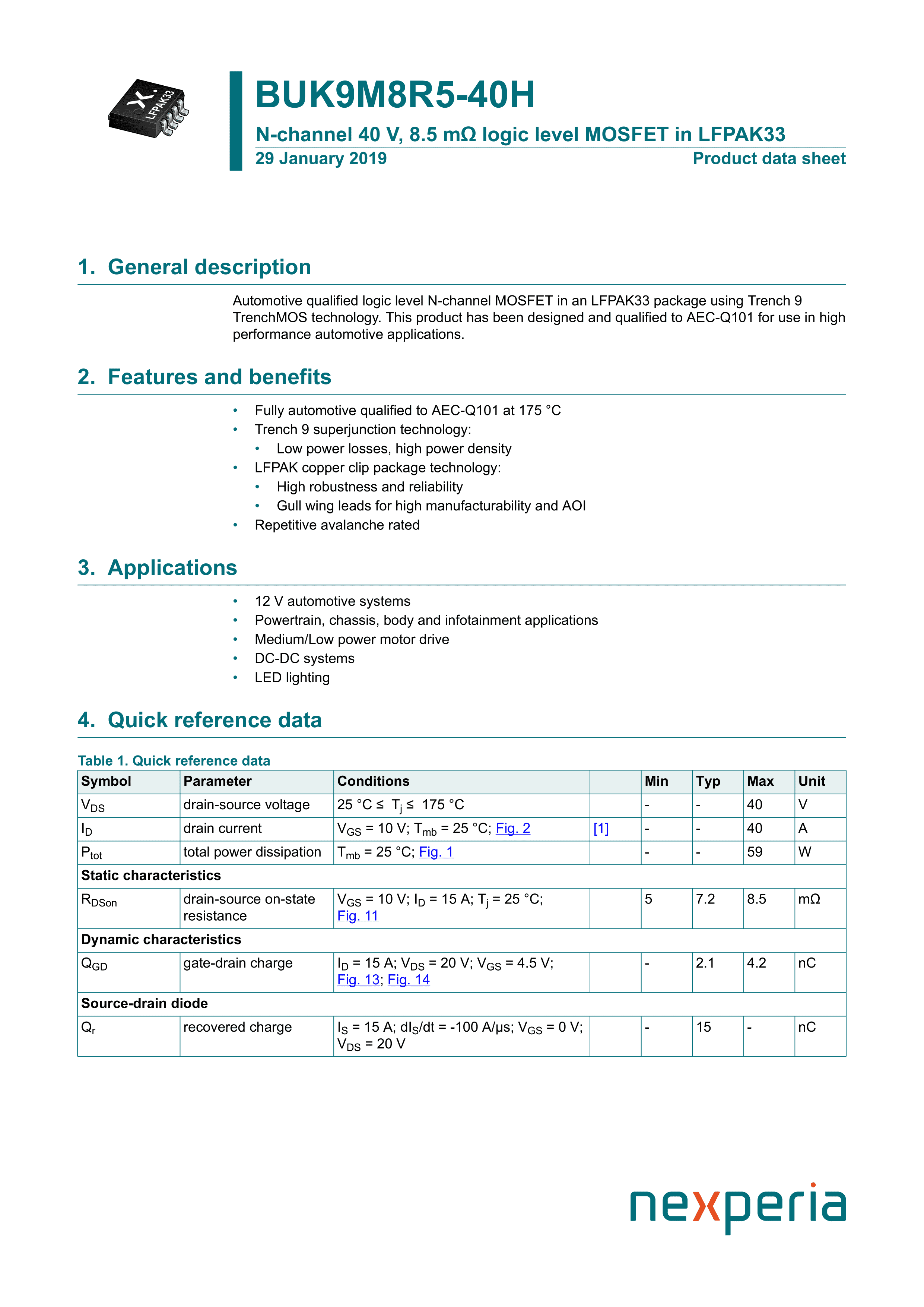 BUK9M8R5-40HX数据手册LFPAK33封装Nexperia(安世)PDF规格书,中英文下载