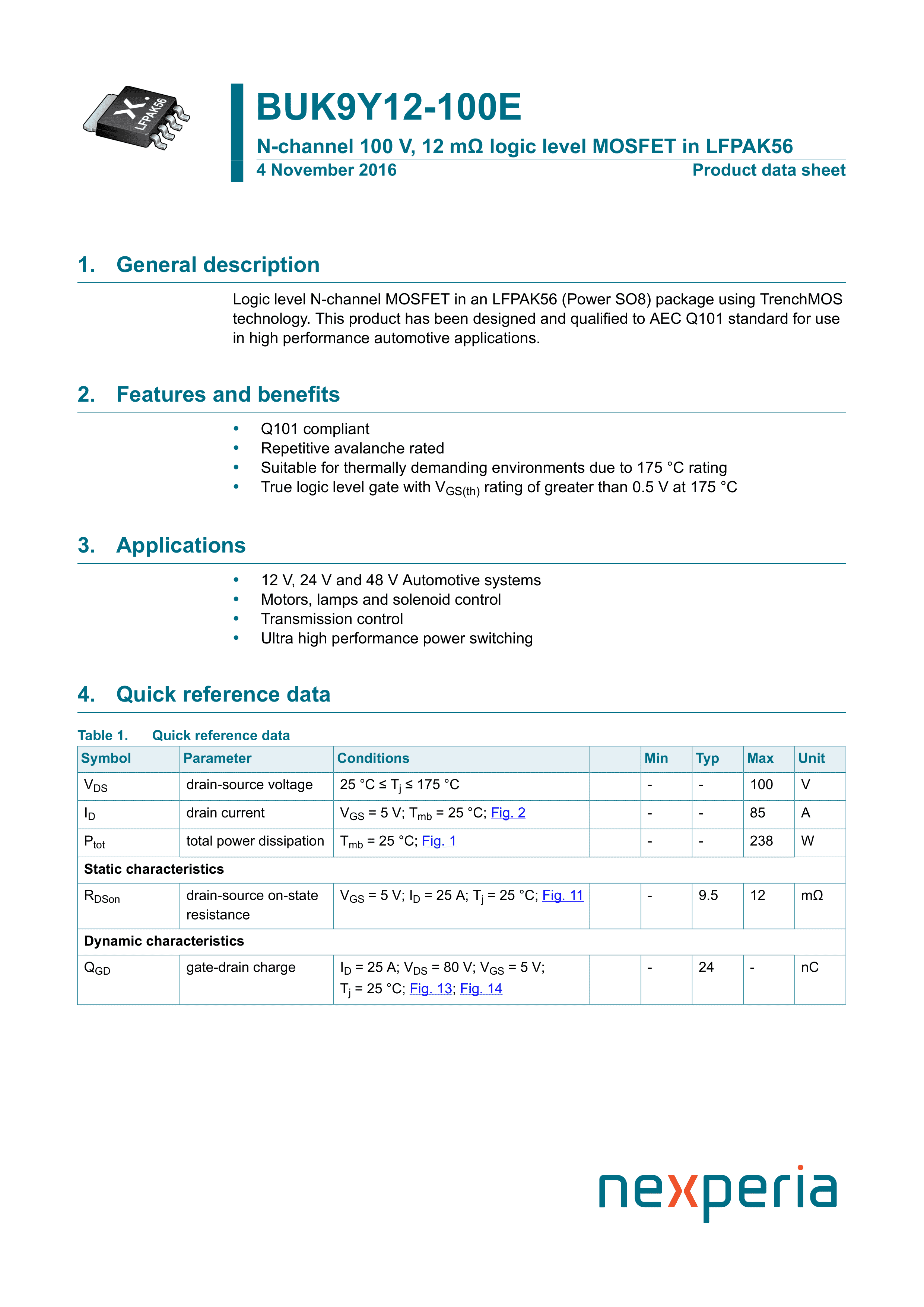 BUK9Y12-100E115数据手册SOT-669封装Nexperia(安世)PDF规格书,中英文