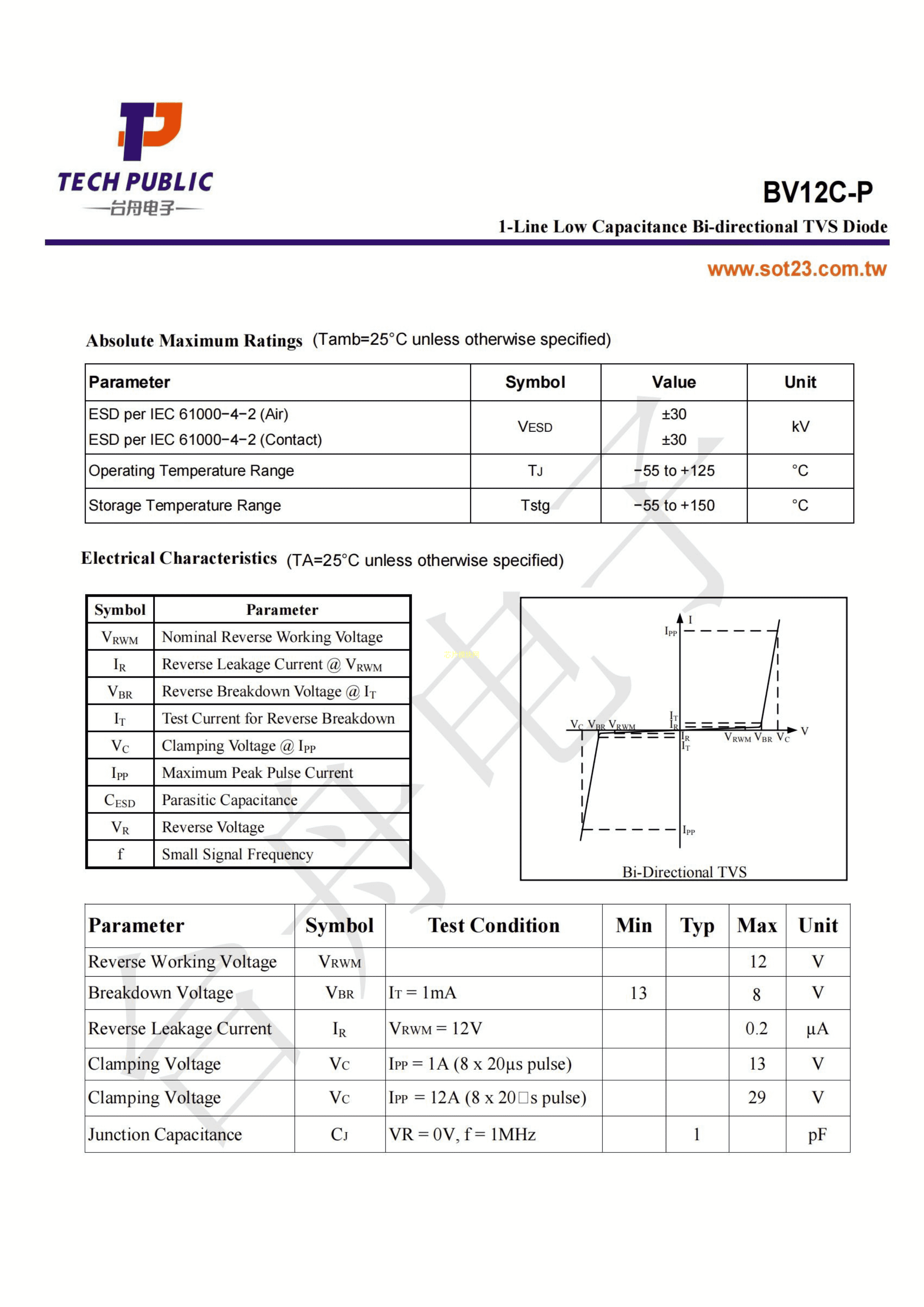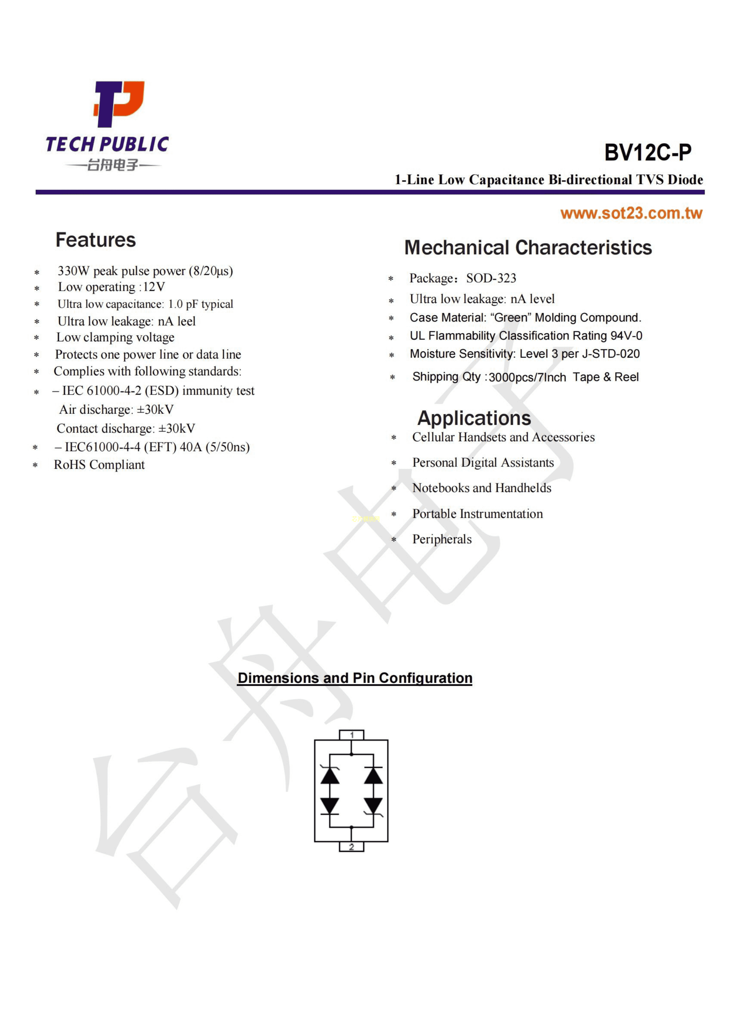 BV12C-P数据手册SOD-323封装TECHPUBLIC(台舟)PDF规格书,中英文下载