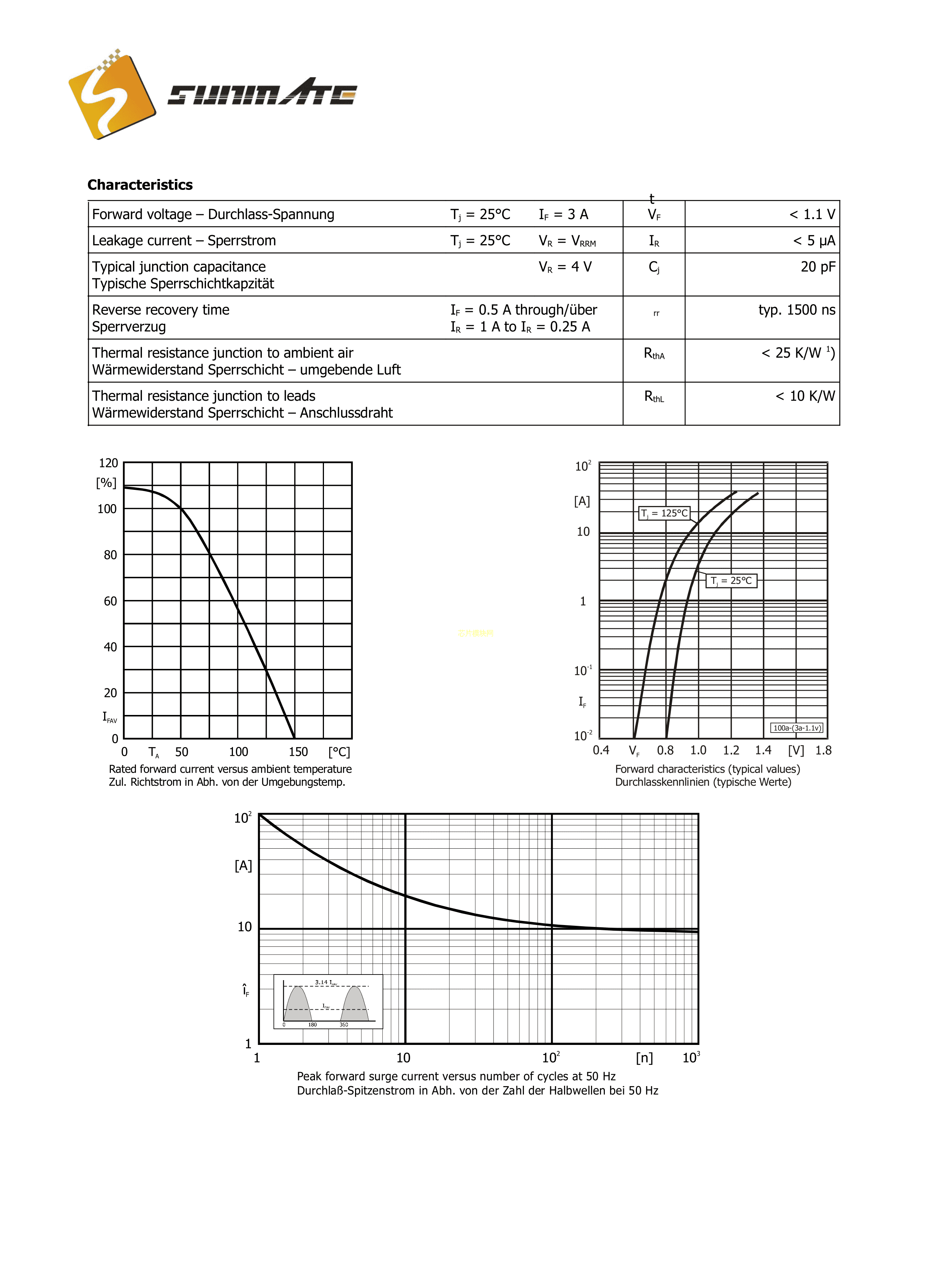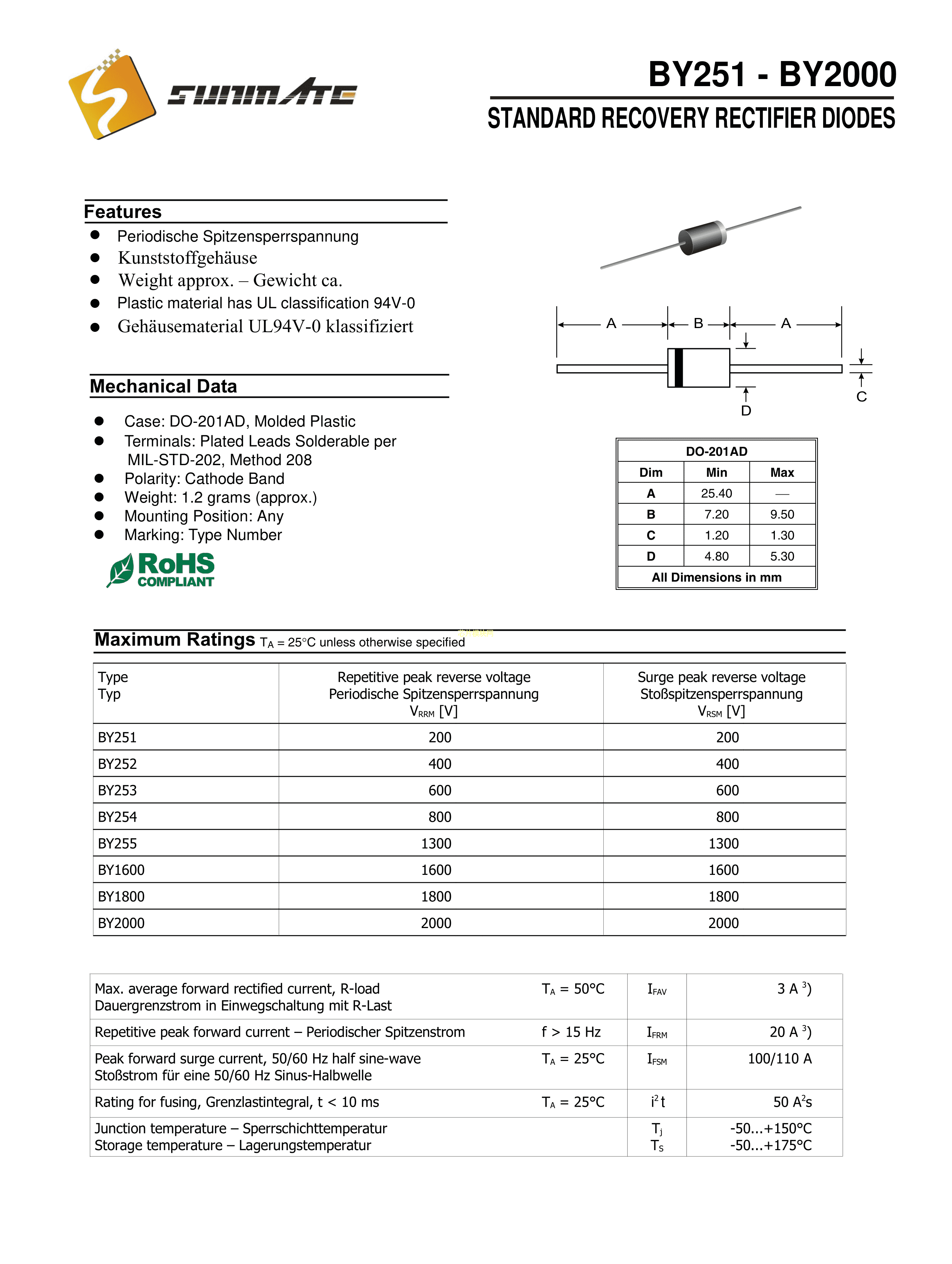 BY255数据手册DO-201AD封装SUNMATE(森美特)PDF规格书,中英文下载
