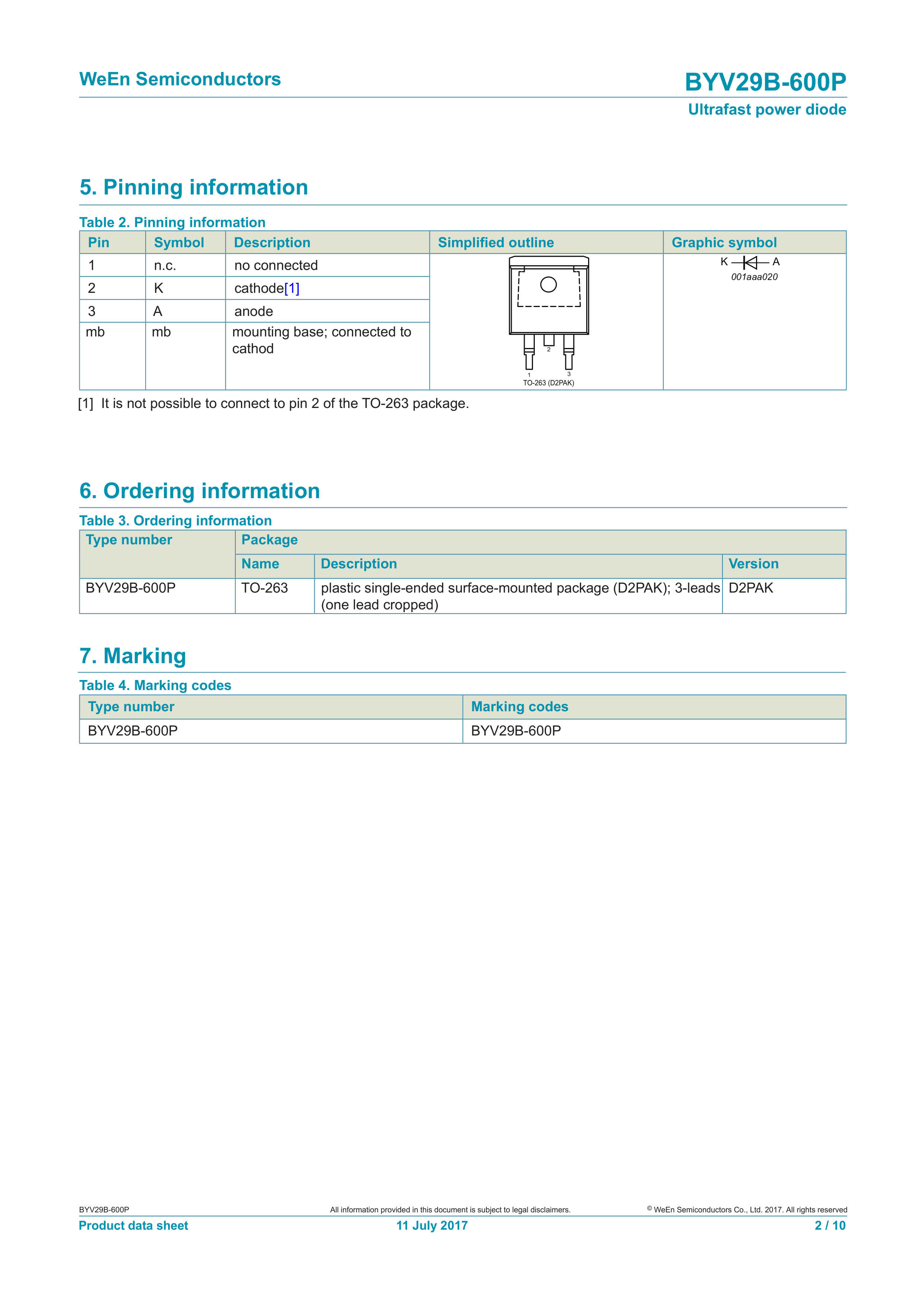 BYV29B-600PJ数据手册TO-263封装WeEn(瑞能)PDF规格书,中英文下载