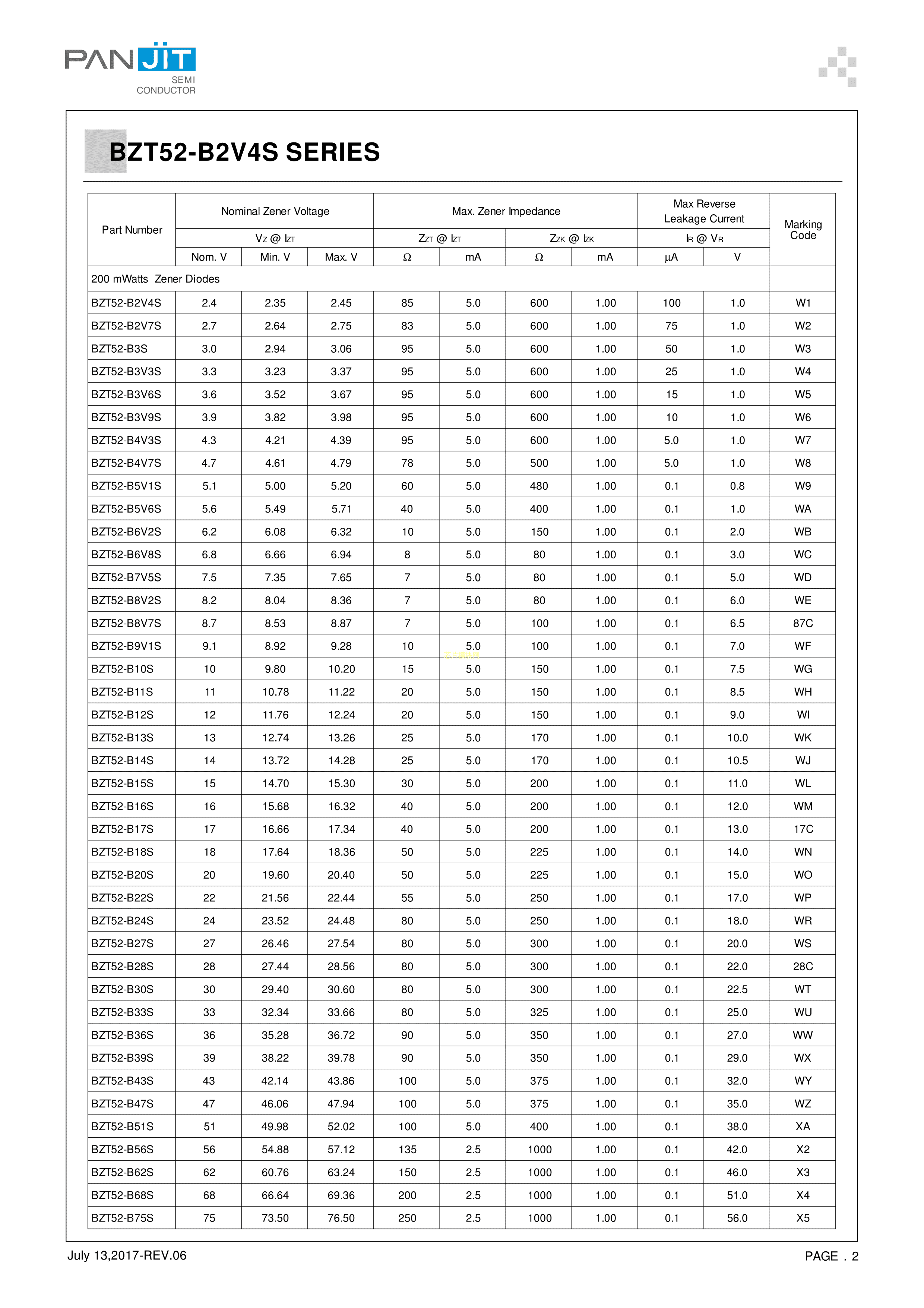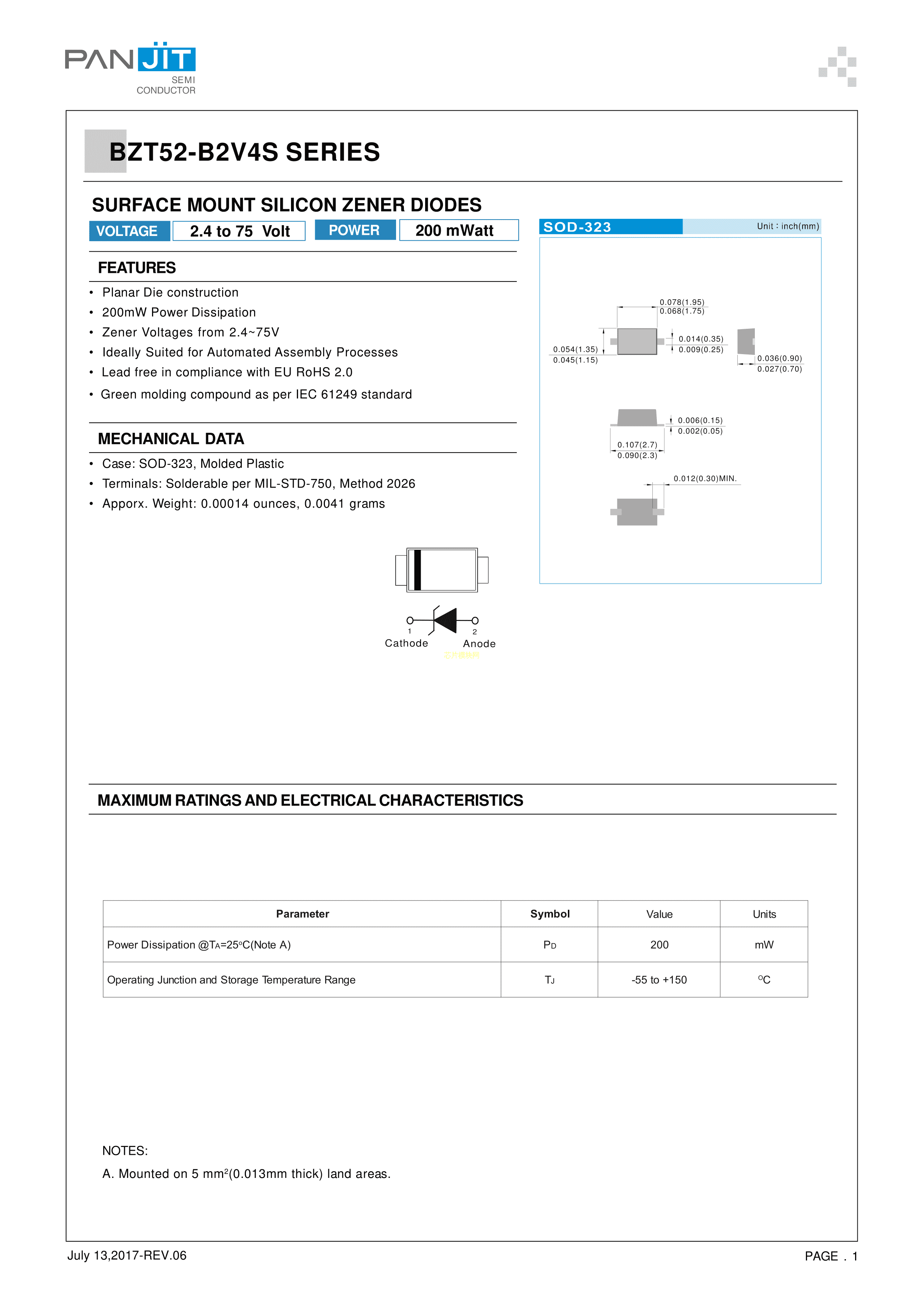 BZT52-B22S_R1_00001数据手册SOD-323封装PANJIT(强茂)PDF规格书,中英文下载