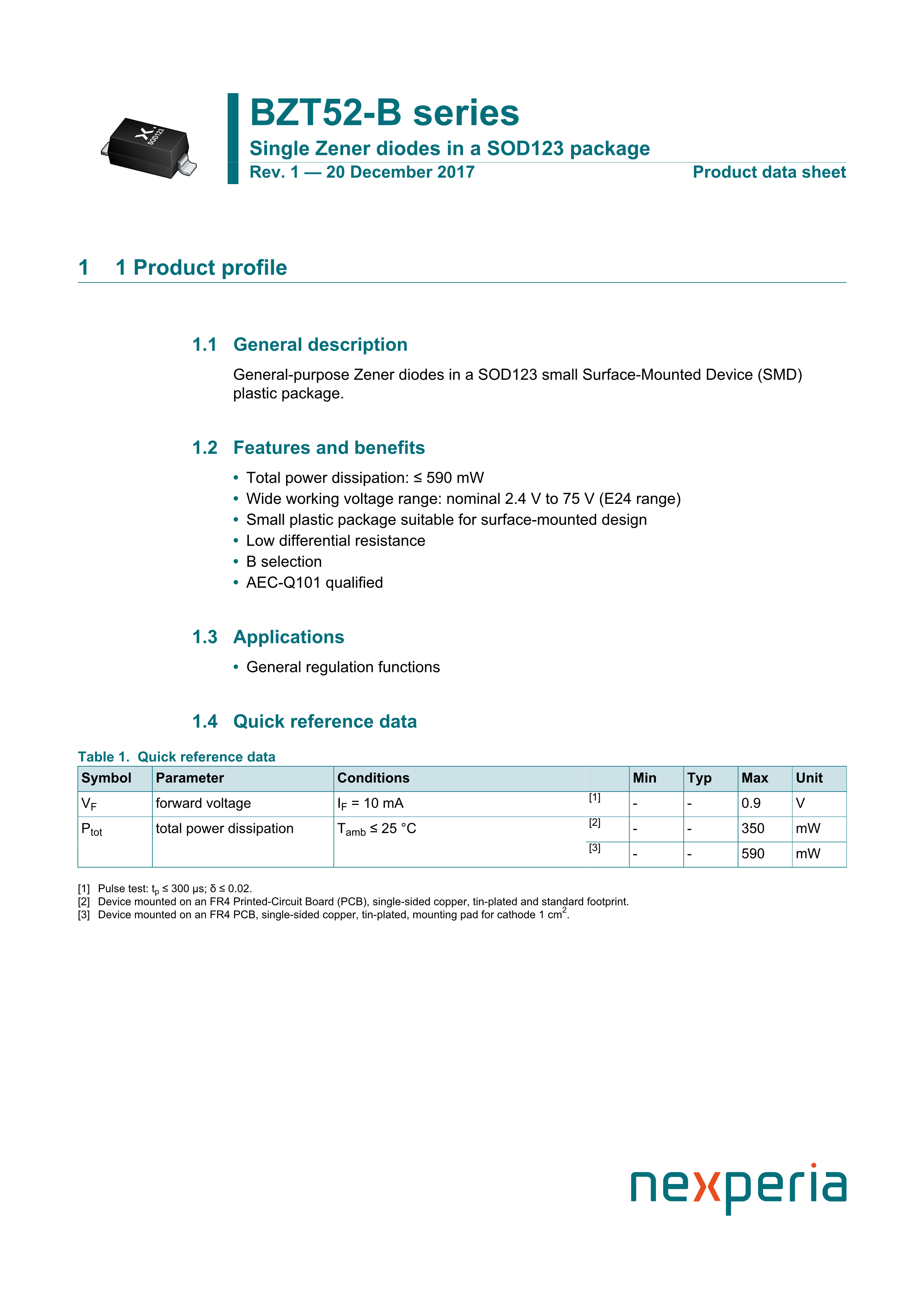 BZT52-B51X数据手册SOD-123封装Nexperia(安世)PDF规格书,中英文下载