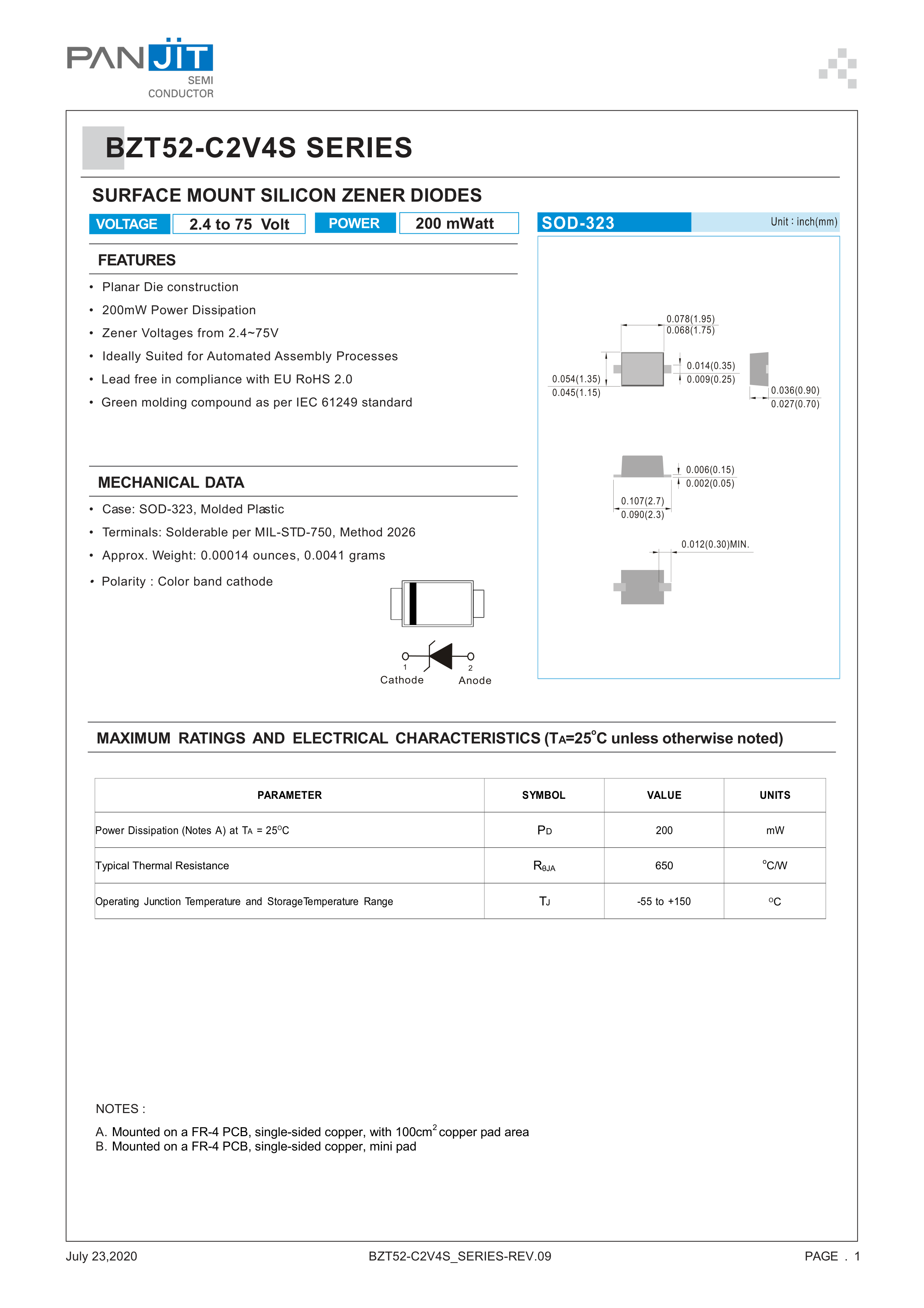 BZT52-C11S_R1_00001数据手册SOD-323封装PANJIT(强茂)PDF规格书,中