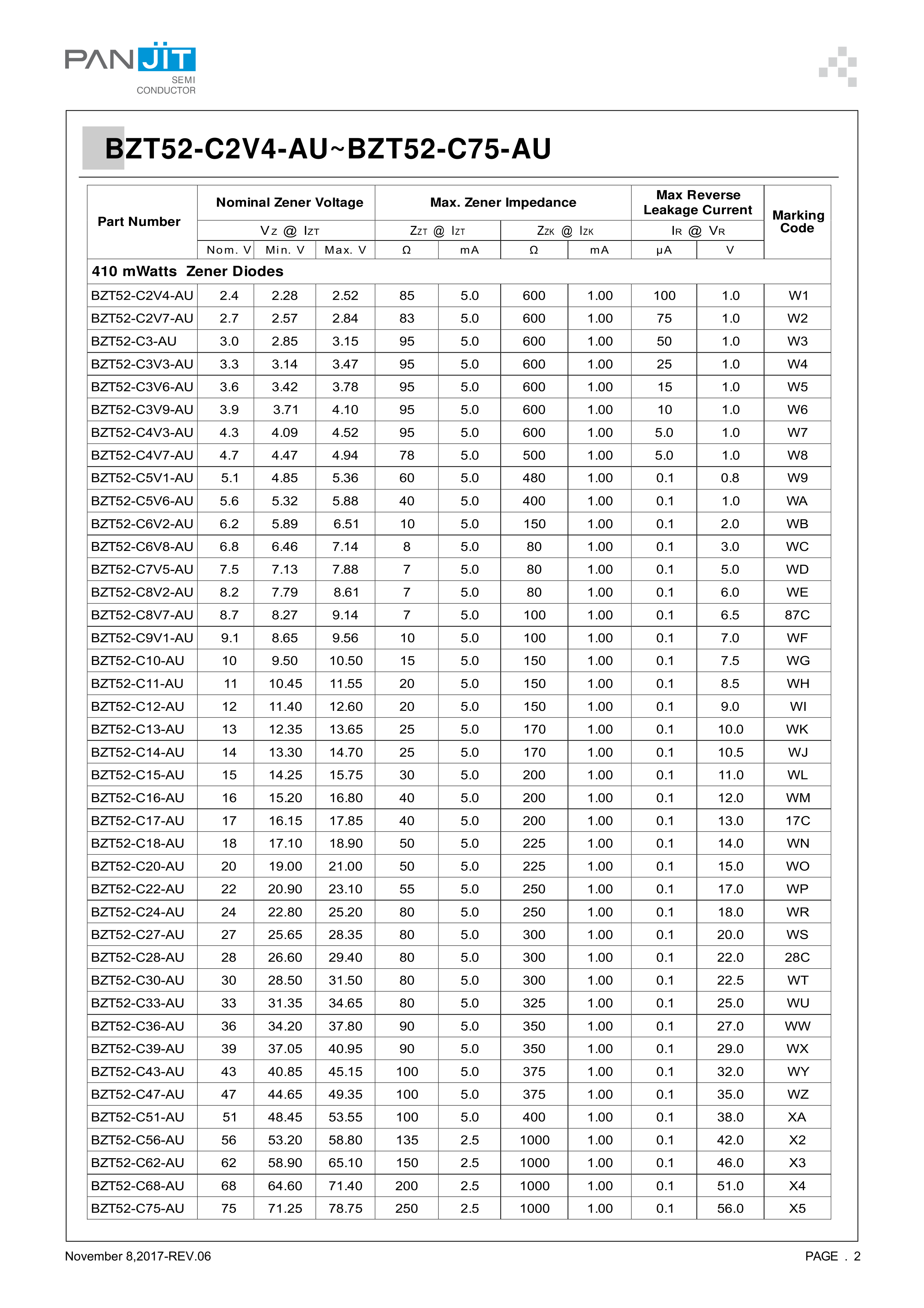 BZT52-C20-AU_R1_00001数据手册SOD-123封装PANJIT(强茂)PDF规格书