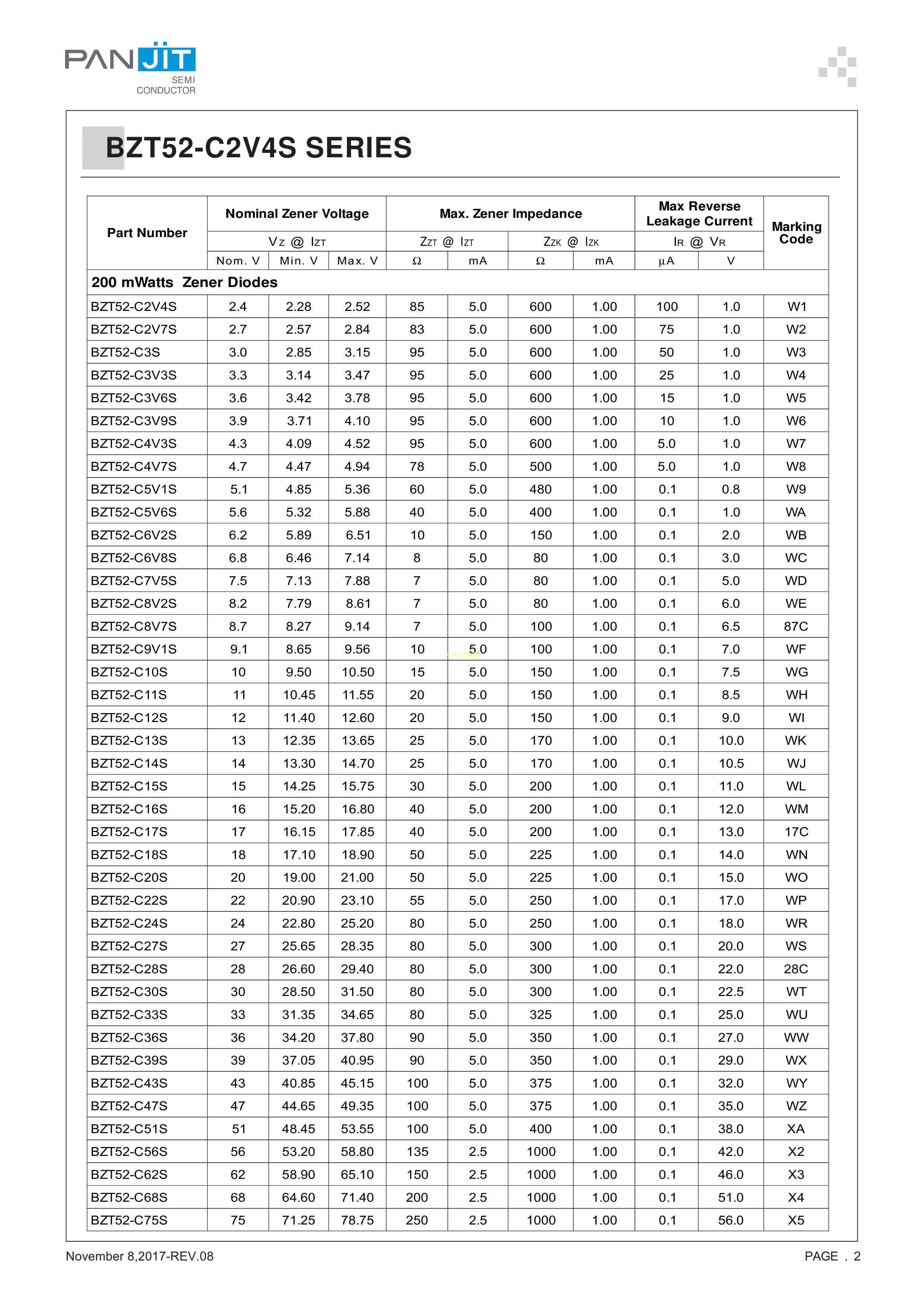 BZT52-C7V5S_R1_000A2数据手册SOD-323封装PANJIT(强茂)PDF规格书,