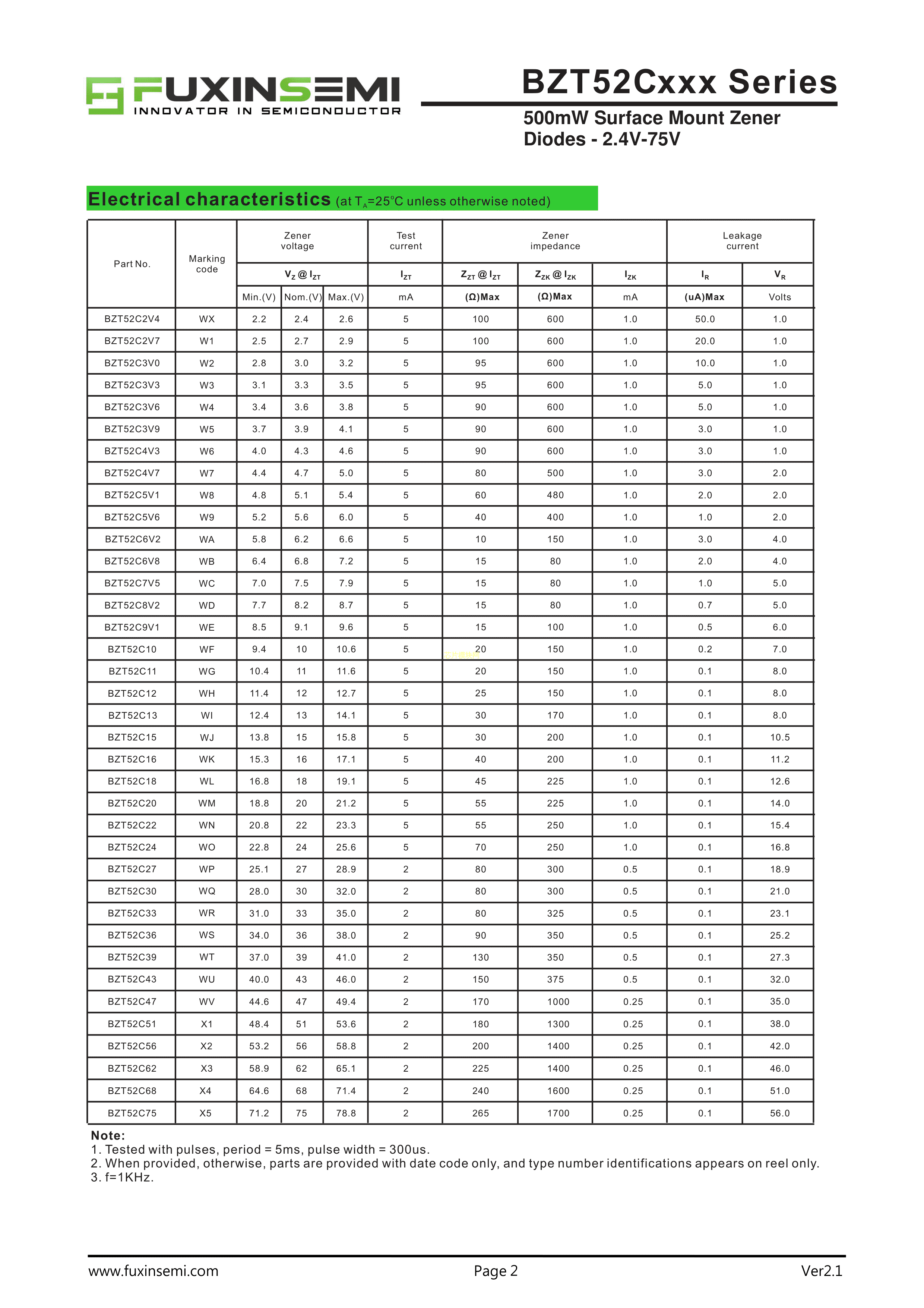 BZT52C12数据手册SOD-123封装FUXINSEMI(富芯森美)PDF规格书,中英文下载