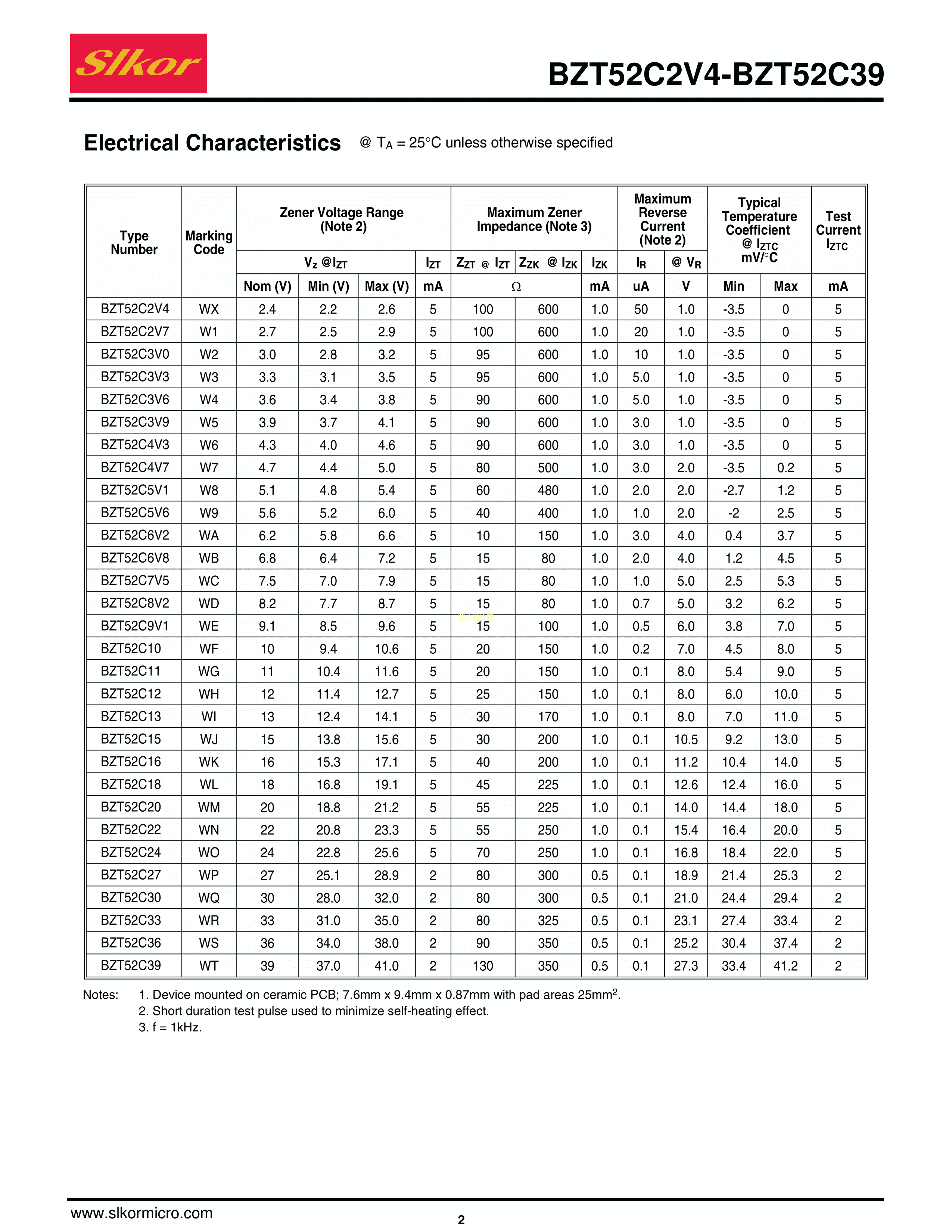 BZT52C2V7数据手册SOD-123封装Slkor(萨科微)PDF规格书,中英文下载