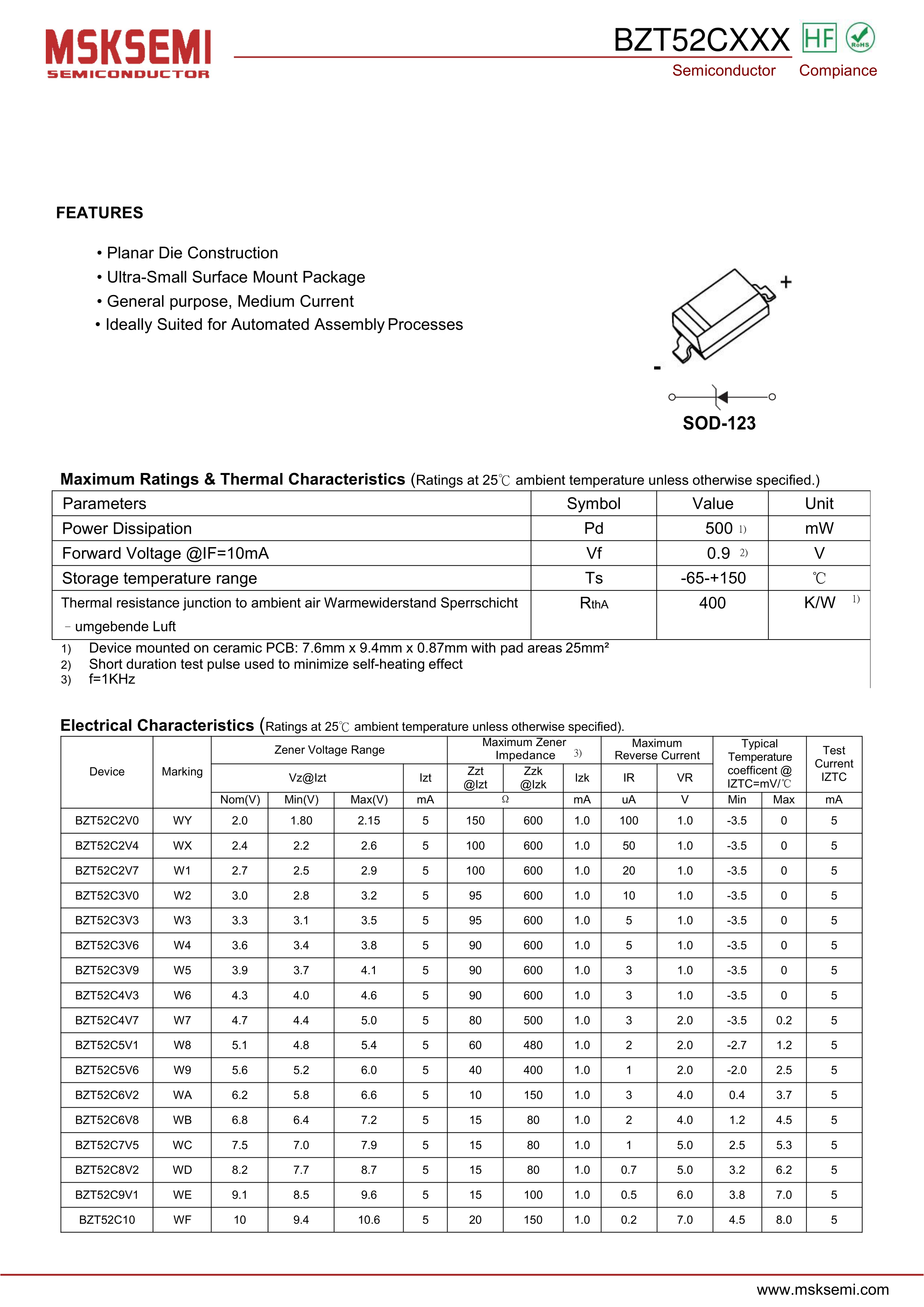 BZT52C39数据手册SOD-123封装MSKSEMI(美森科)PDF规格书,中英文下载