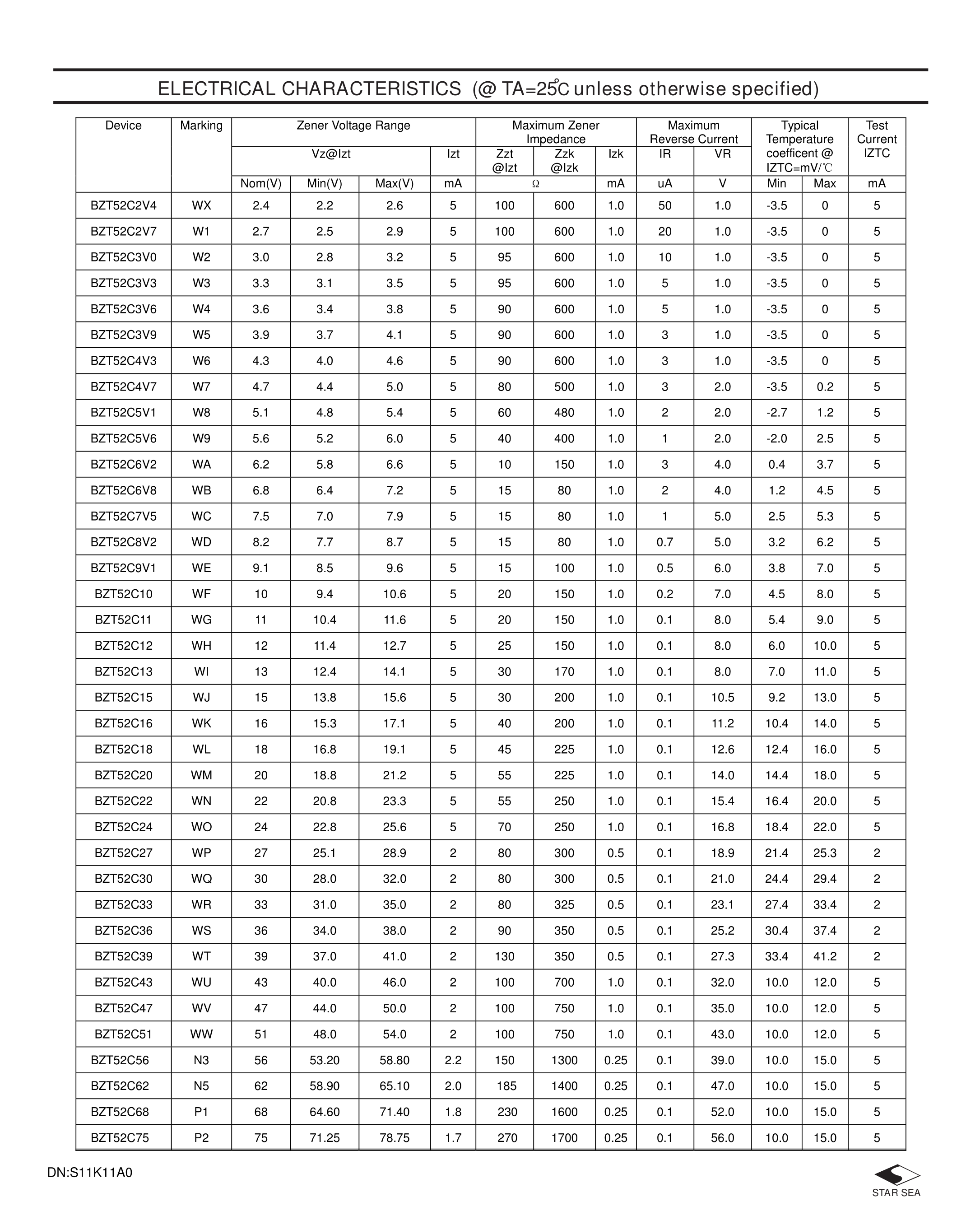 BZT52C5V1数据手册SOD-123封装星海PDF规格书,中英文下载