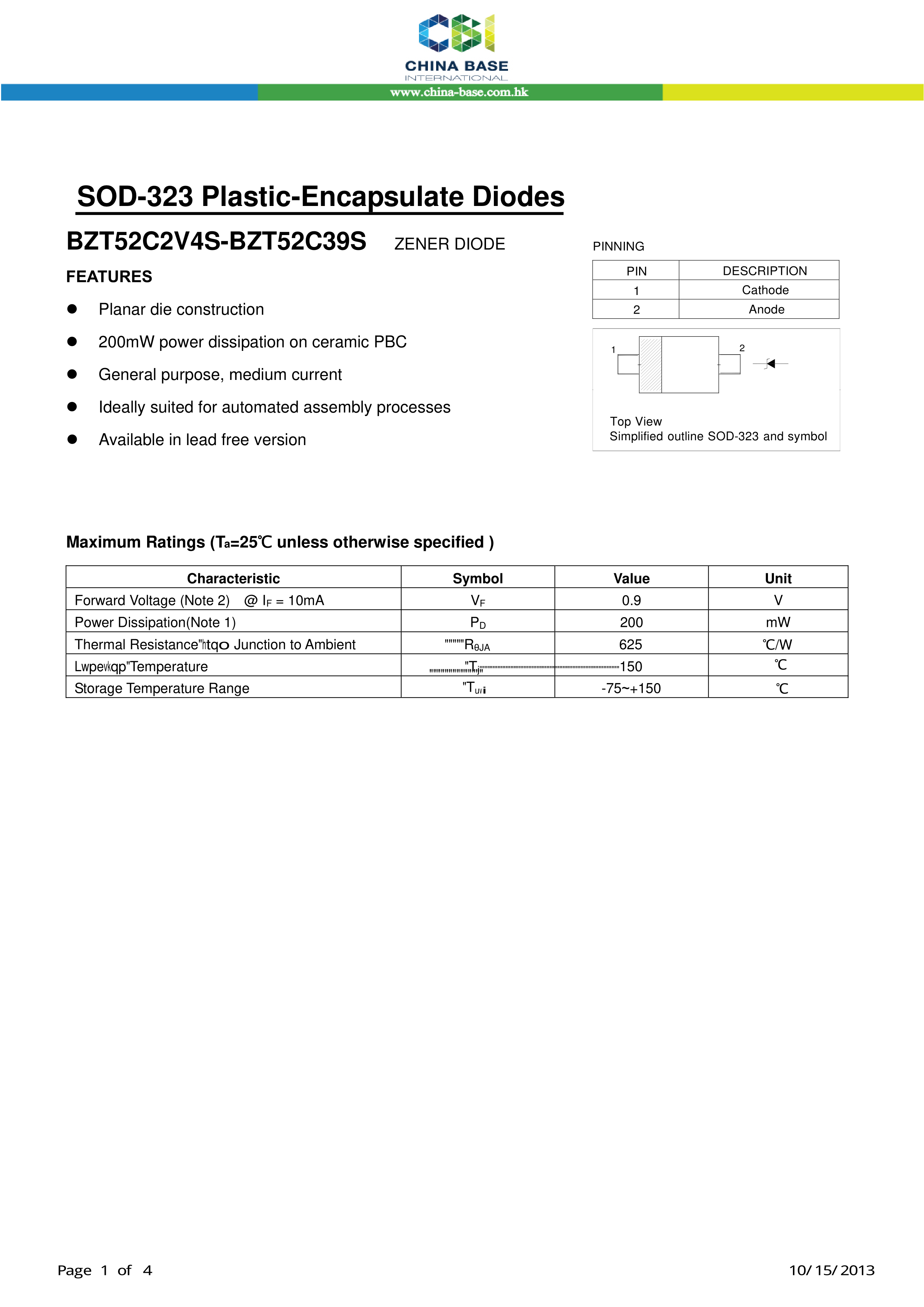 BZT52C7V5S WC数据手册SOD-323封装CBI(创基)PDF规格书,中英文下载
