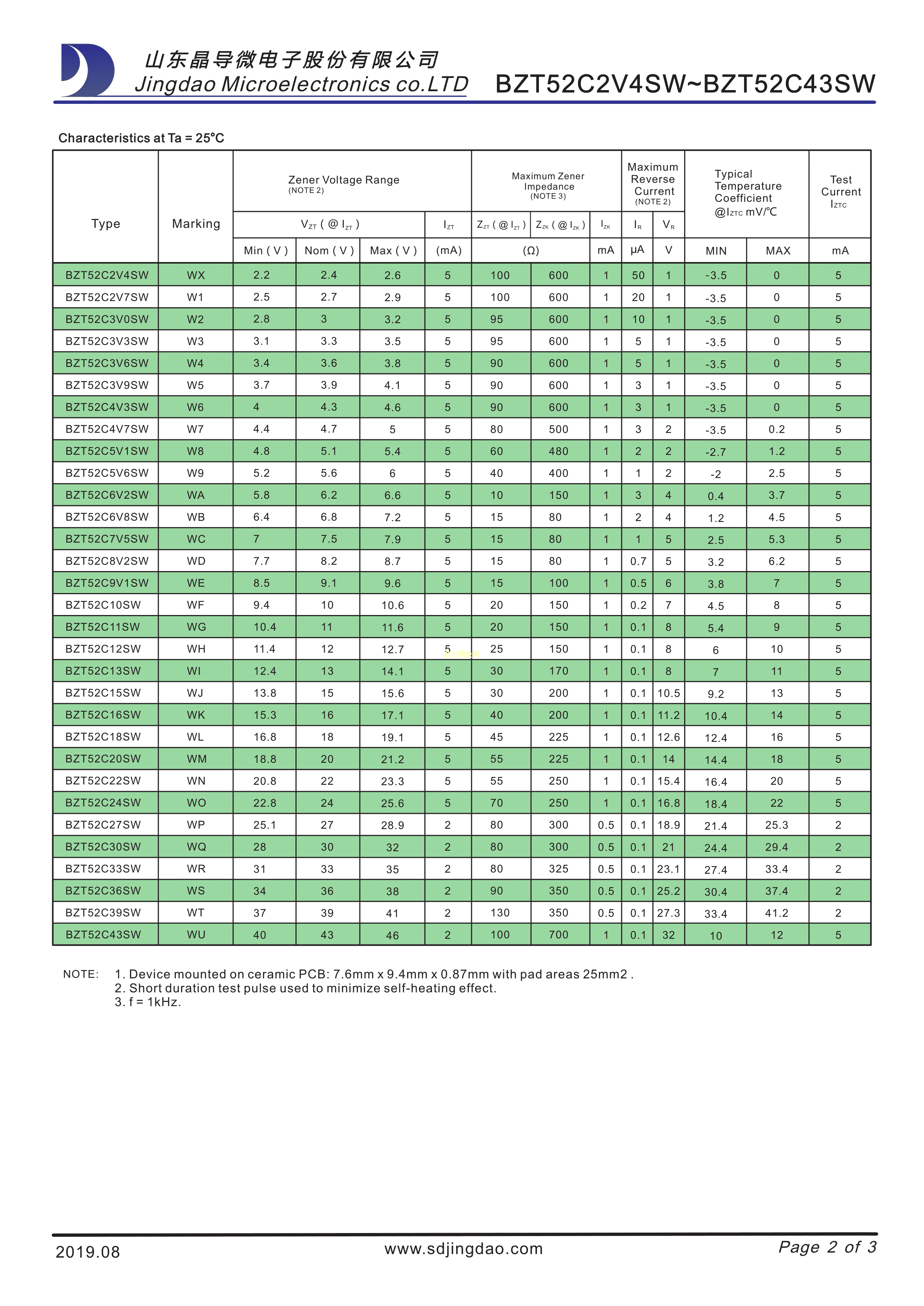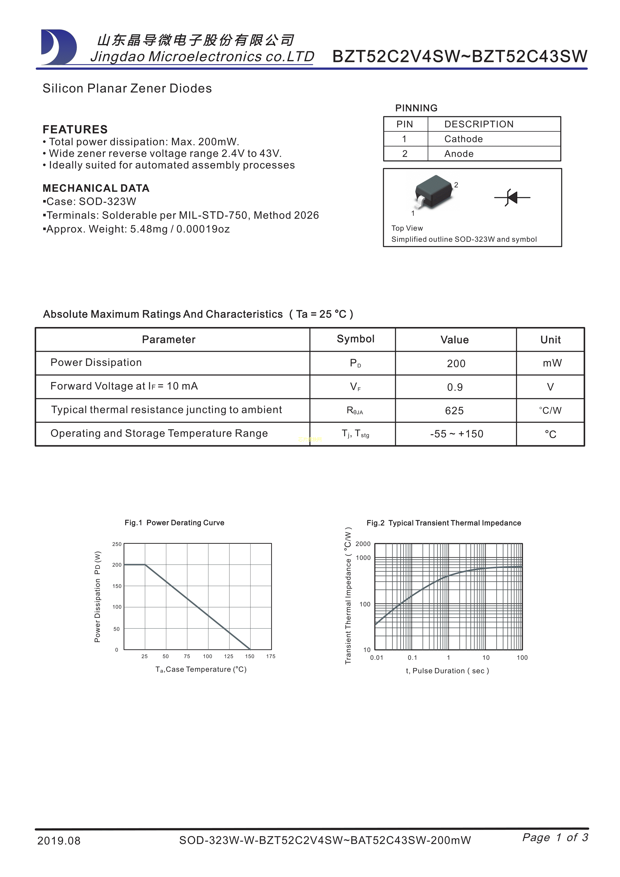 BZT52C9V1SW数据手册SOD-323W封装晶导微电子PDF规格书,中英文下载