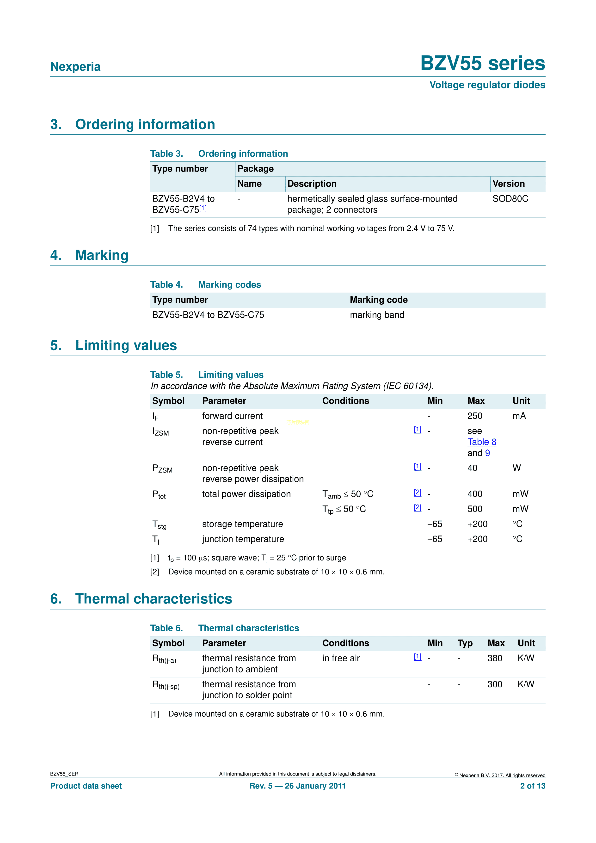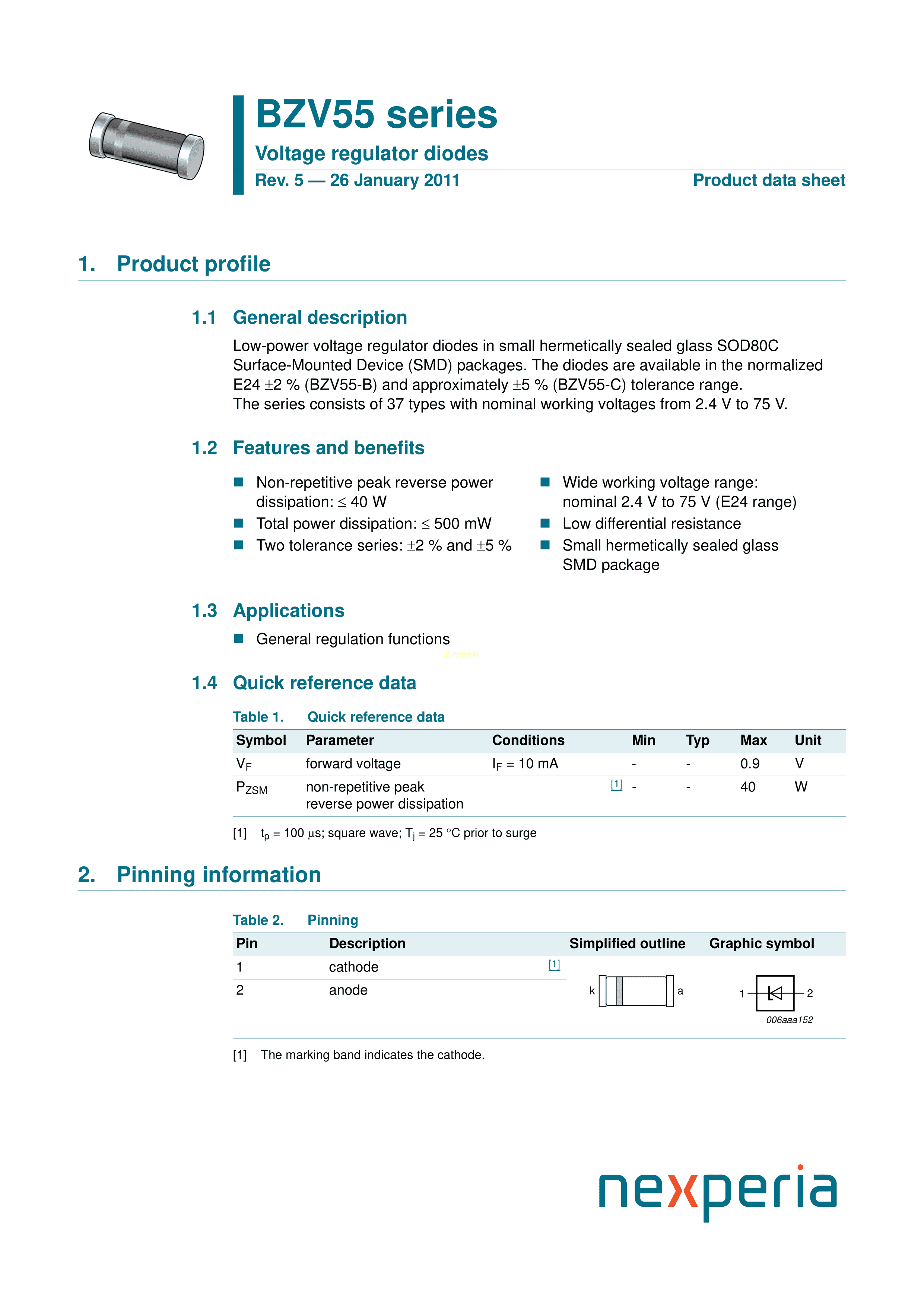 BZV55-C5V6115数据手册SOD-80C封装Nexperia(安世)PDF规格书,中英文下载