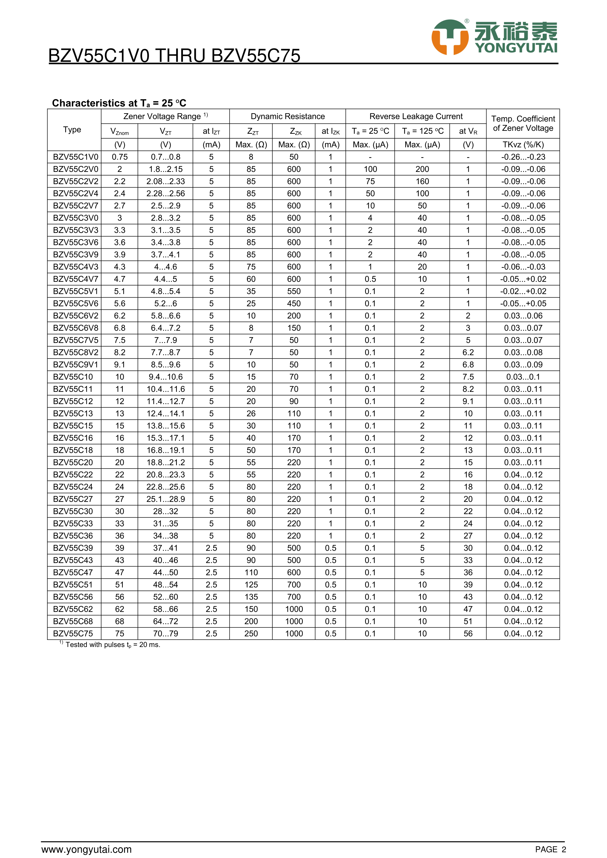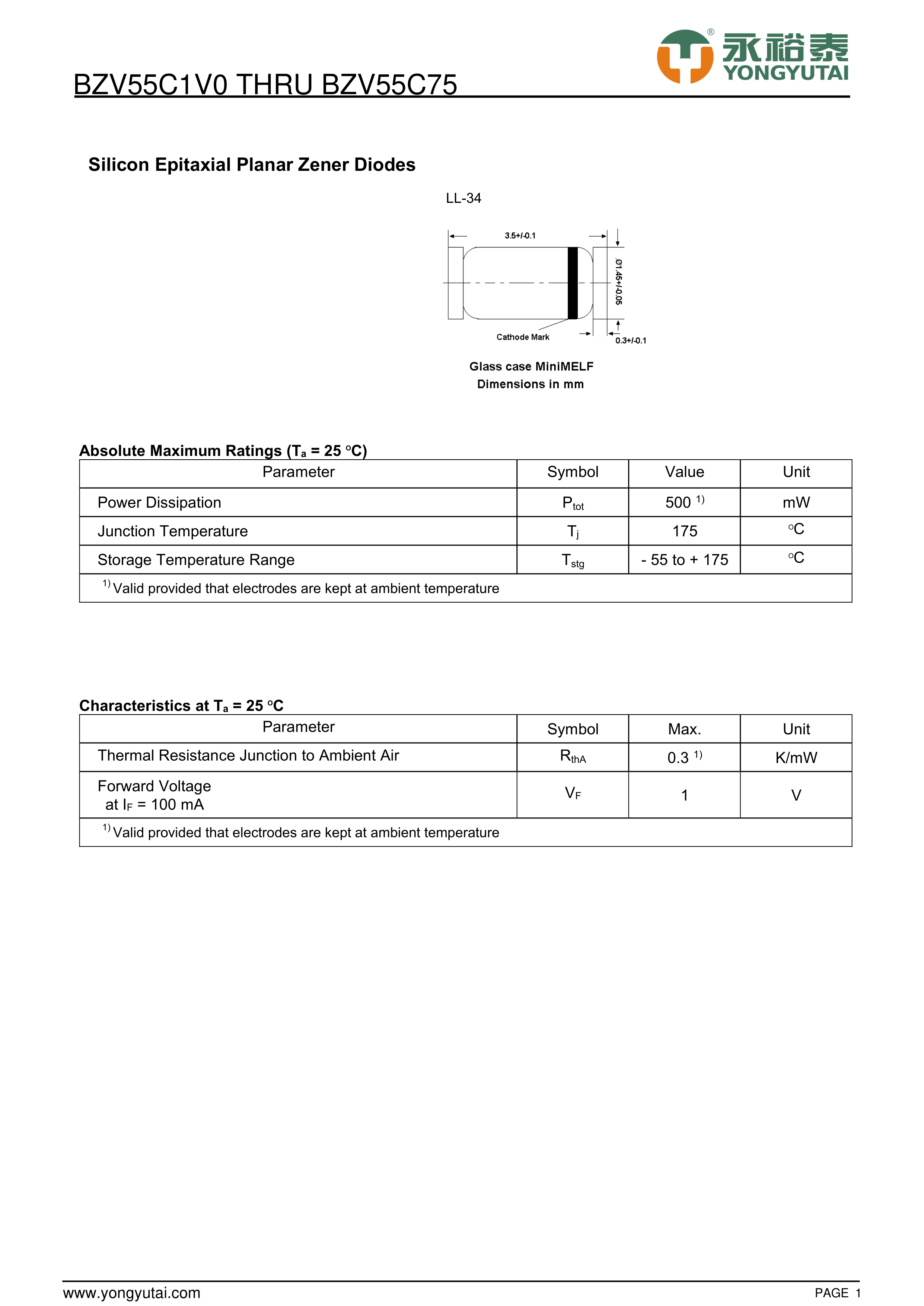 BZV55C4V7数据手册LL-34封装YONGYUTAI(永裕泰)PDF规格书,中英文下载