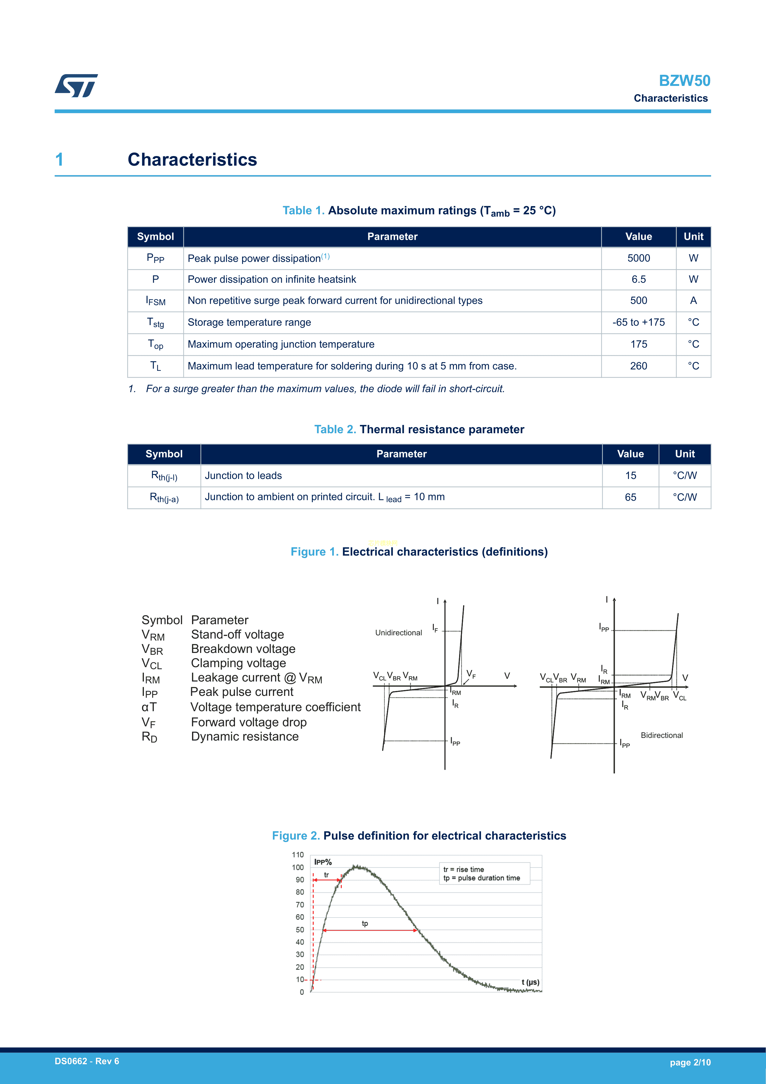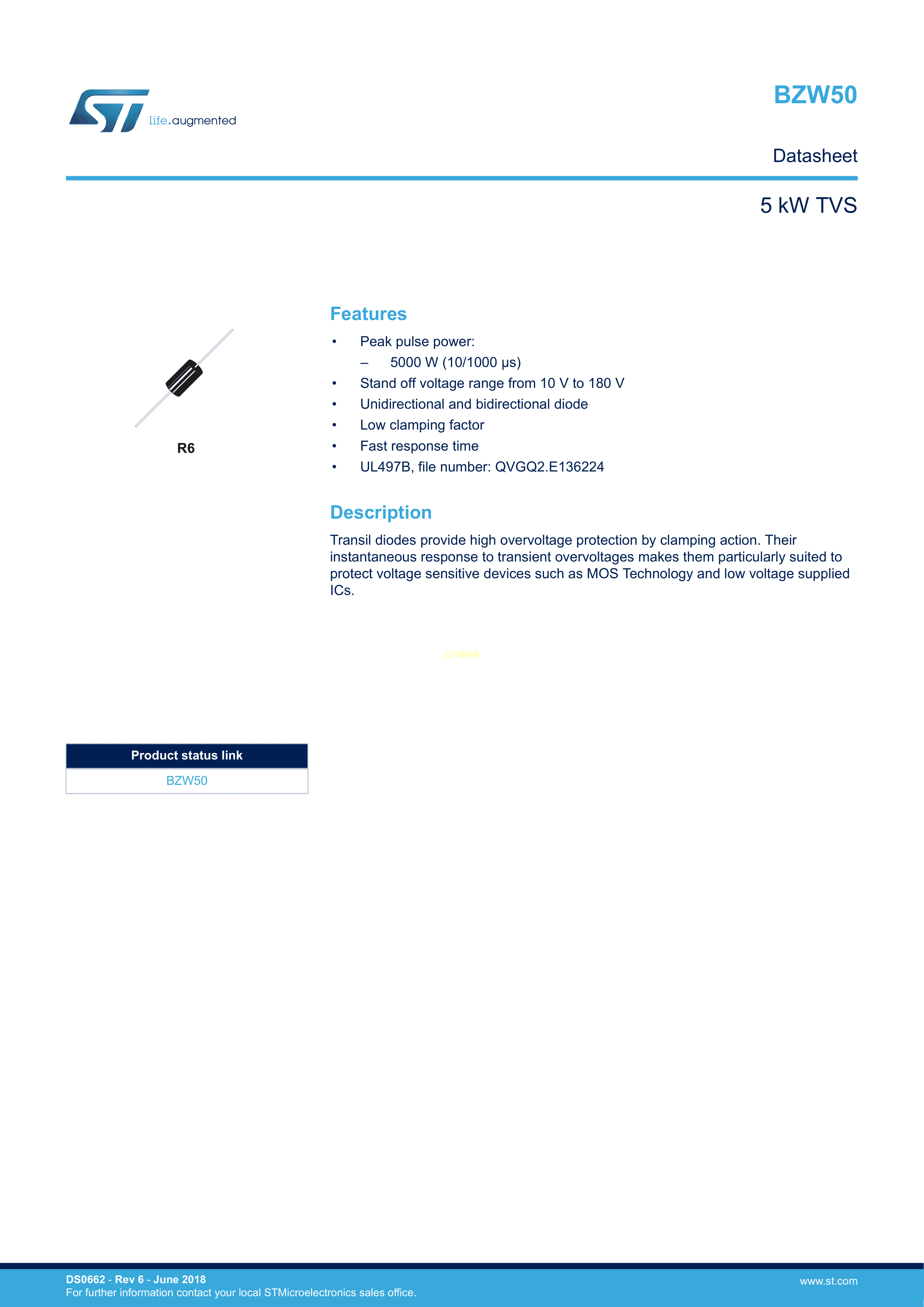 BZW50-27RL数据手册R-6封装ST(意法半导体)PDF规格书,中英文下载