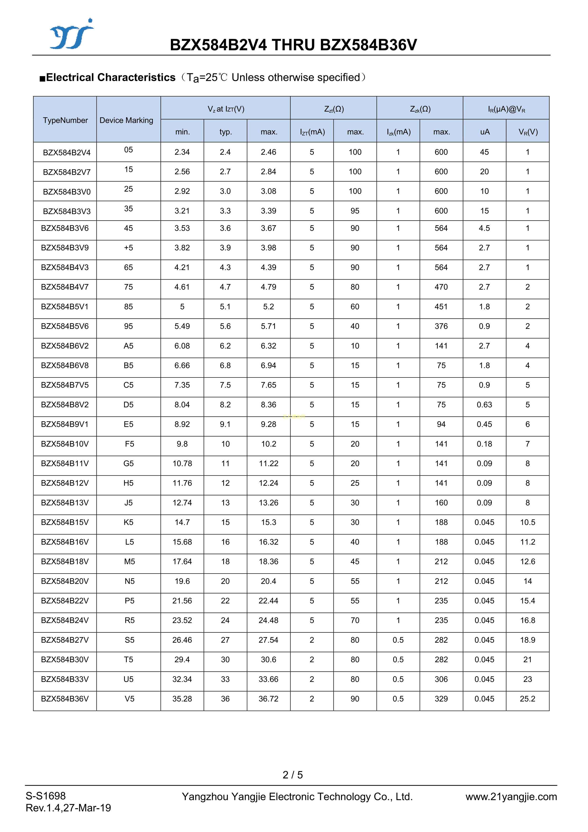 BZX584B11V数据手册SOD-523封装YANGJIE(扬杰)PDF规格书,中英文下载