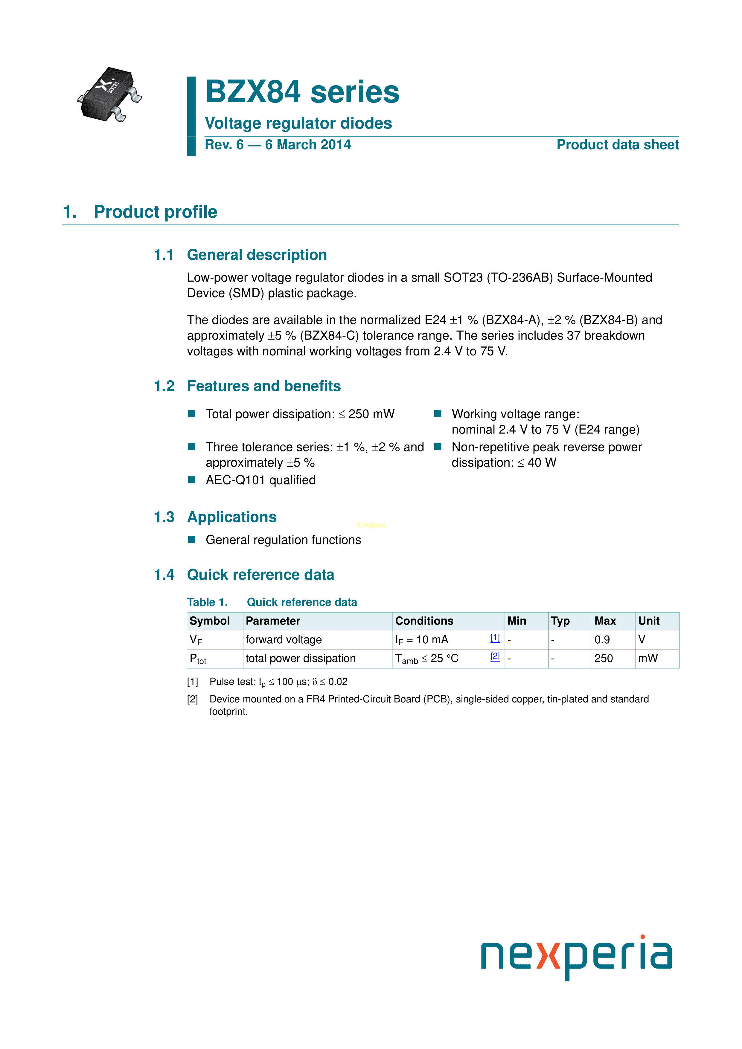BZX84-C75215数据手册SOT-23封装Nexperia(安世)PDF规格书,中英文下载