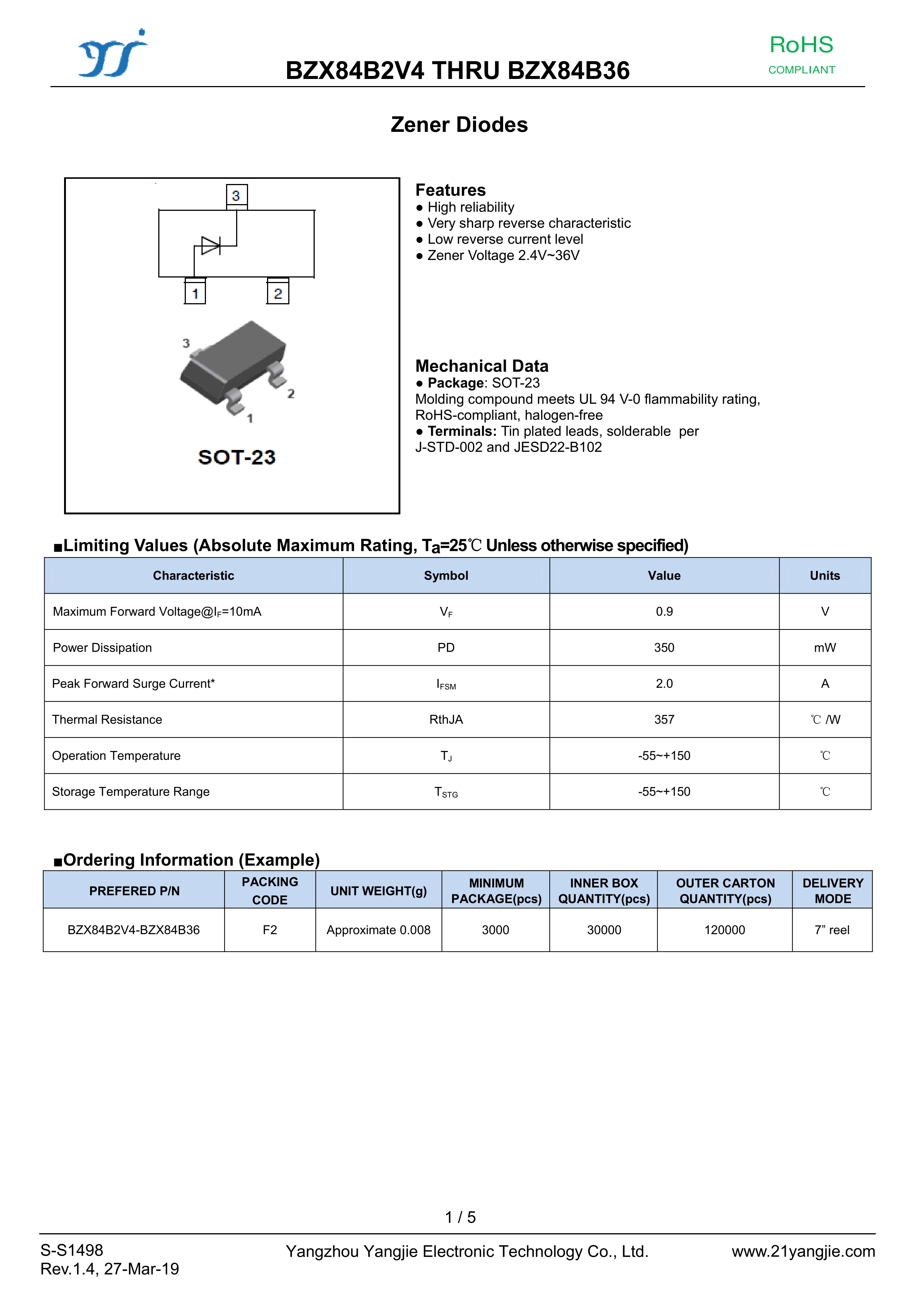 BZX84B6V2数据手册SOT-23封装YANGJIE(扬杰)PDF规格书,中英文下载
