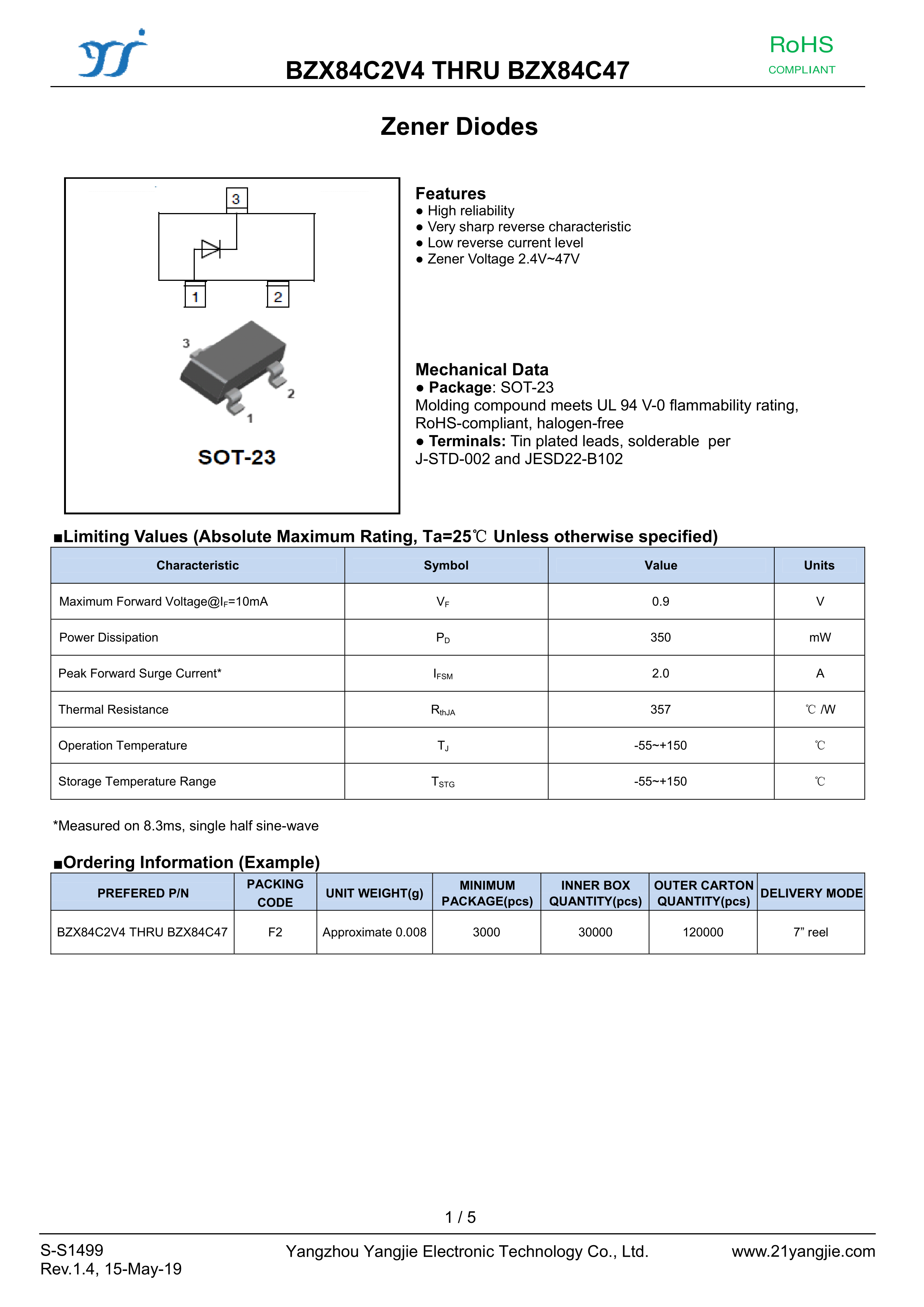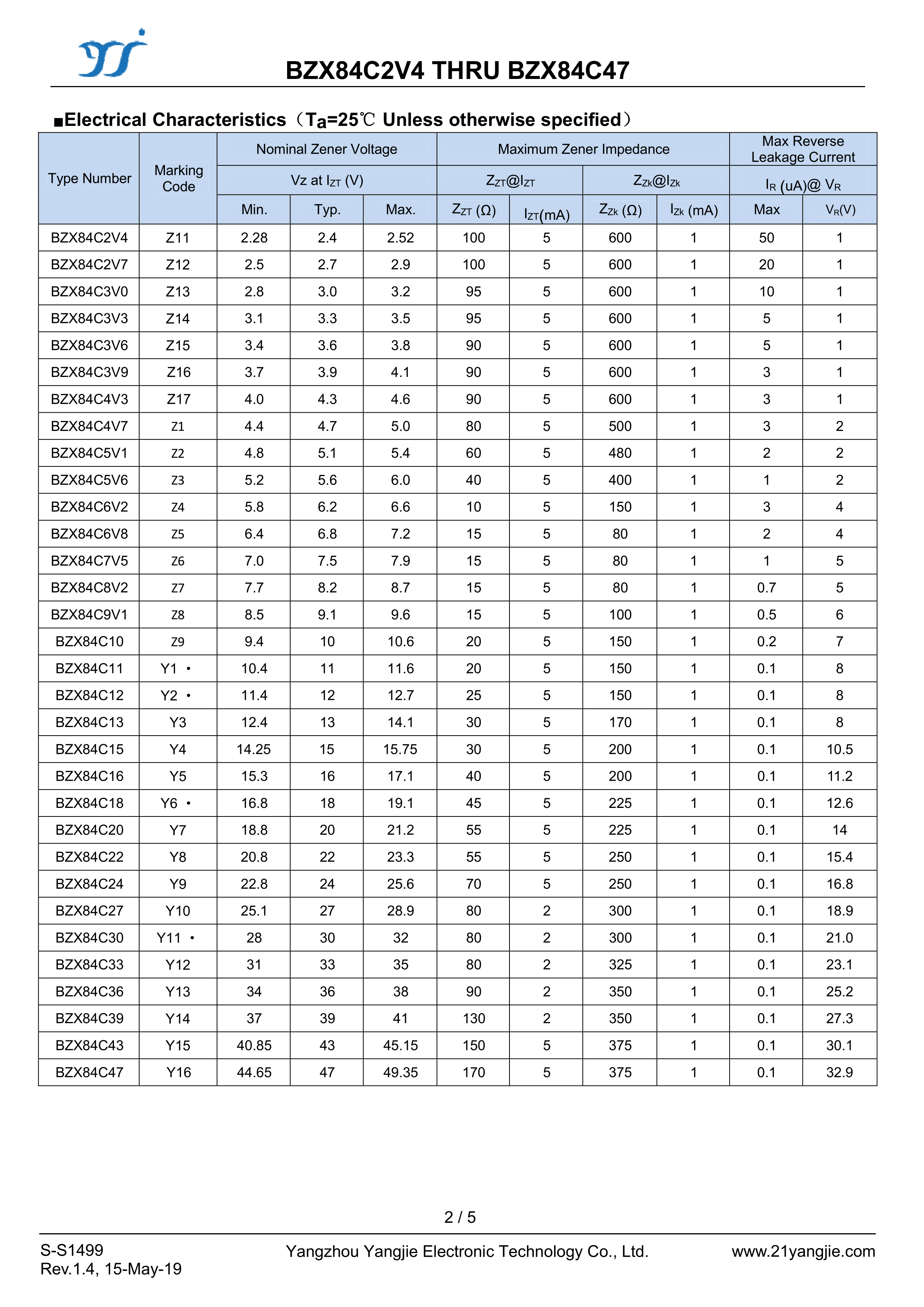 BZX84C9V1数据手册SOT-23封装YANGJIE(扬杰)PDF规格书,中英文下载