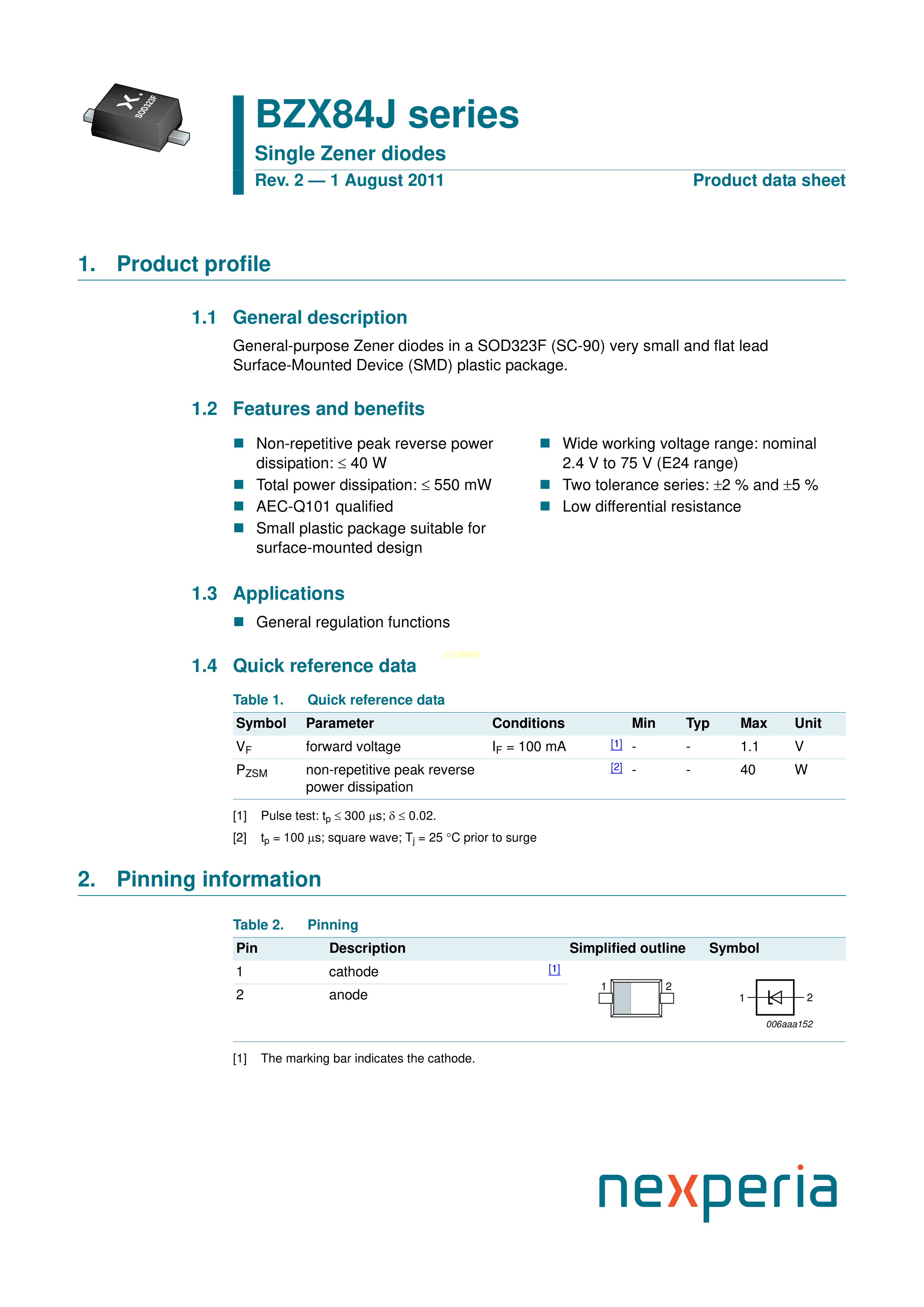 BZX84J-B3V3115数据手册SOD-323F封装Nexperia(安世)PDF规格书,中英文