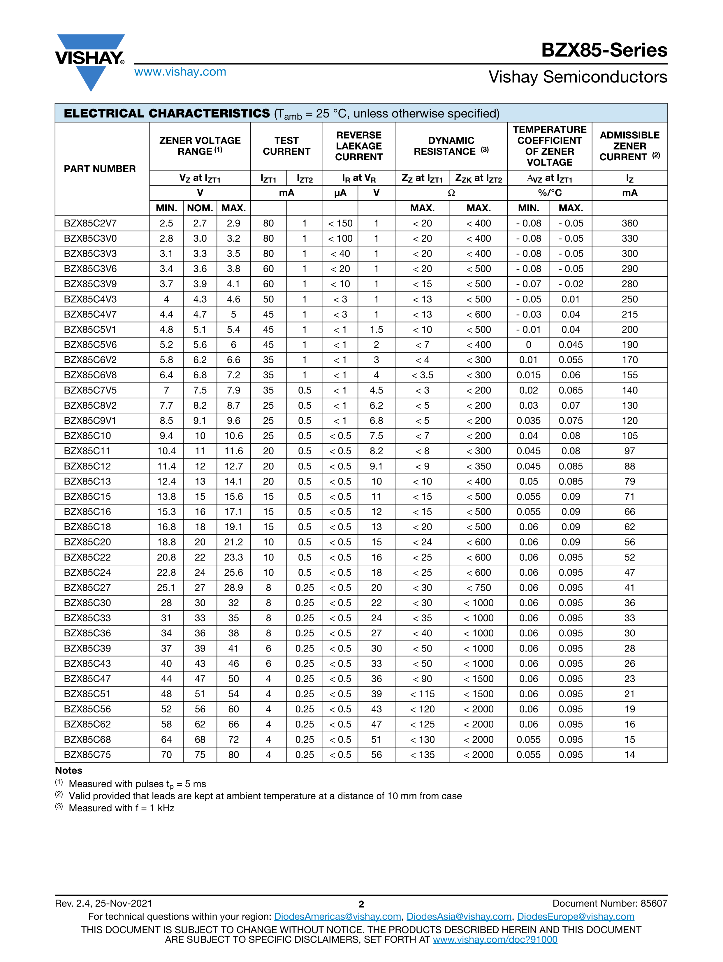 BZX85C7V5-TAP数据手册DO-204AL封装VISHAY(威世)PDF规格书,中英文下载