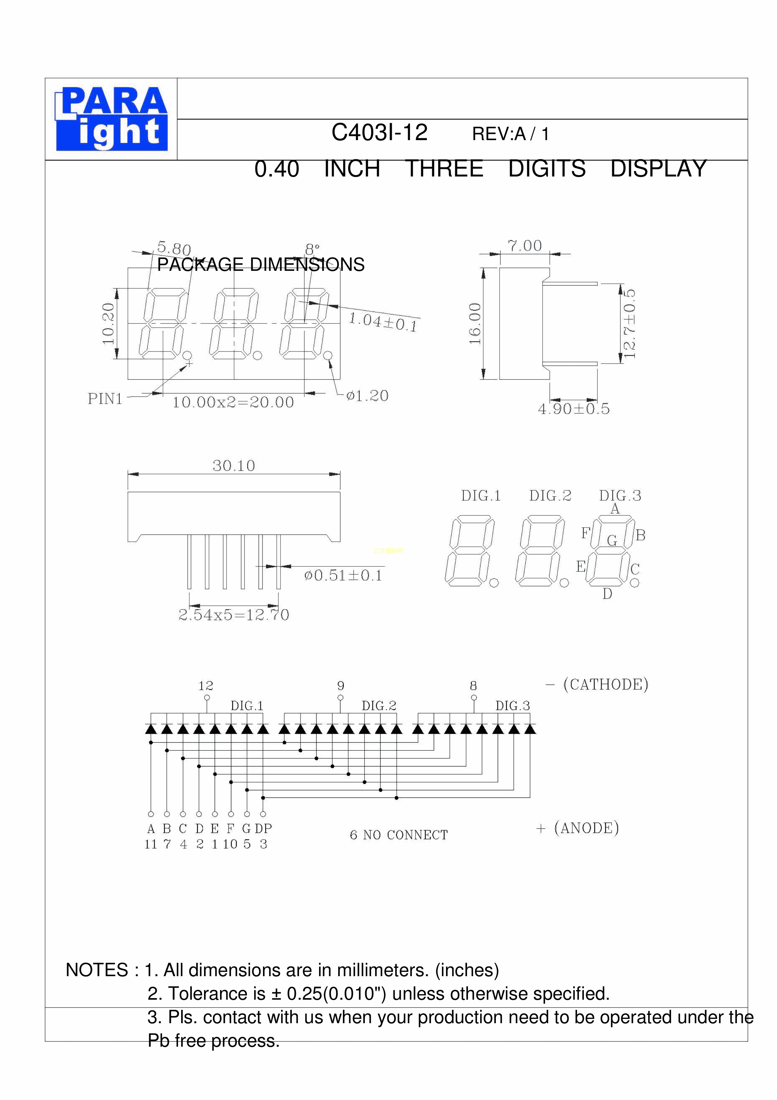 C-403I-12数据手册插件封装PARALIGHT(台湾光鼎)PDF规格书,中英文下载